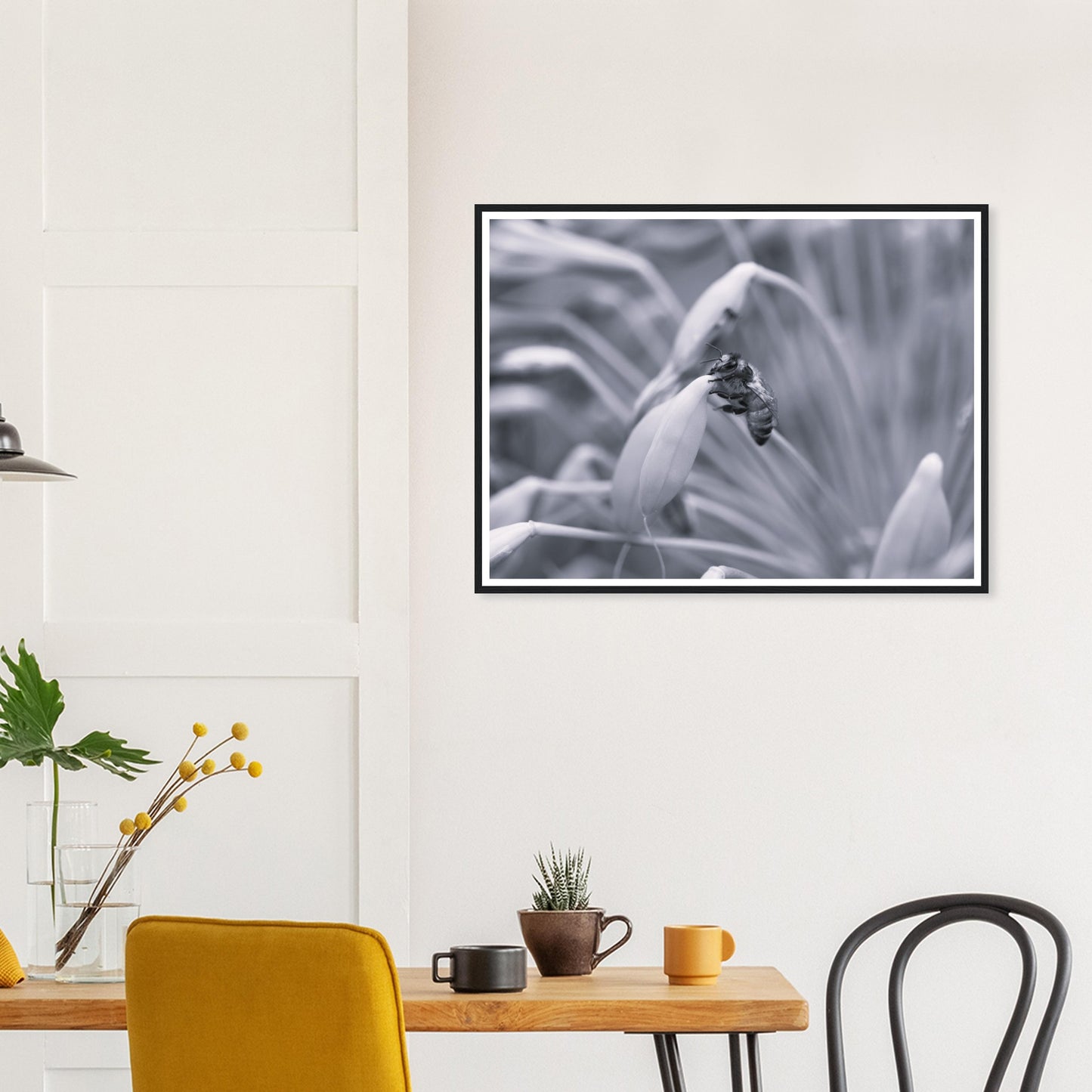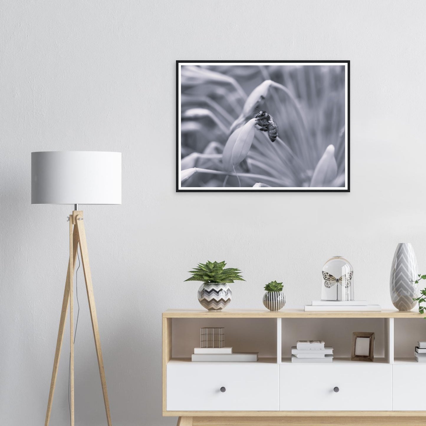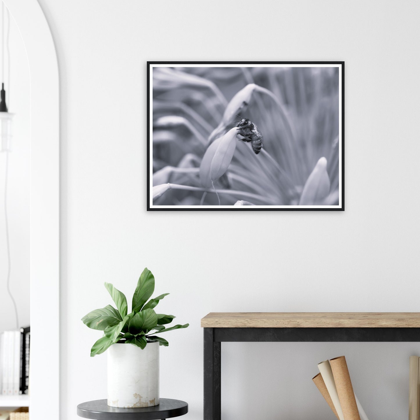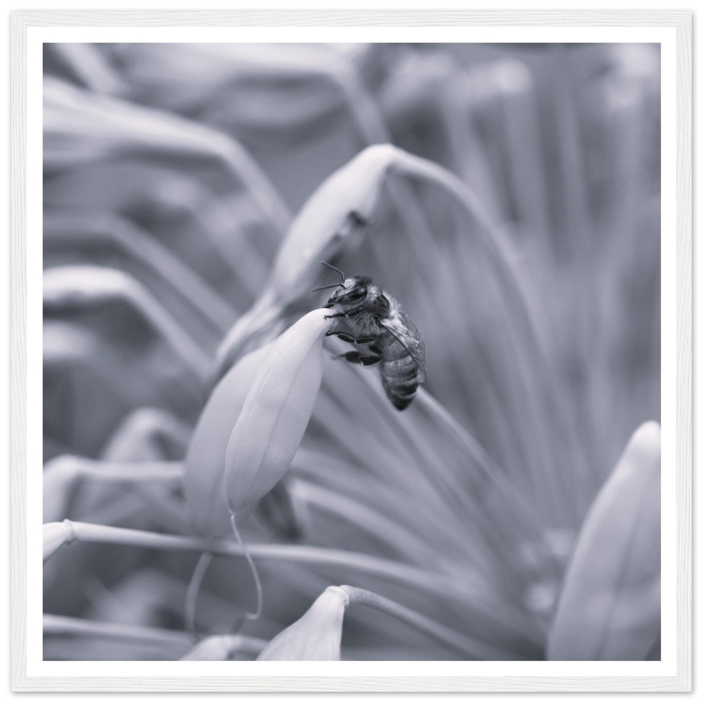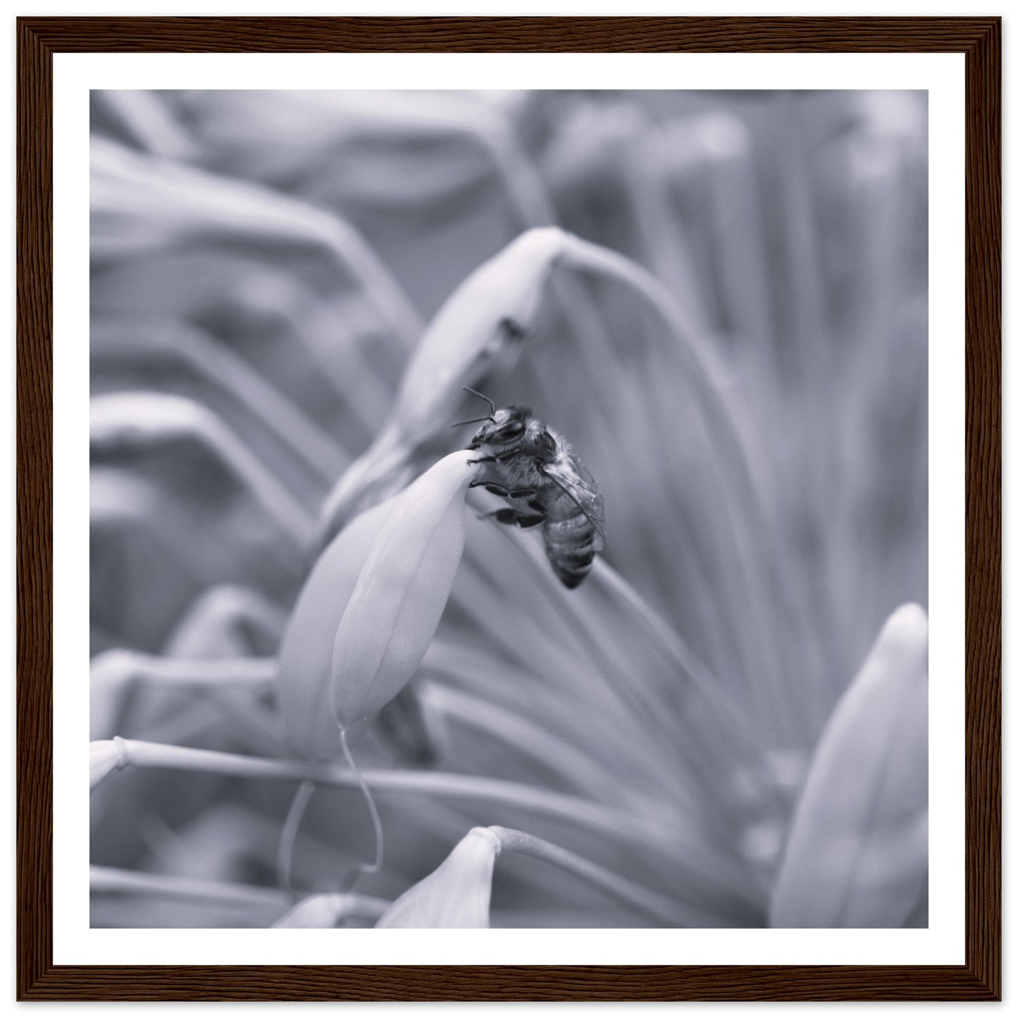 Bee in summer garden - Black & White - Premium matte paper poster with wooden frame