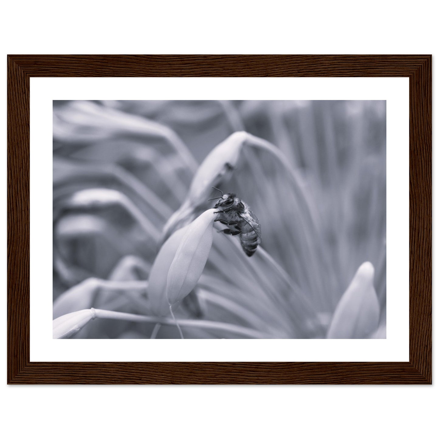 Bee in summer garden (B&W) - Premium Matte Paper Wooden Framed Poster