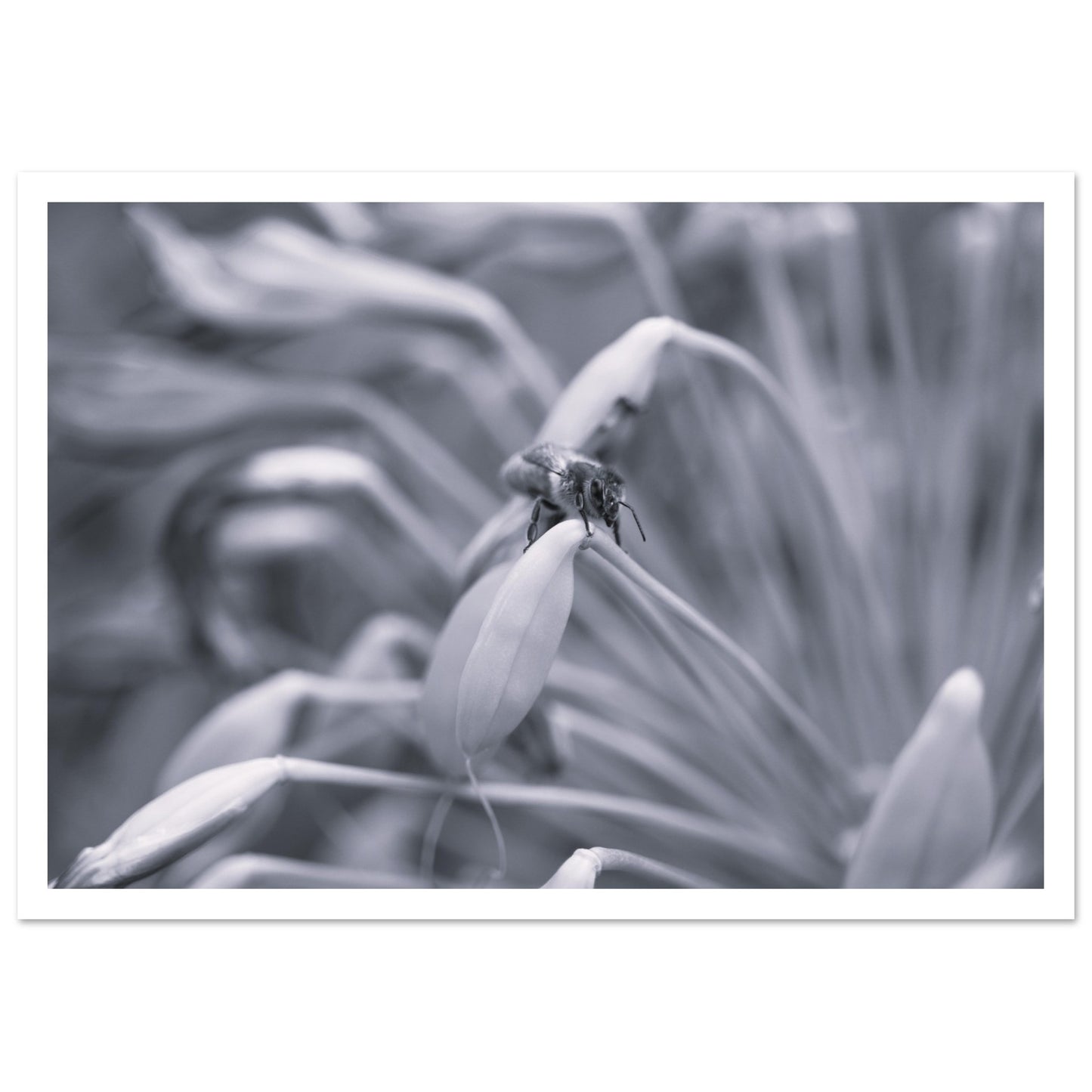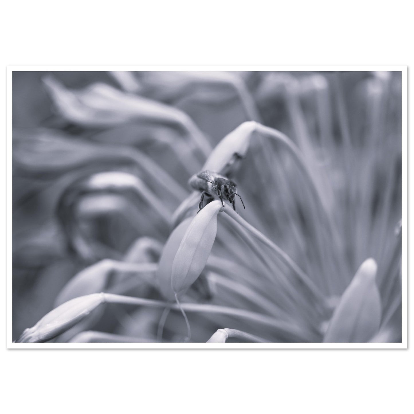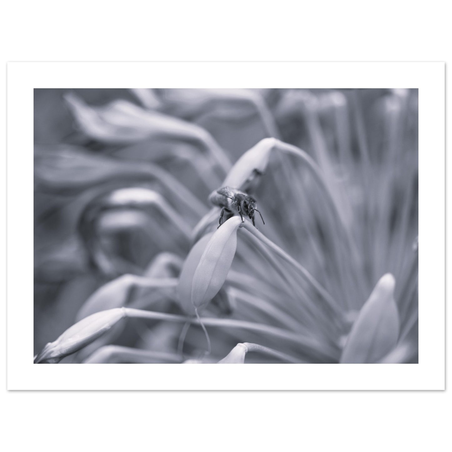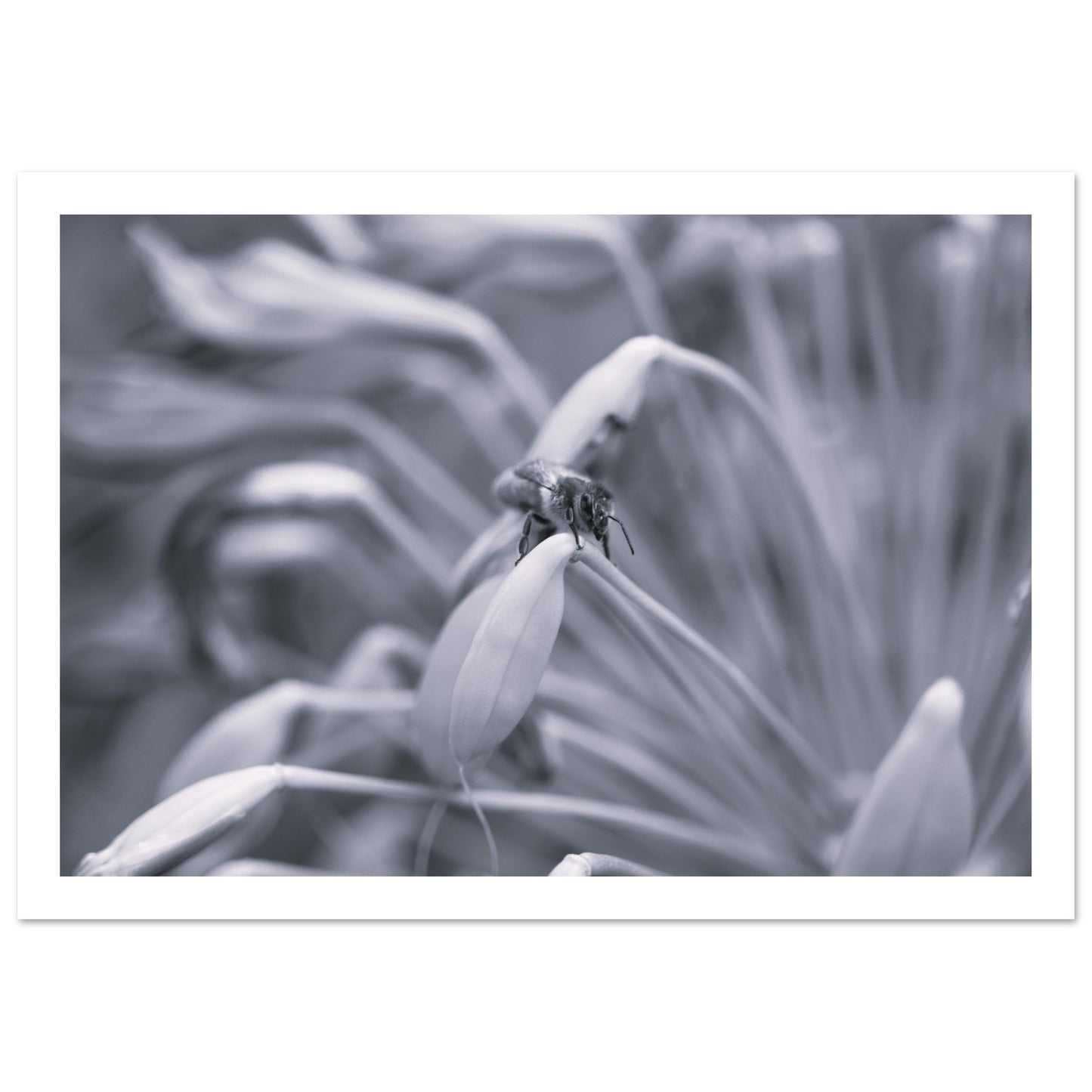 Bee on summer plants (B&W) - Premium Matte Paper Poster