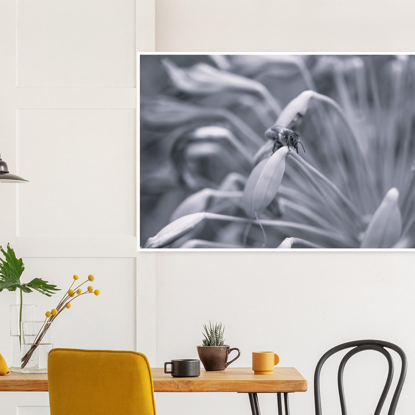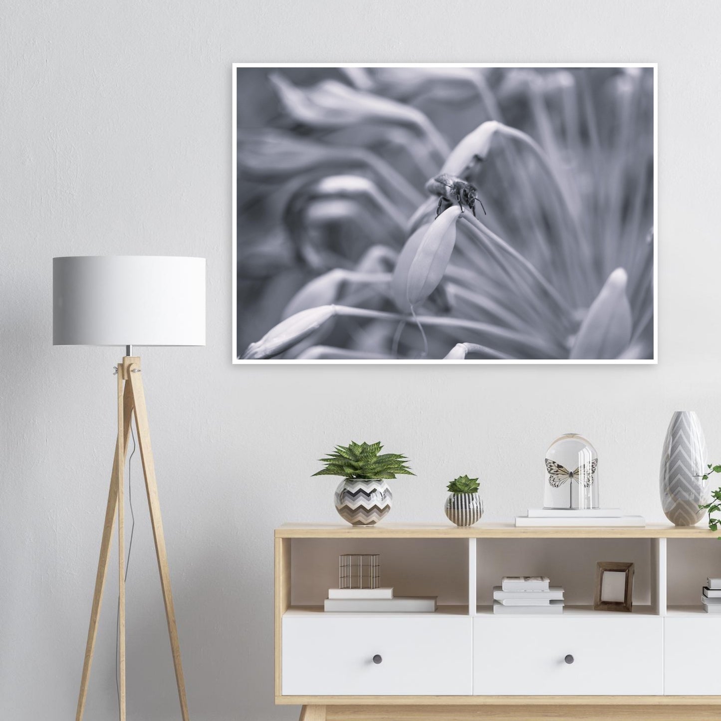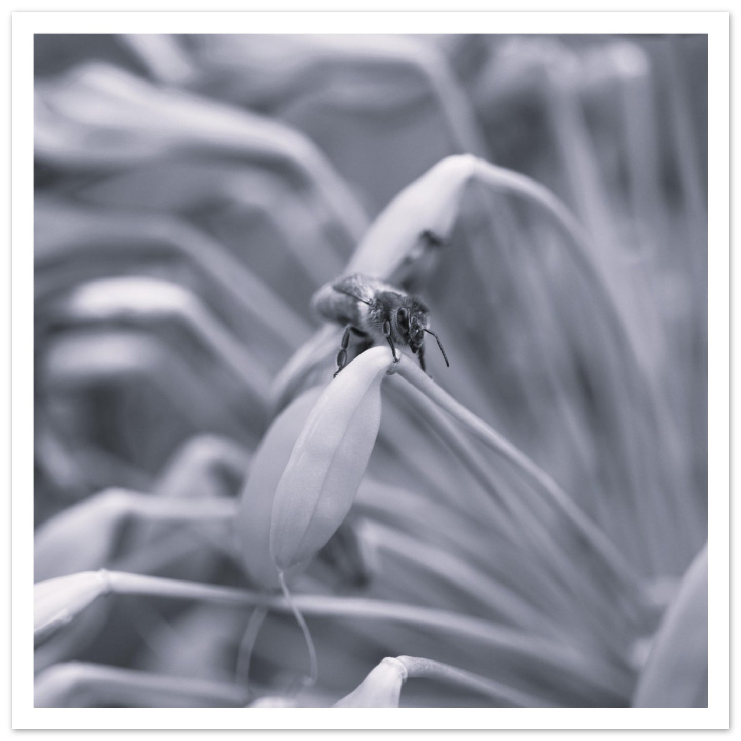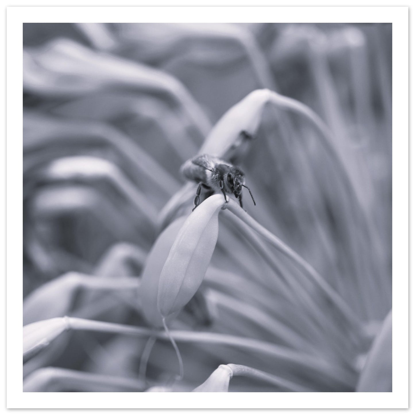 Bee on summer plants (B&W) - Premium Matte Paper Poster