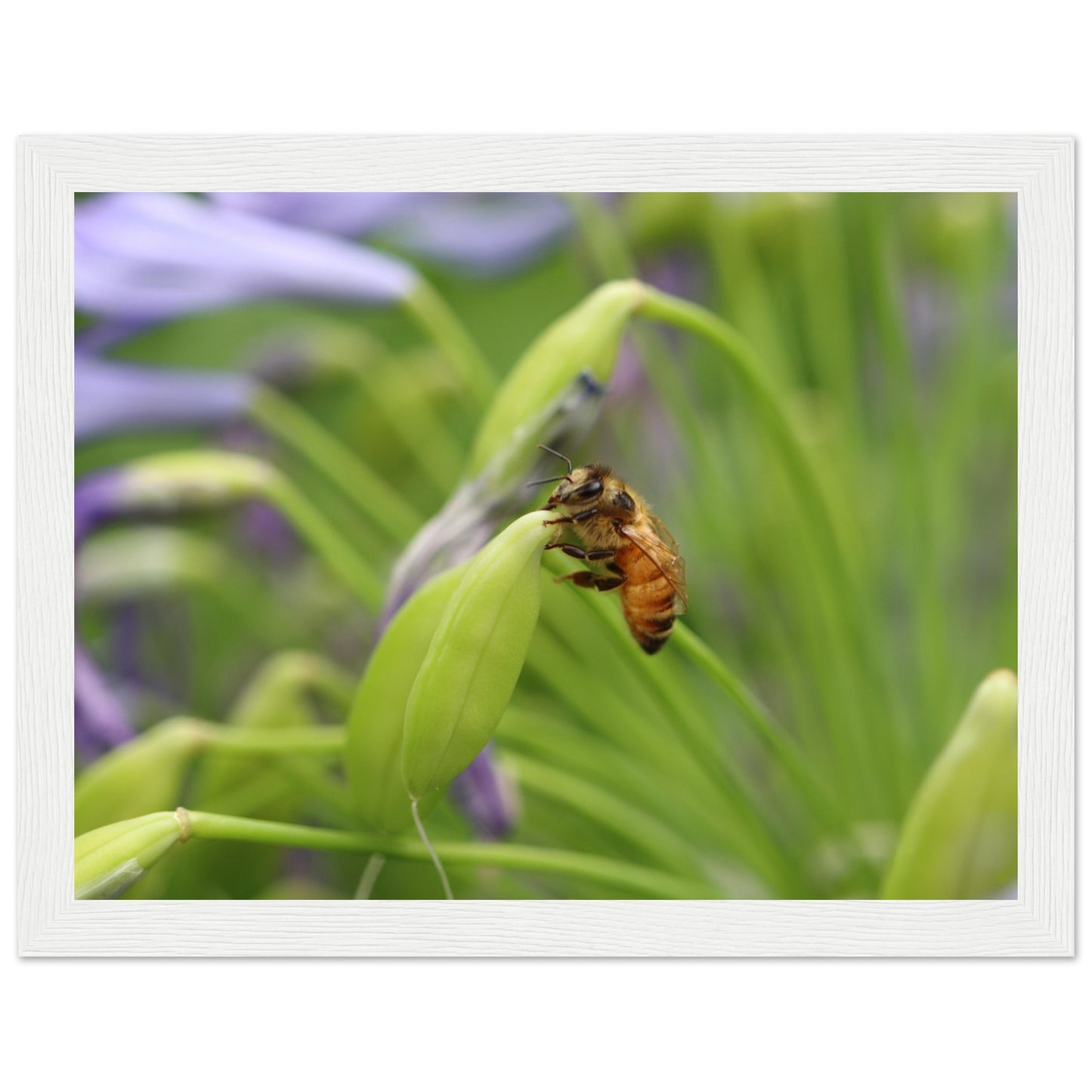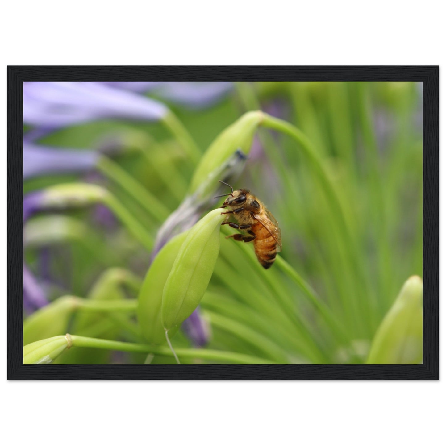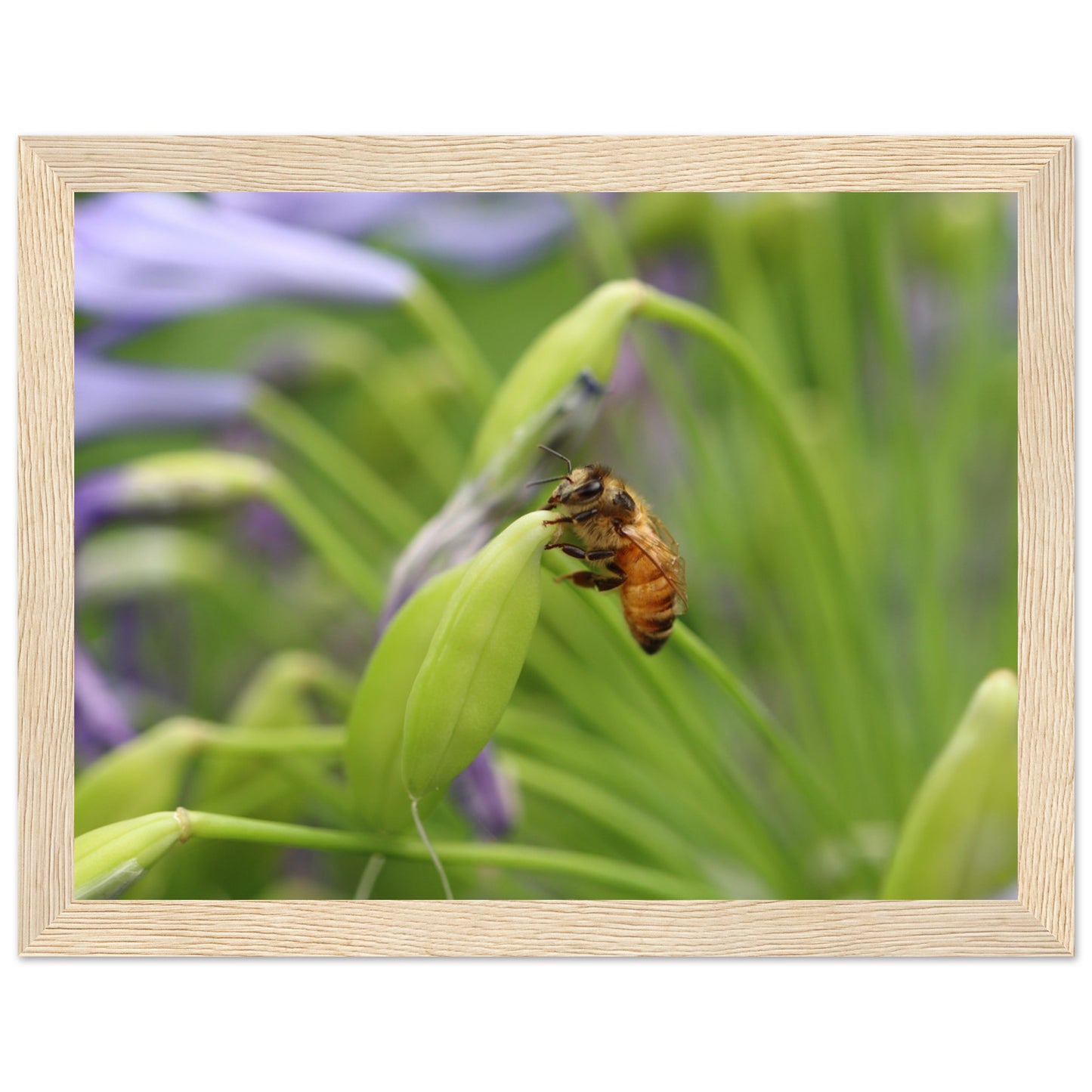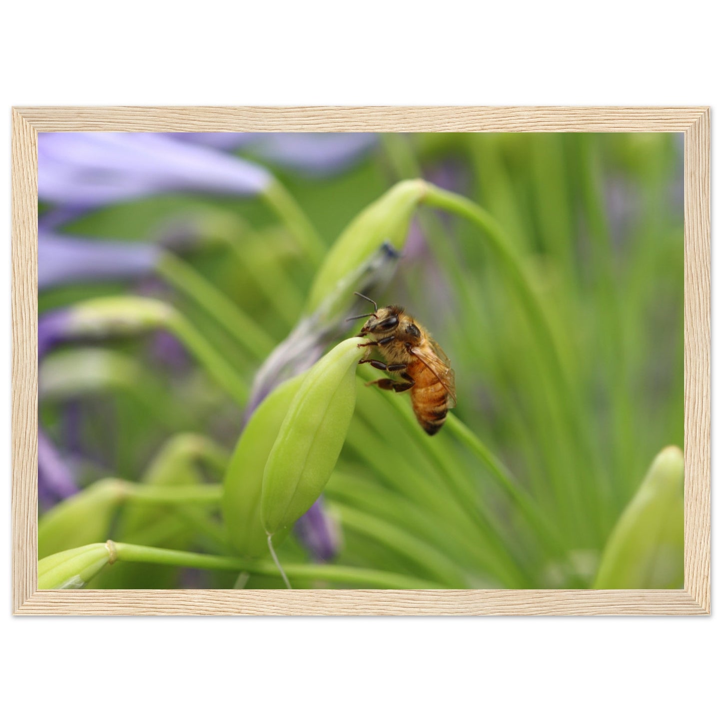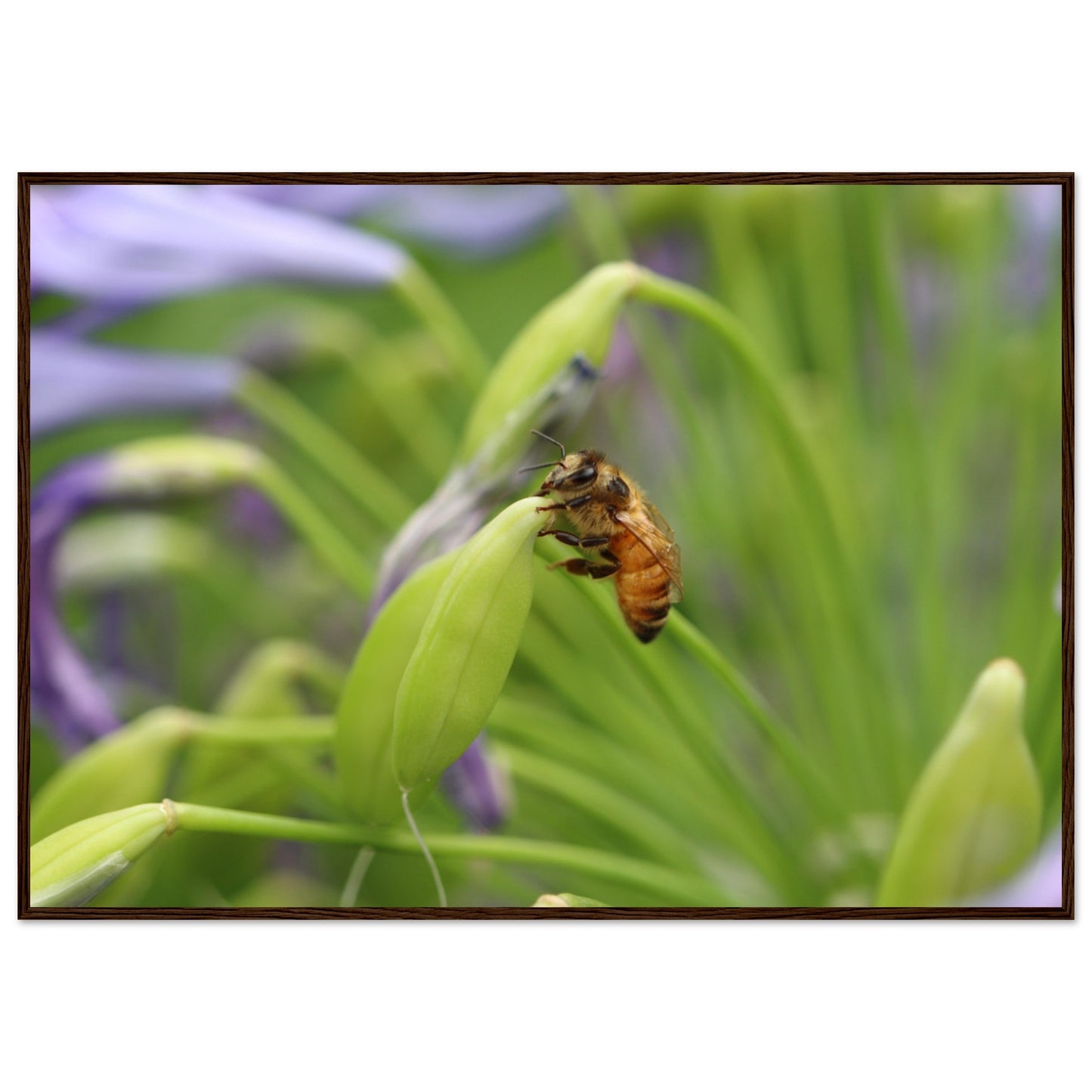 Bee in summer garden - Premium matte paper poster with wooden frame