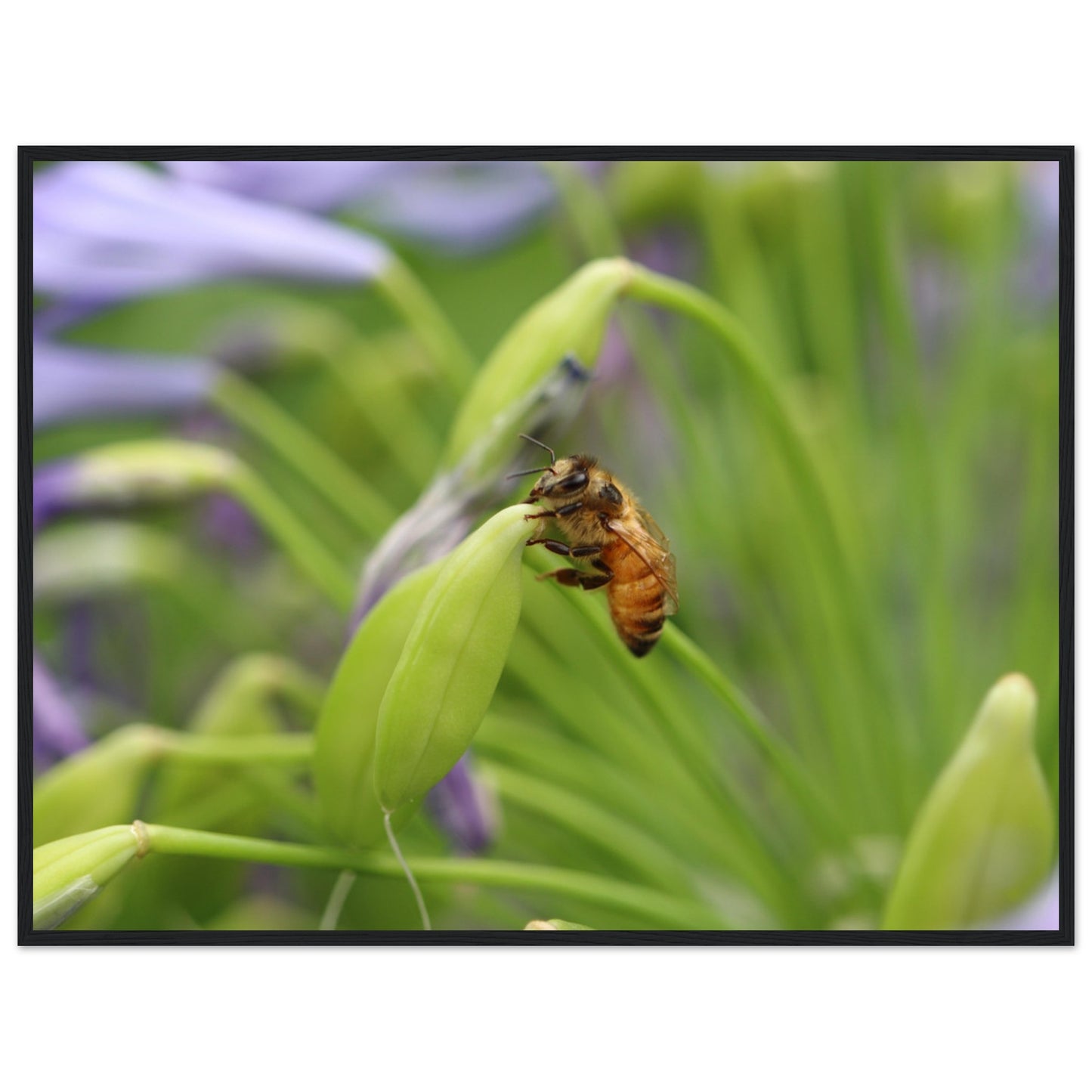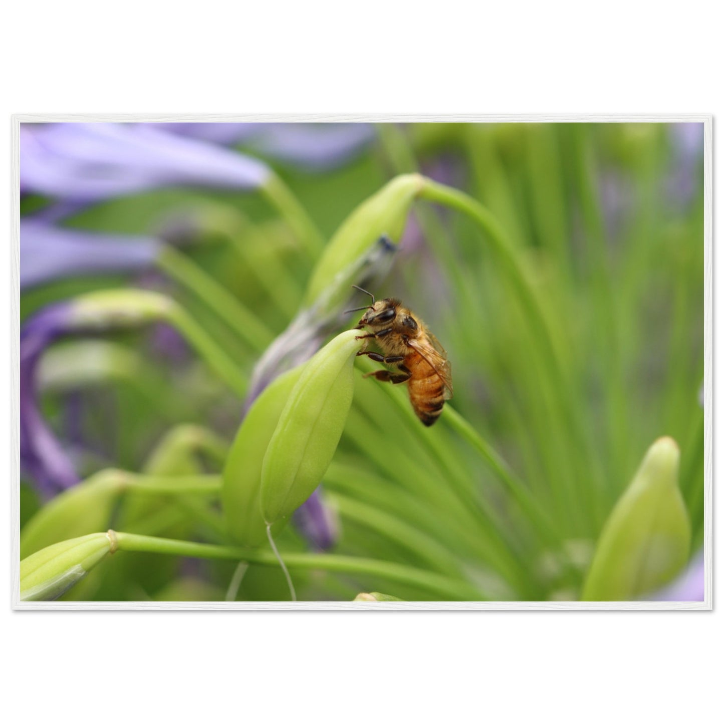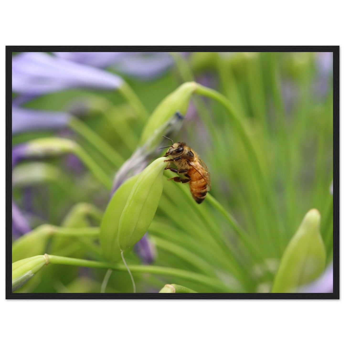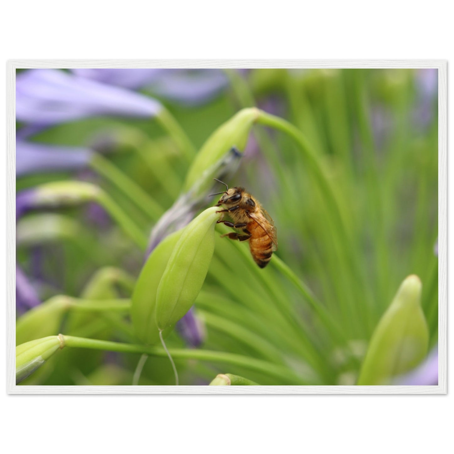 Bee in summer garden - Premium matte paper poster with wooden frame