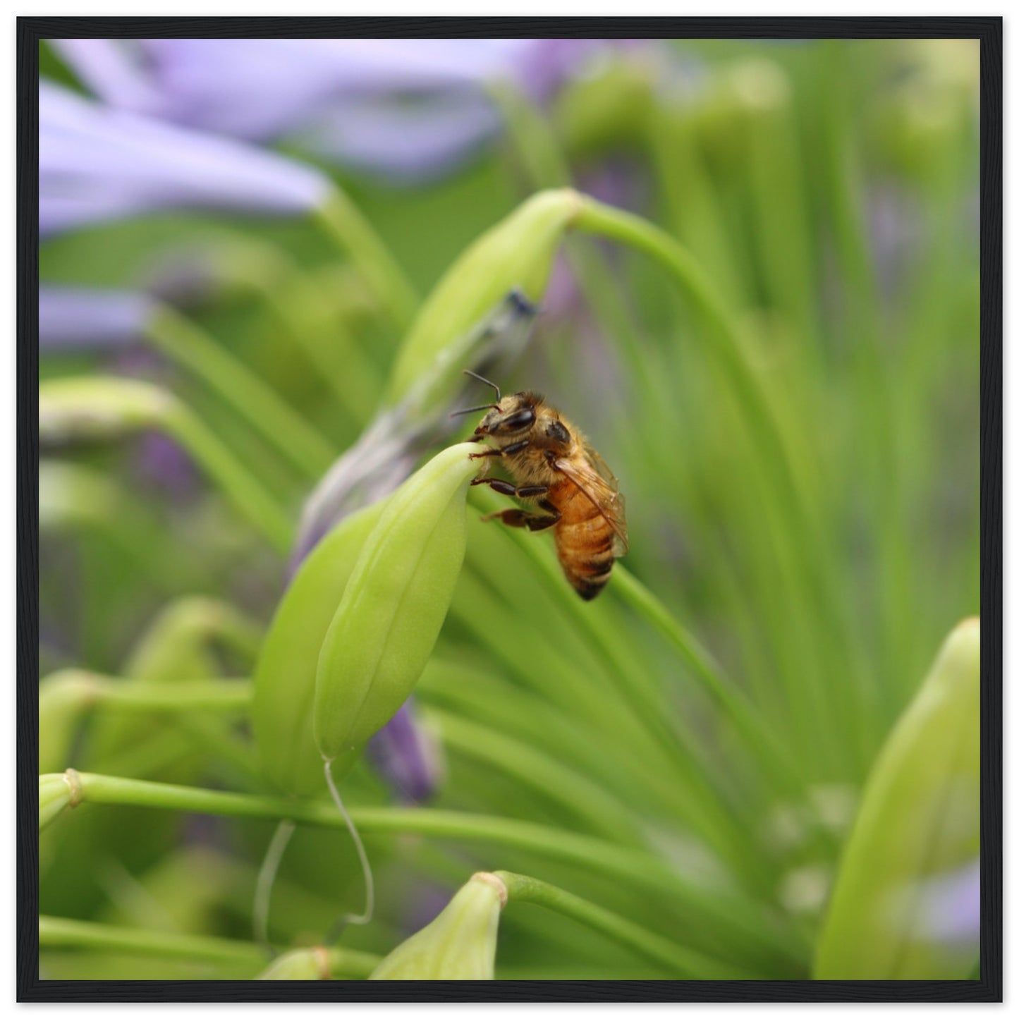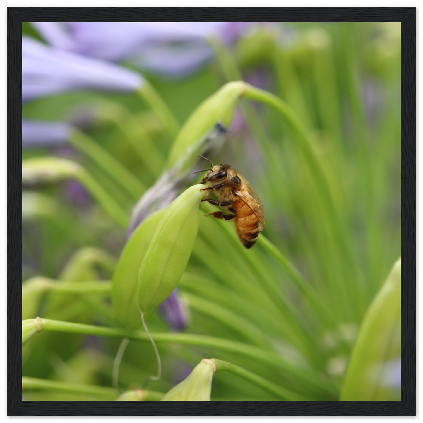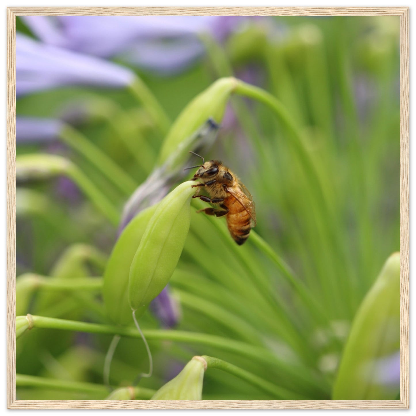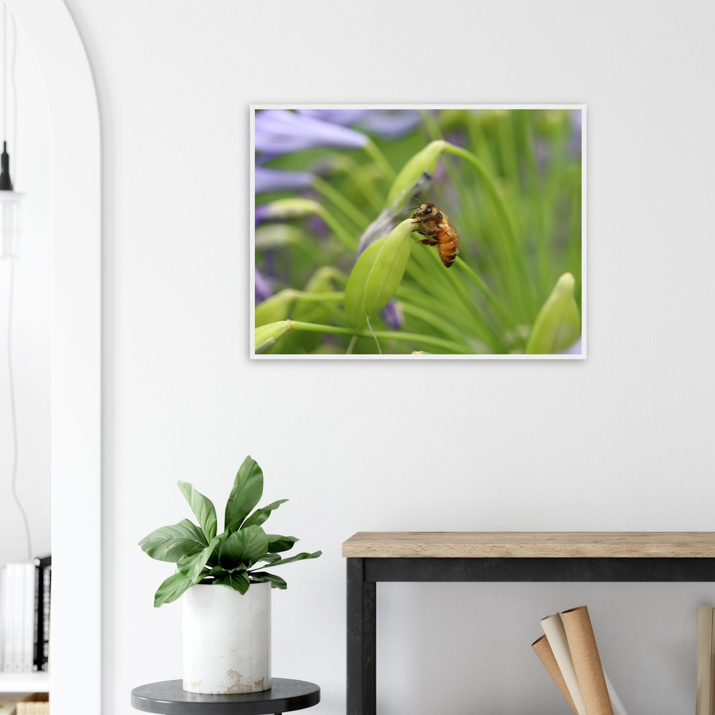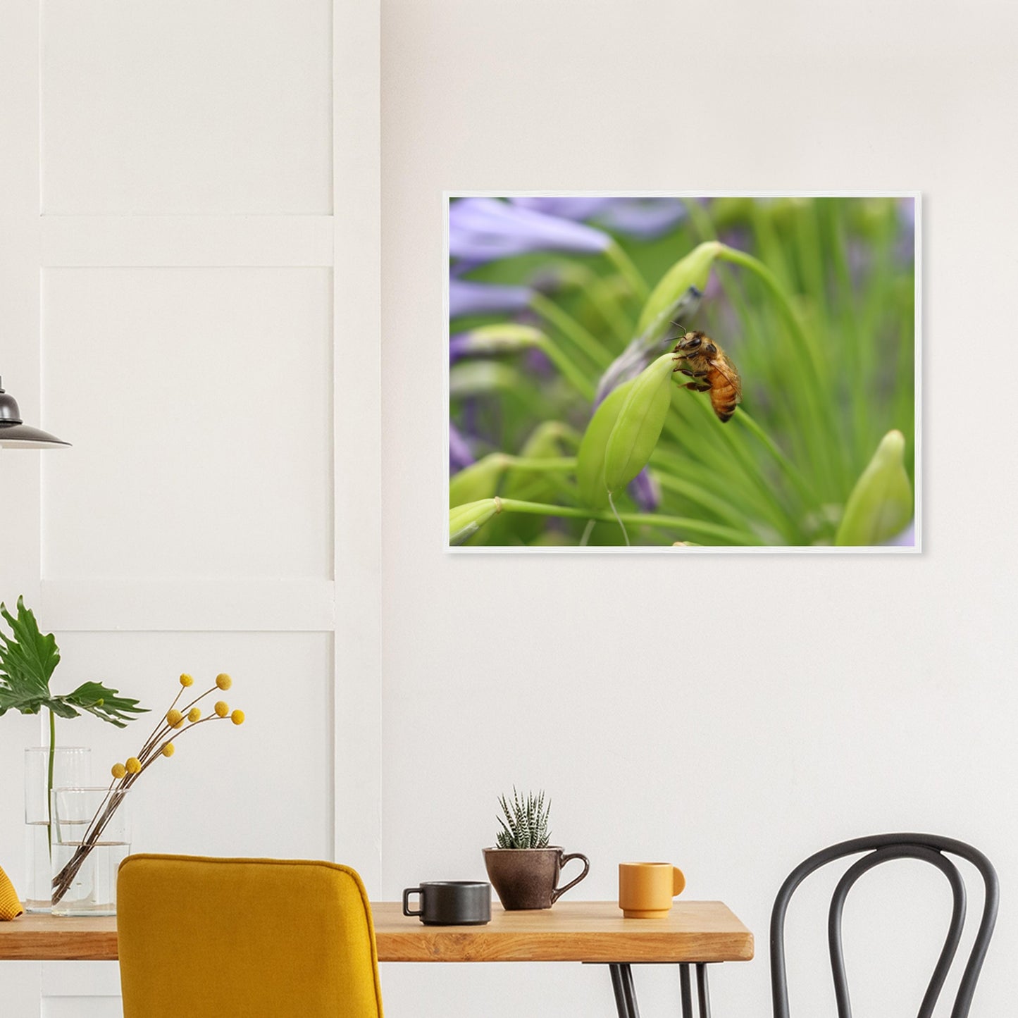 Bee in summer garden - Premium matte paper poster with wooden frame