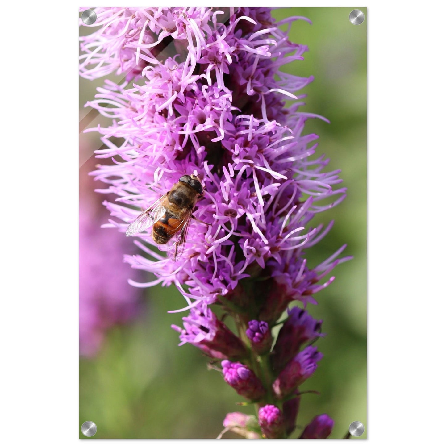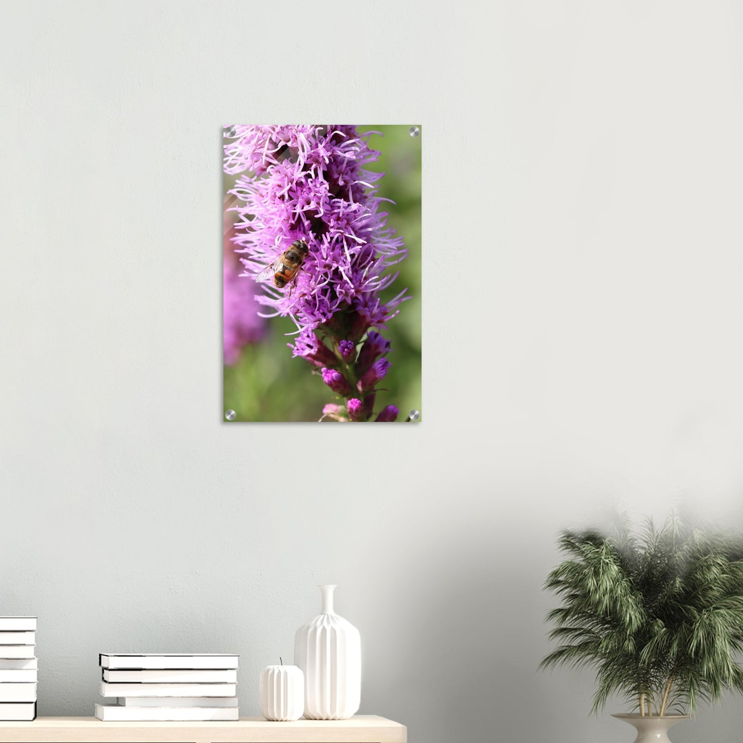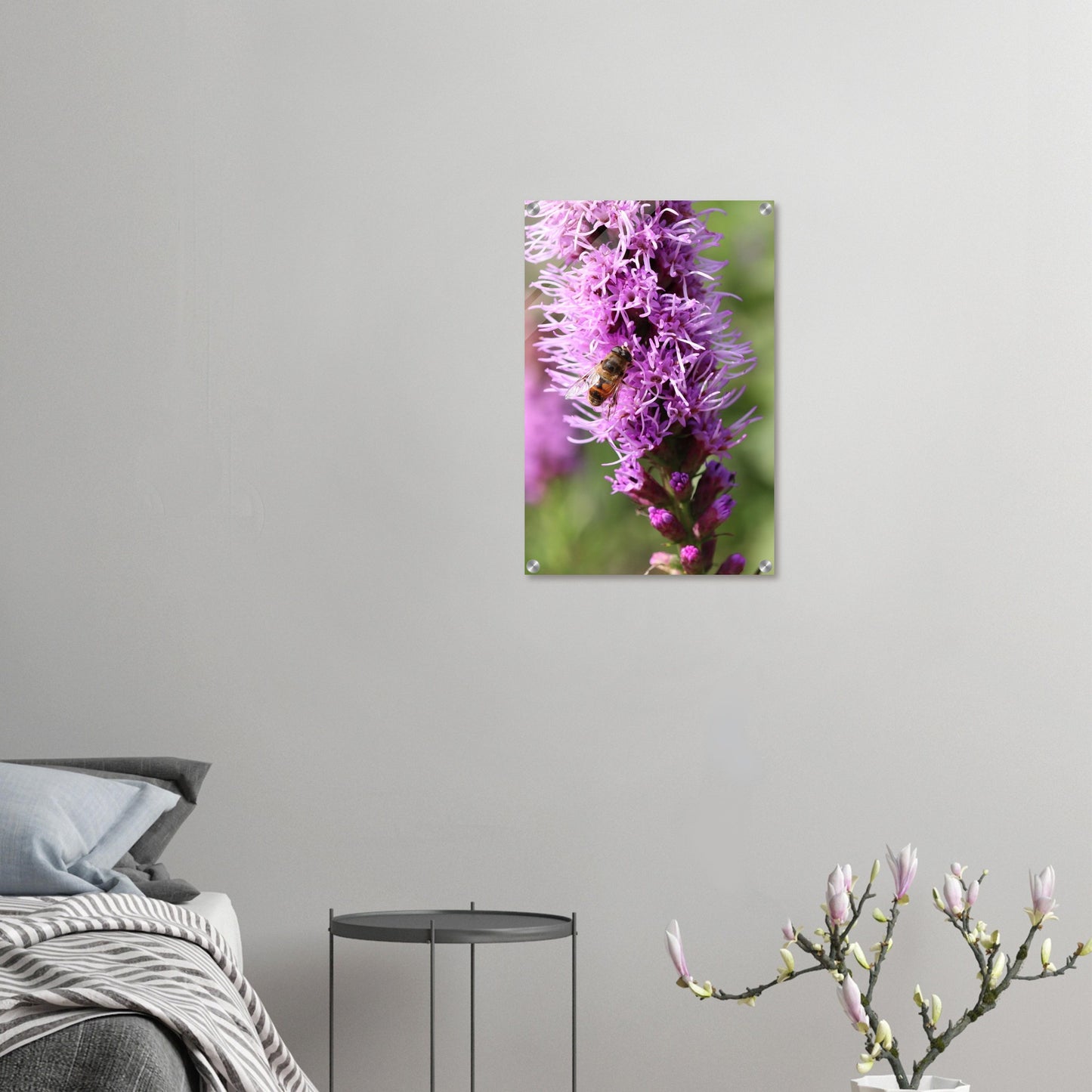 Bee on liatris flower - Acrylic print (lightweight, shatterproof, and temperature-resistant, making them easy to mount on your walls.)