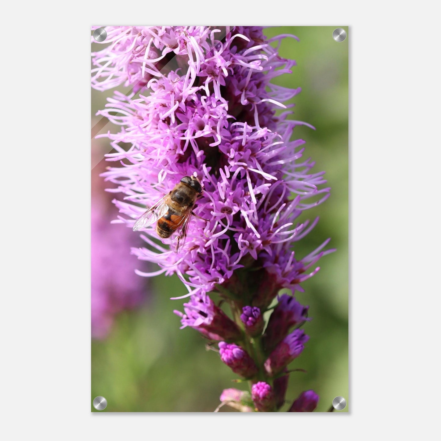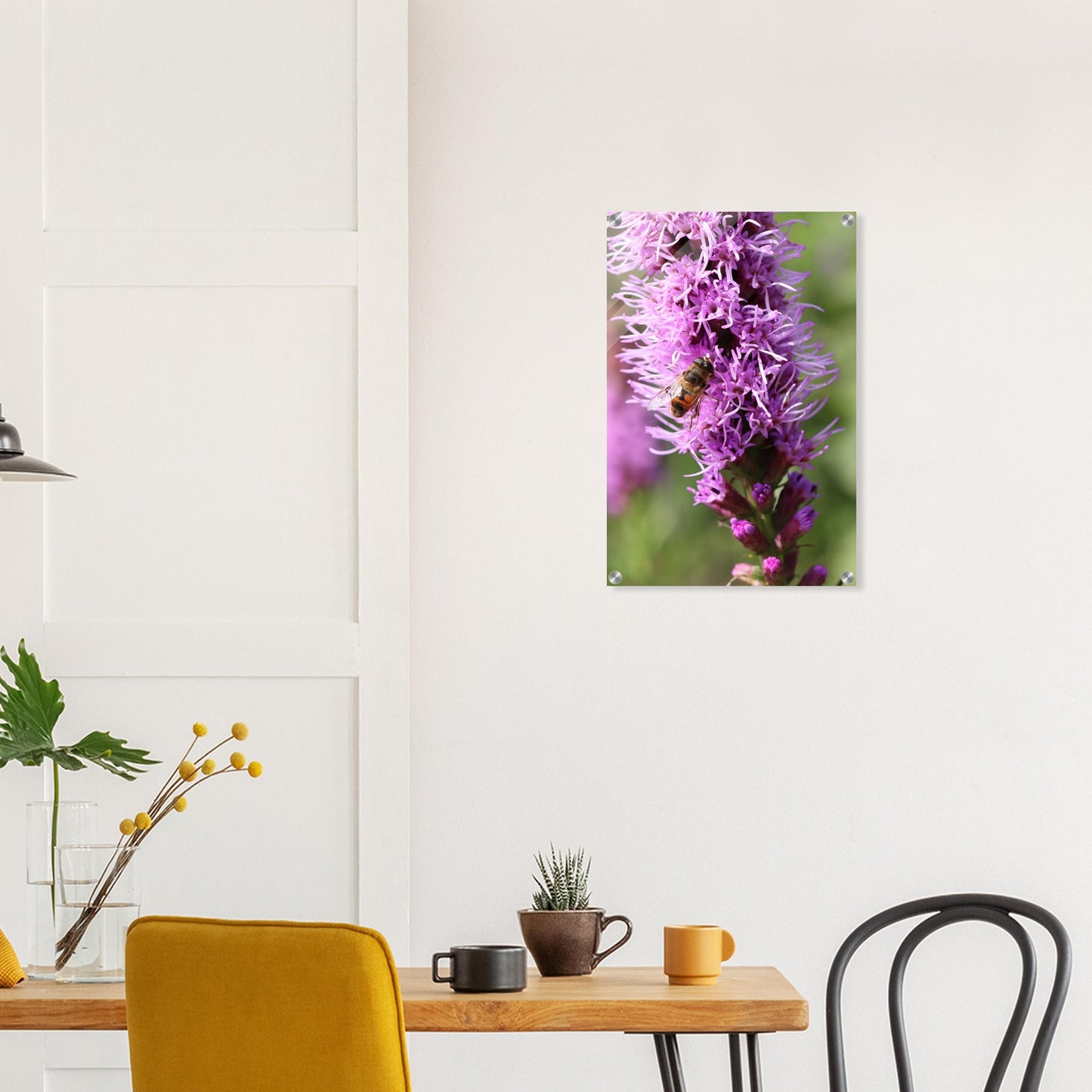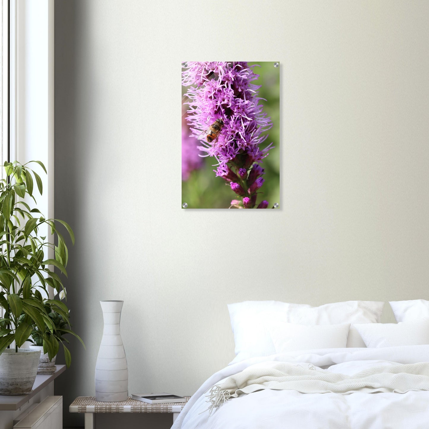 Bee on liatris flower - Acrylic print (lightweight, shatterproof, and temperature-resistant, making them easy to mount on your walls.)