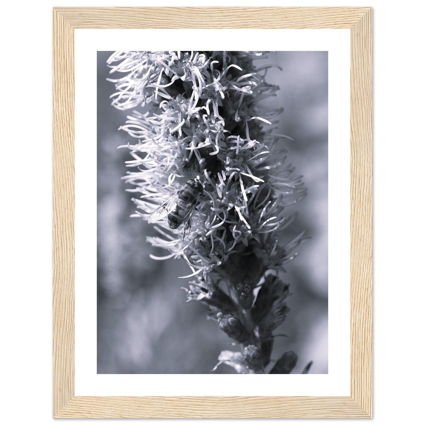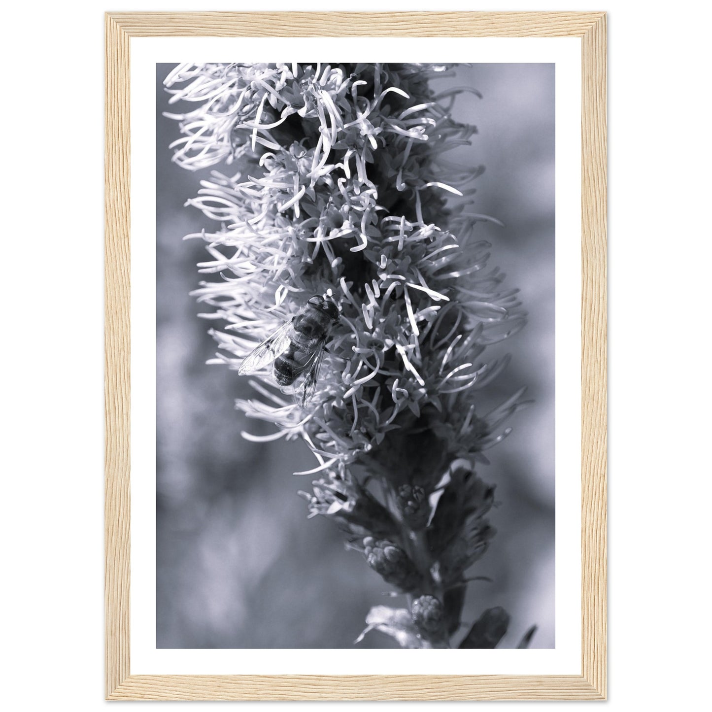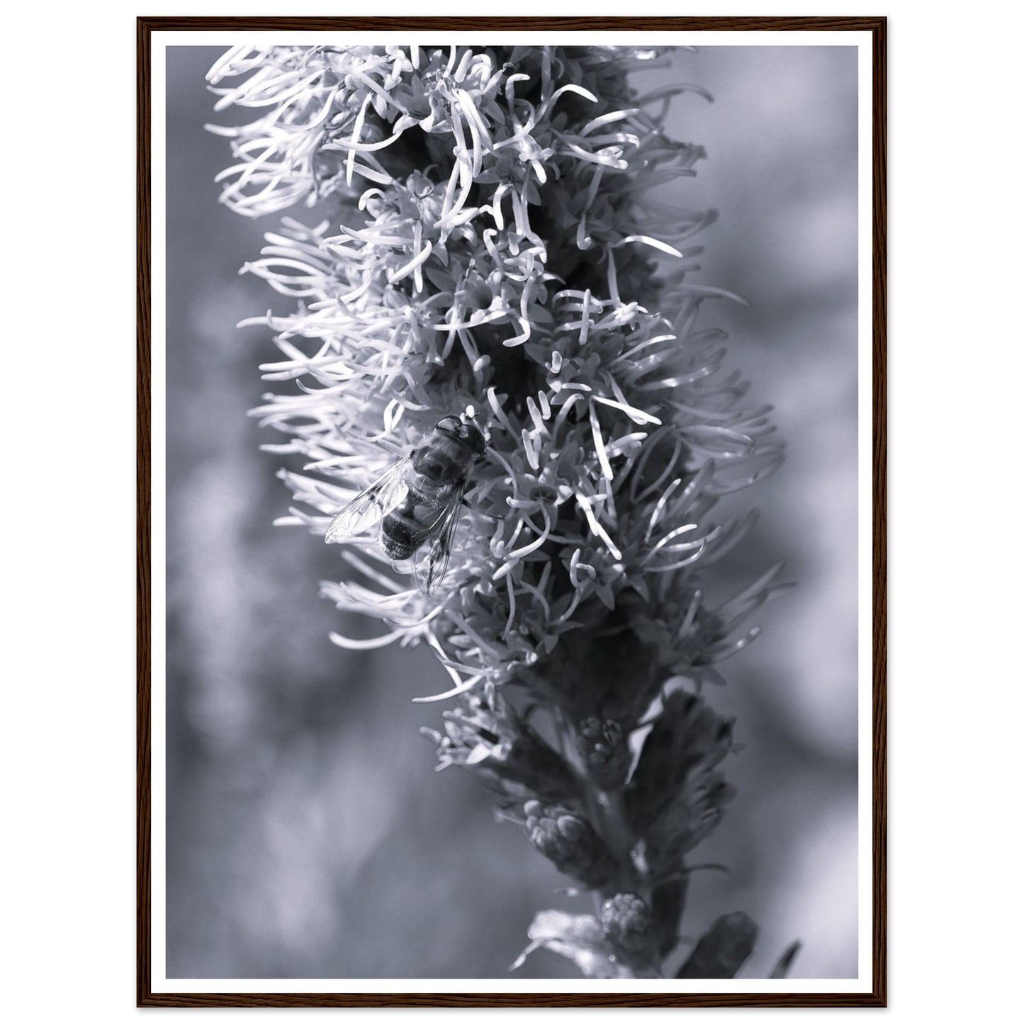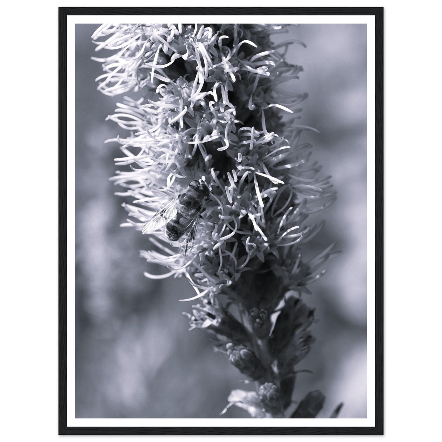 Bee on liatris flower (B&W) - Premium Matte Paper Wooden Framed Poster