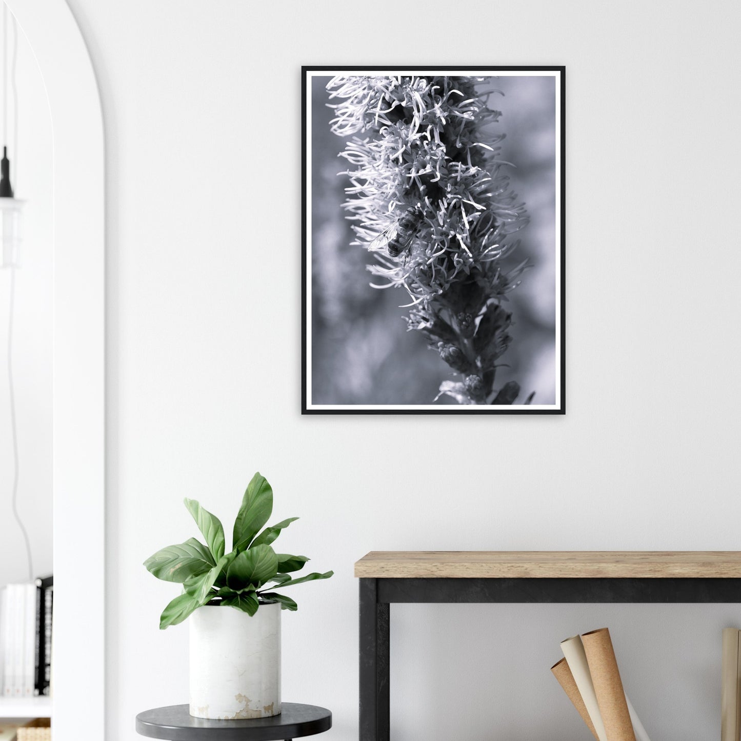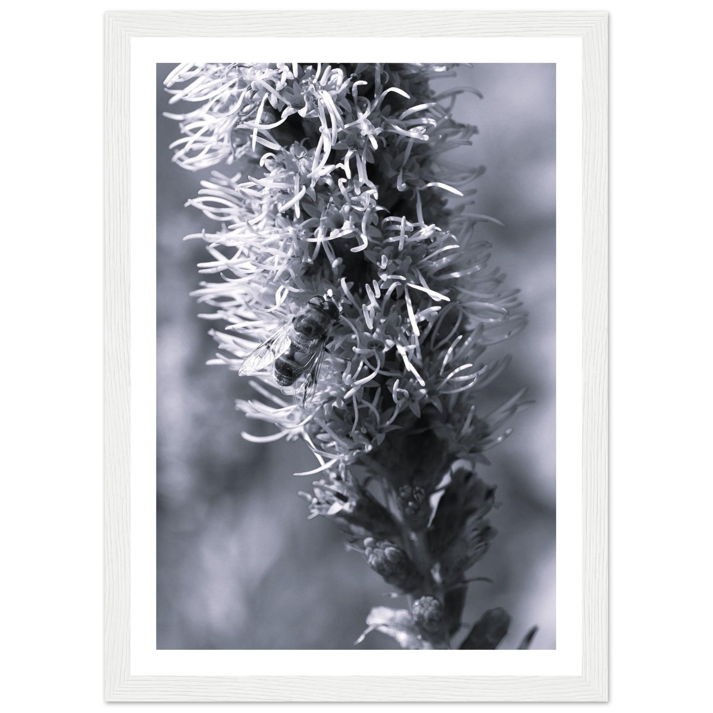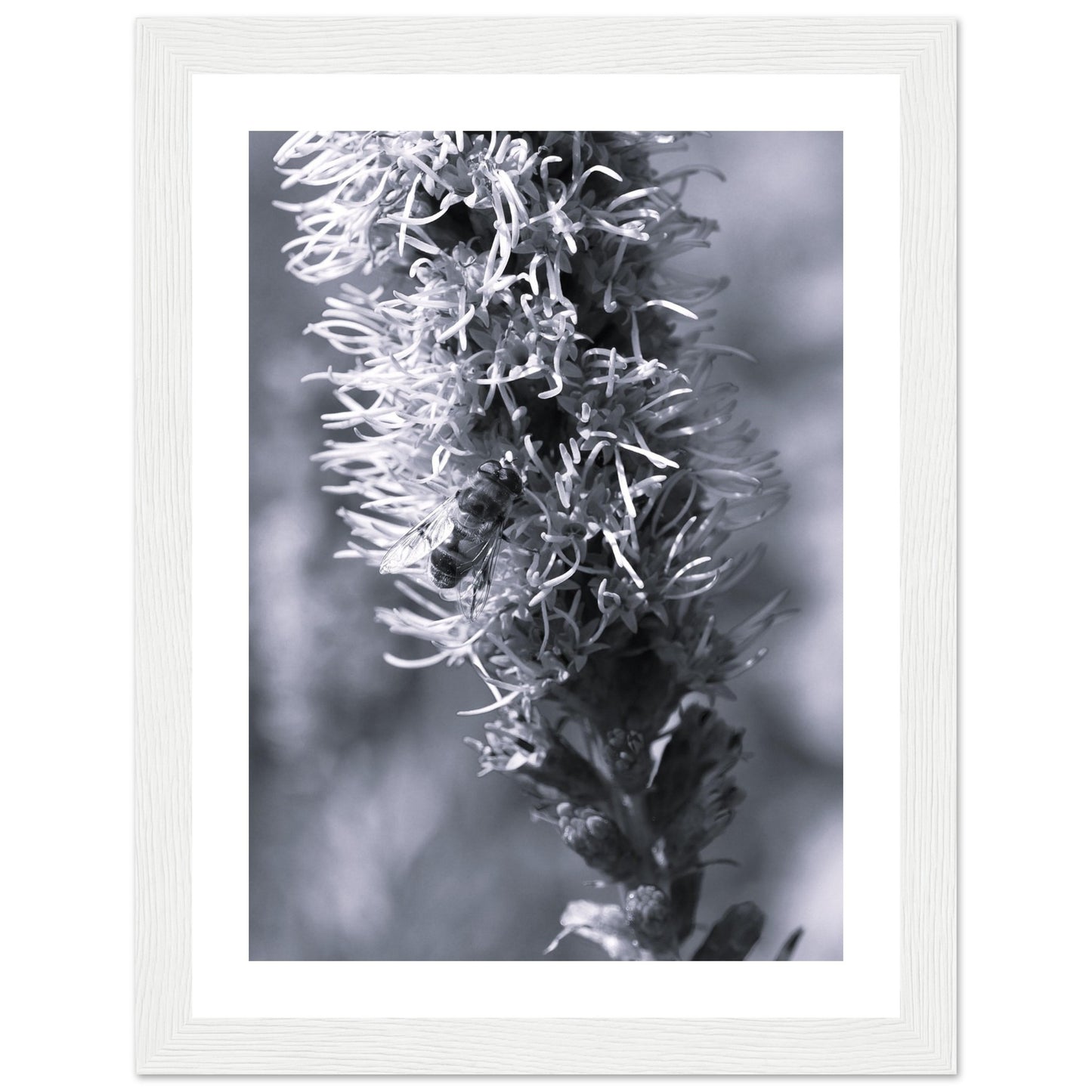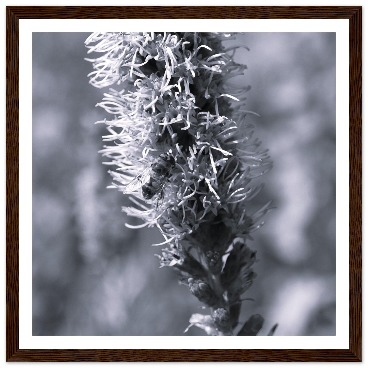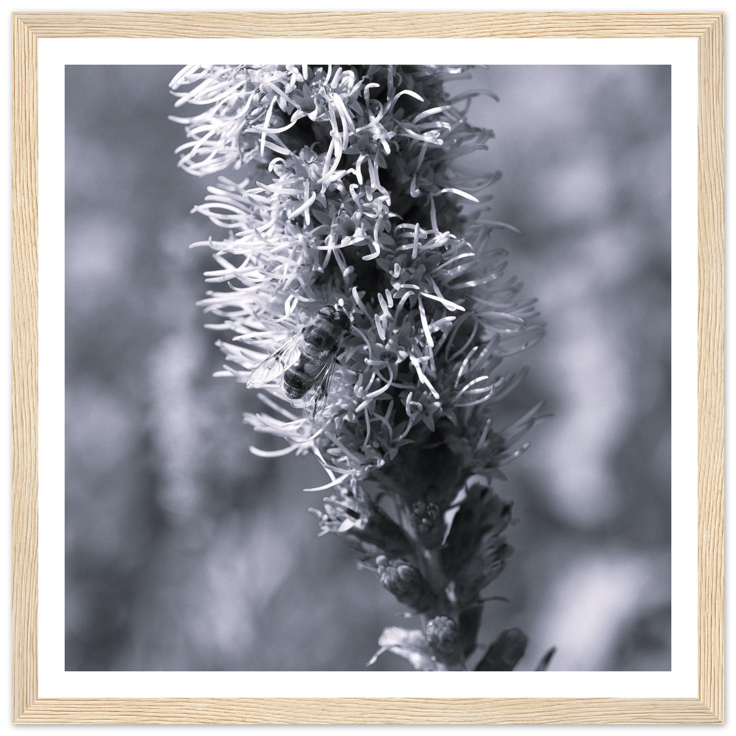 Bee on liatris flower (B&W) - Premium Matte Paper Wooden Framed Poster