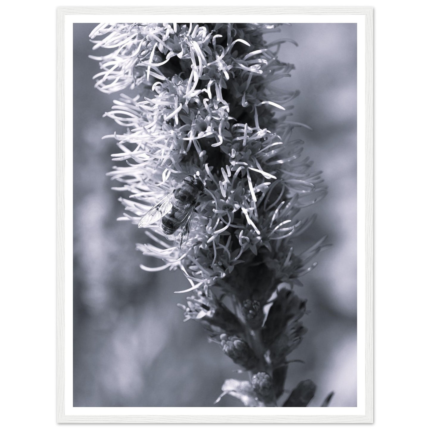 Bee on liatris flower - Black & White - Premium Matte Paper Wooden Framed Poster