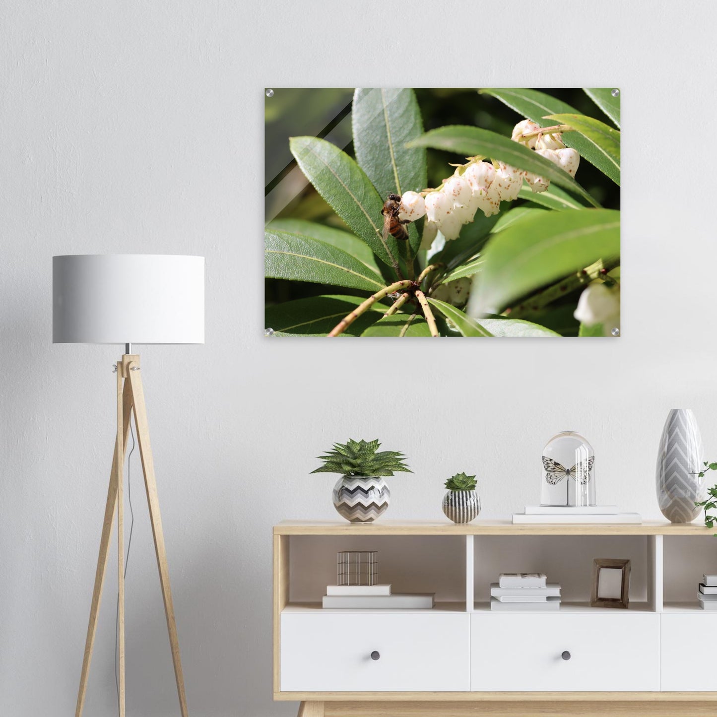 Bee on lilies of the valley - Acrylic prints (lightweight, shatterproof, and temperature-resistant, making them easy to mount on your walls.)