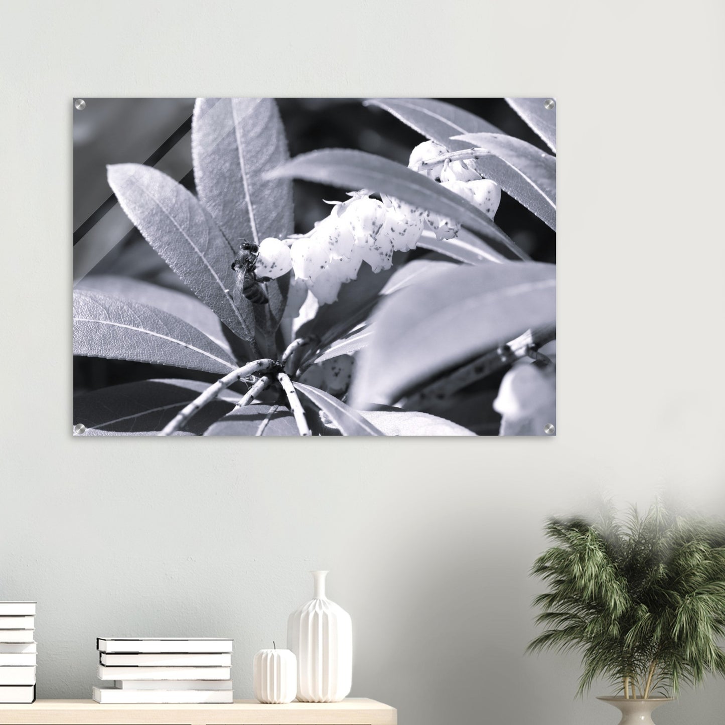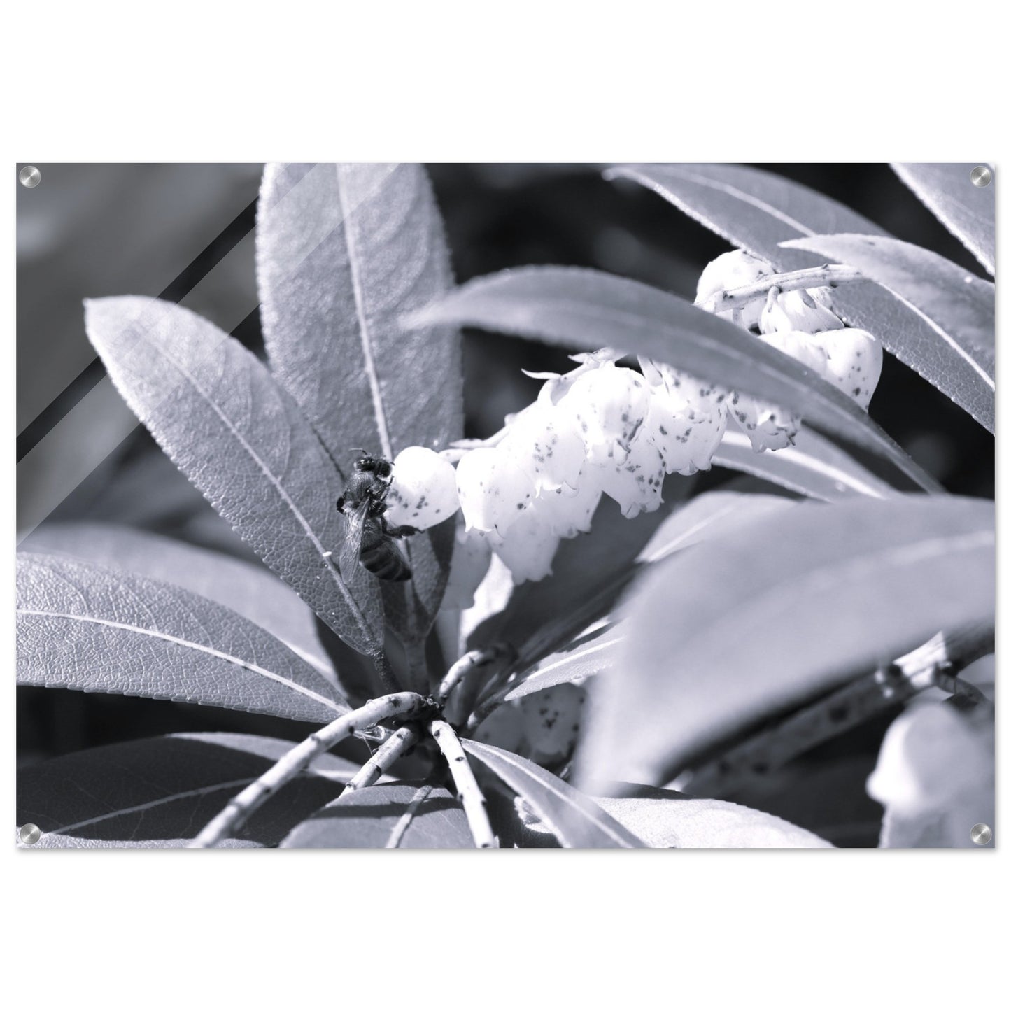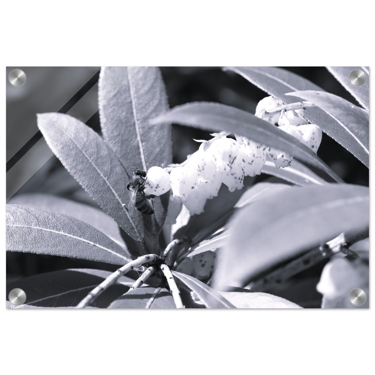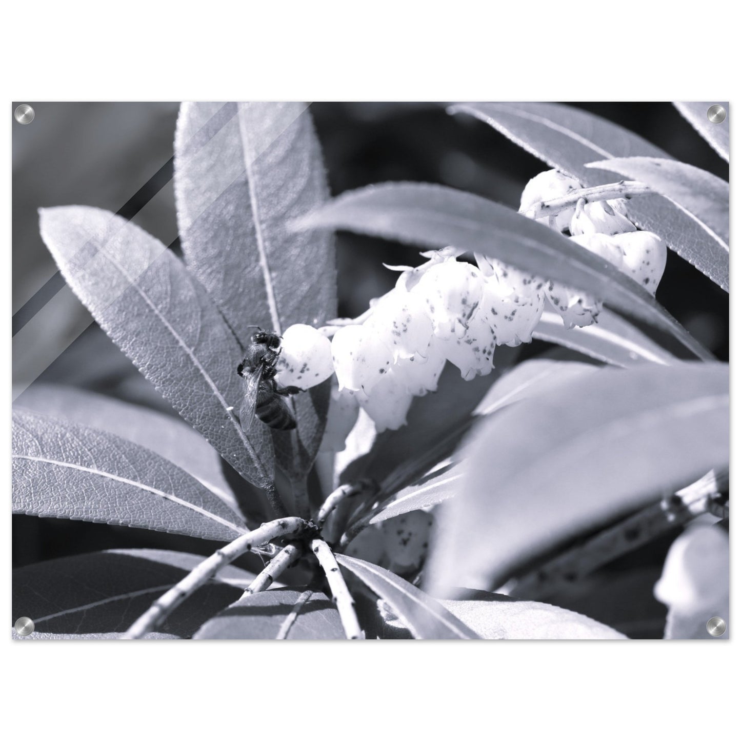 Bee on lilies of the valley - Black & White - Acrylic prints (lightweight, shatterproof, and temperature-resistant, making them easy to mount on your walls.)