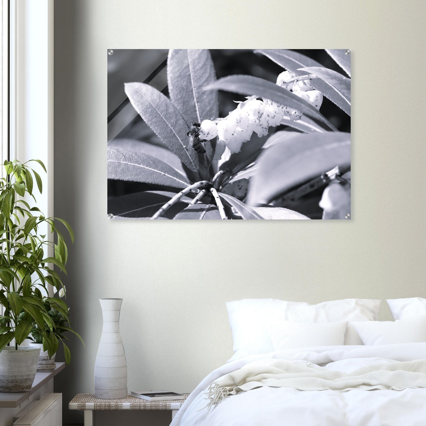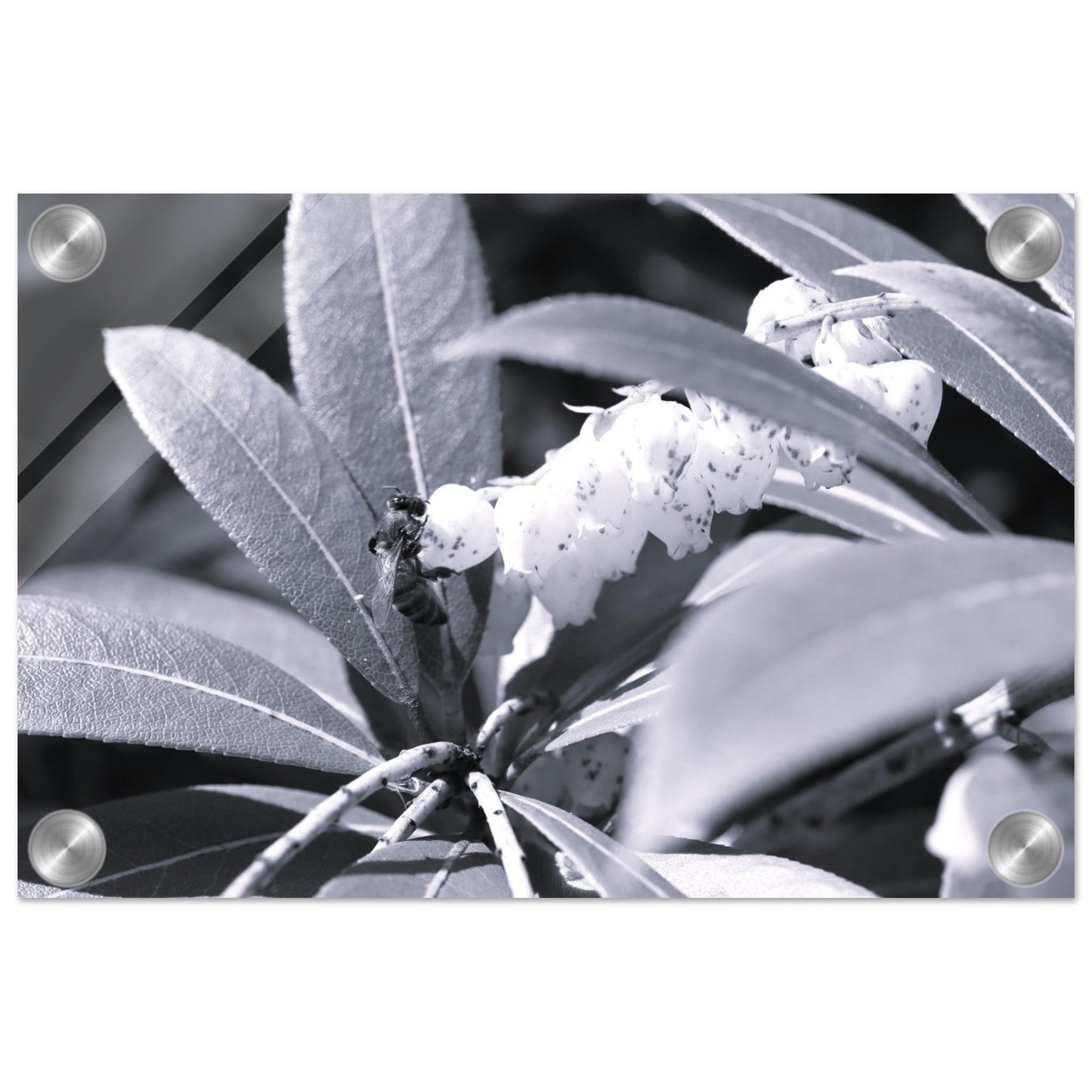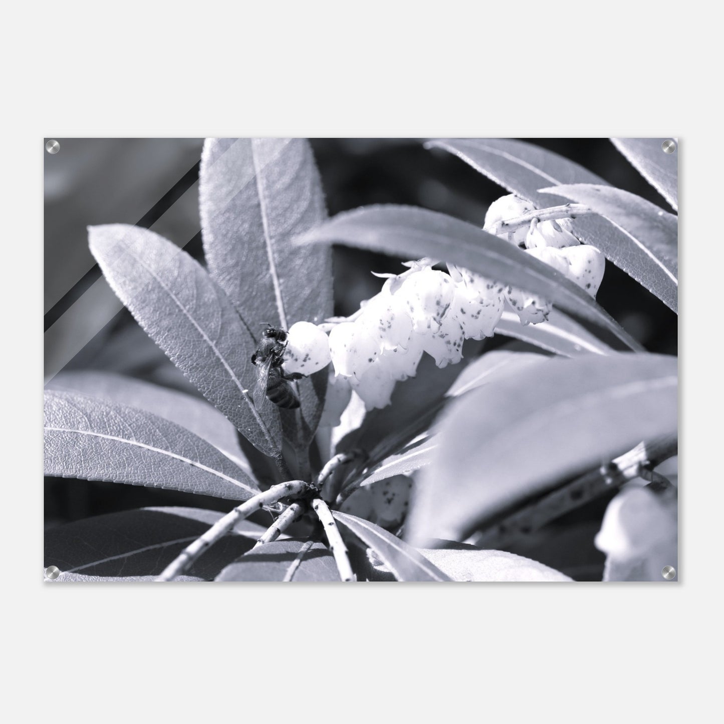 Bee on lilies of the valley - Black & White - Acrylic prints (lightweight, shatterproof, and temperature-resistant, making them easy to mount on your walls.)
