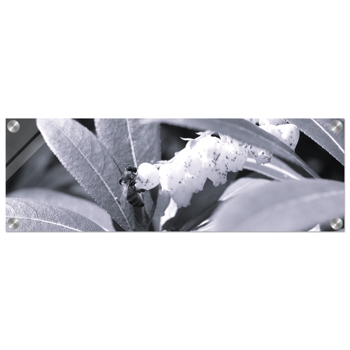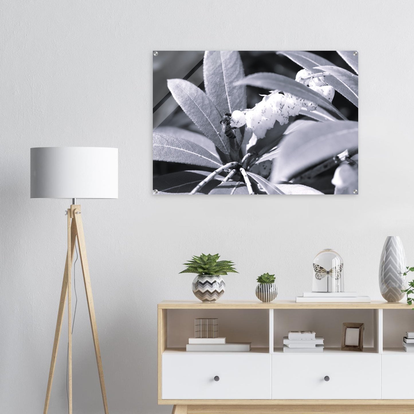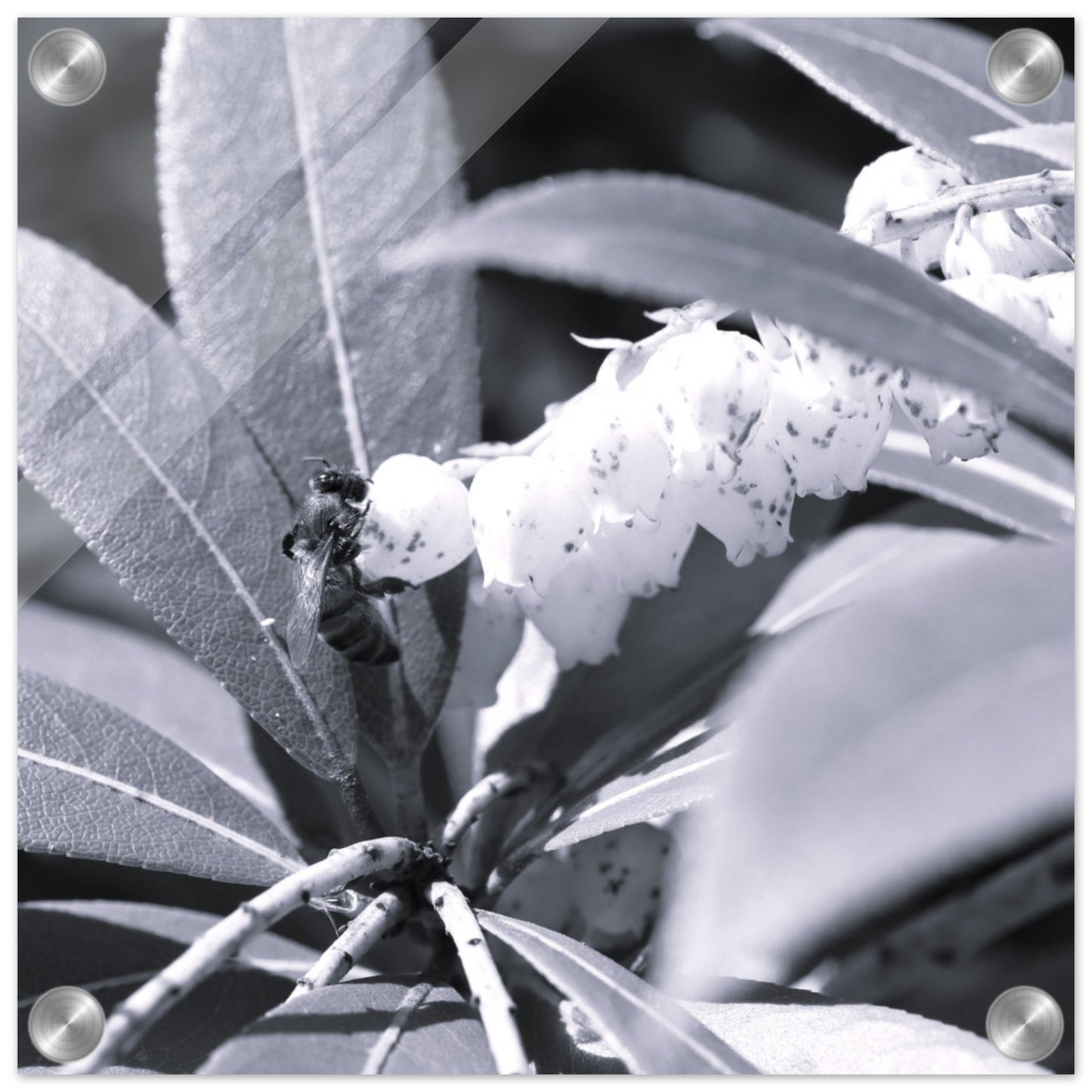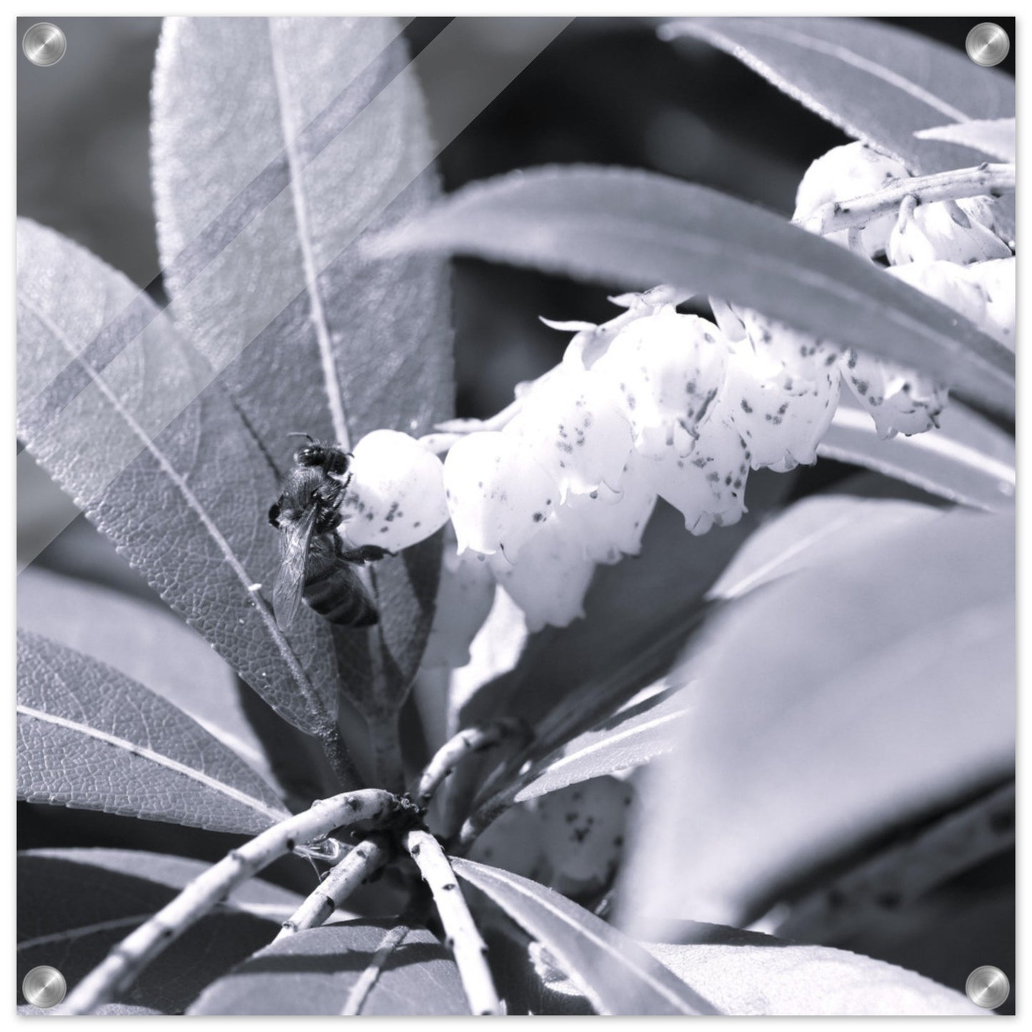 Bee on lilies of the valley - Black & White - Acrylic prints (lightweight, shatterproof, and temperature-resistant, making them easy to mount on your walls.)