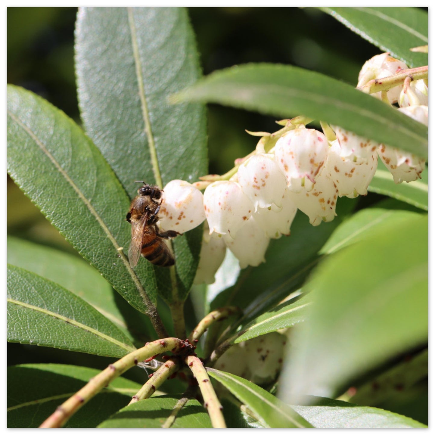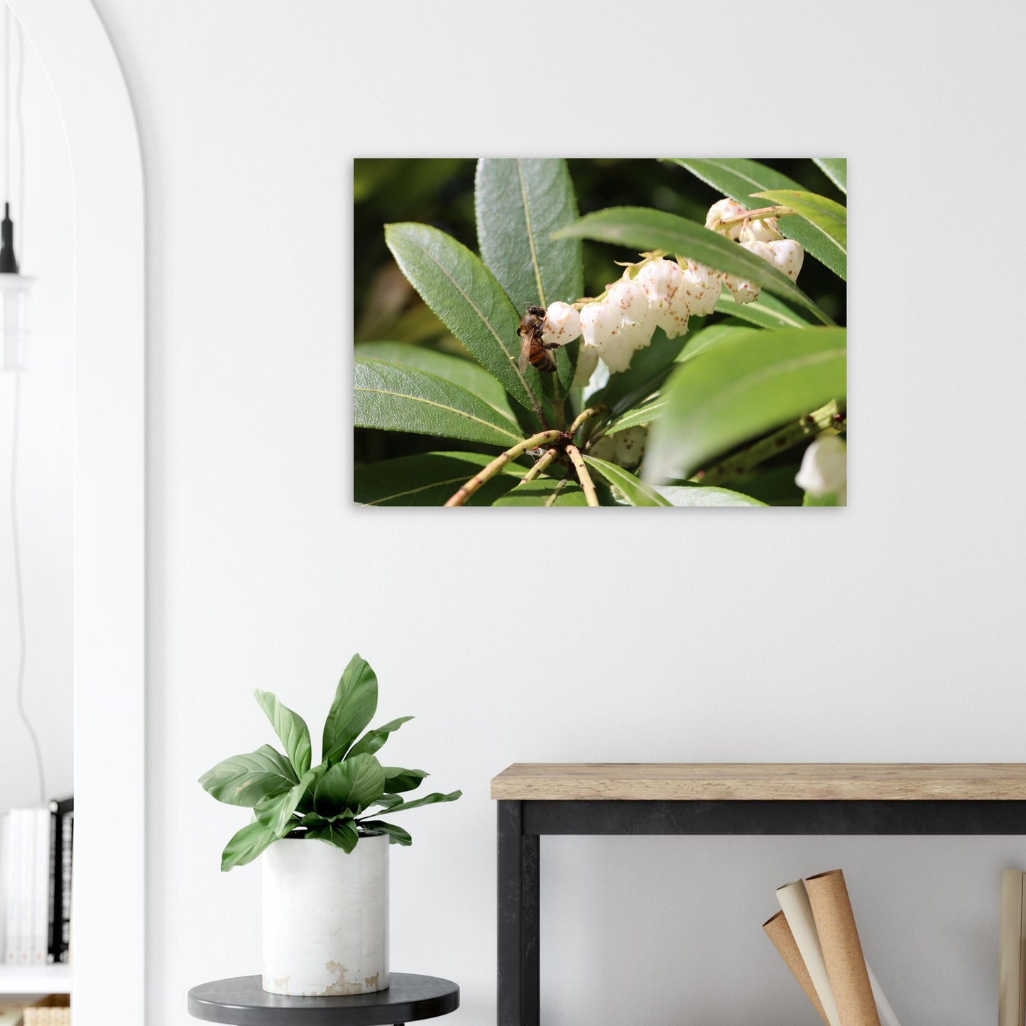 Bee on lilies of the valley - Premium Matte Paper Poster