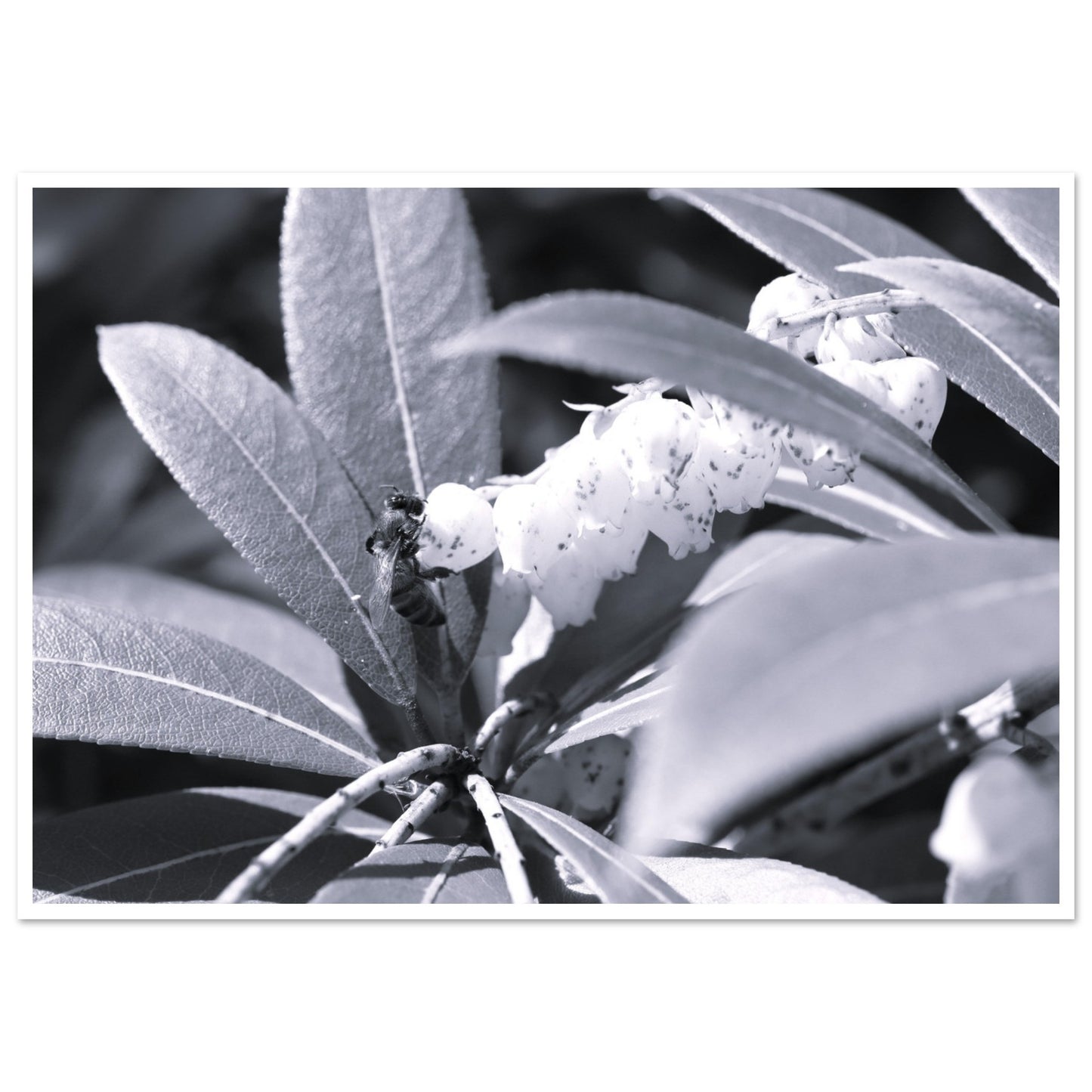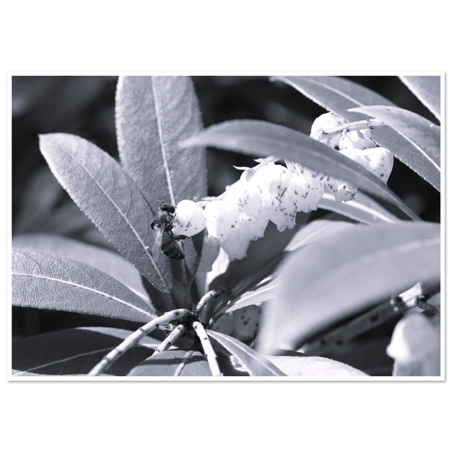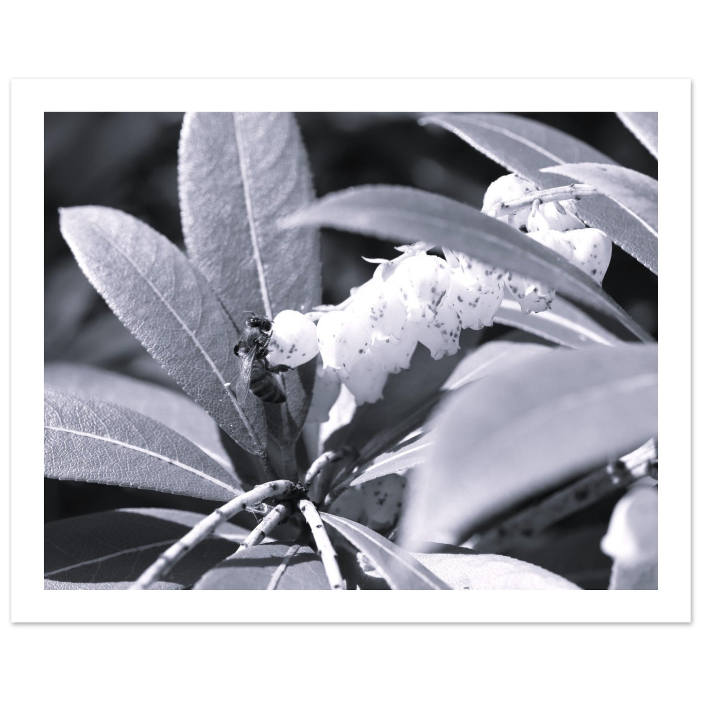 Bee on lilies of the valley (B&W) - Premium Matte Paper Poster