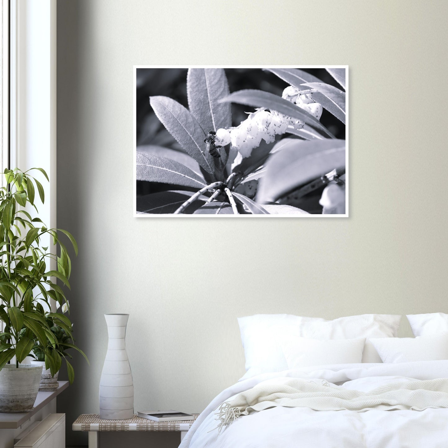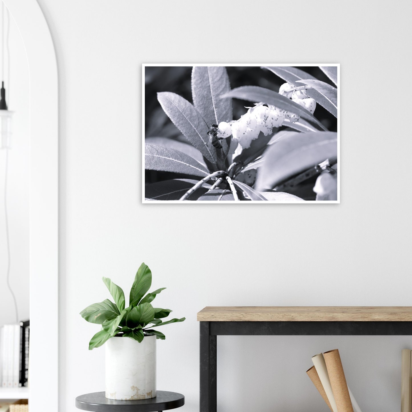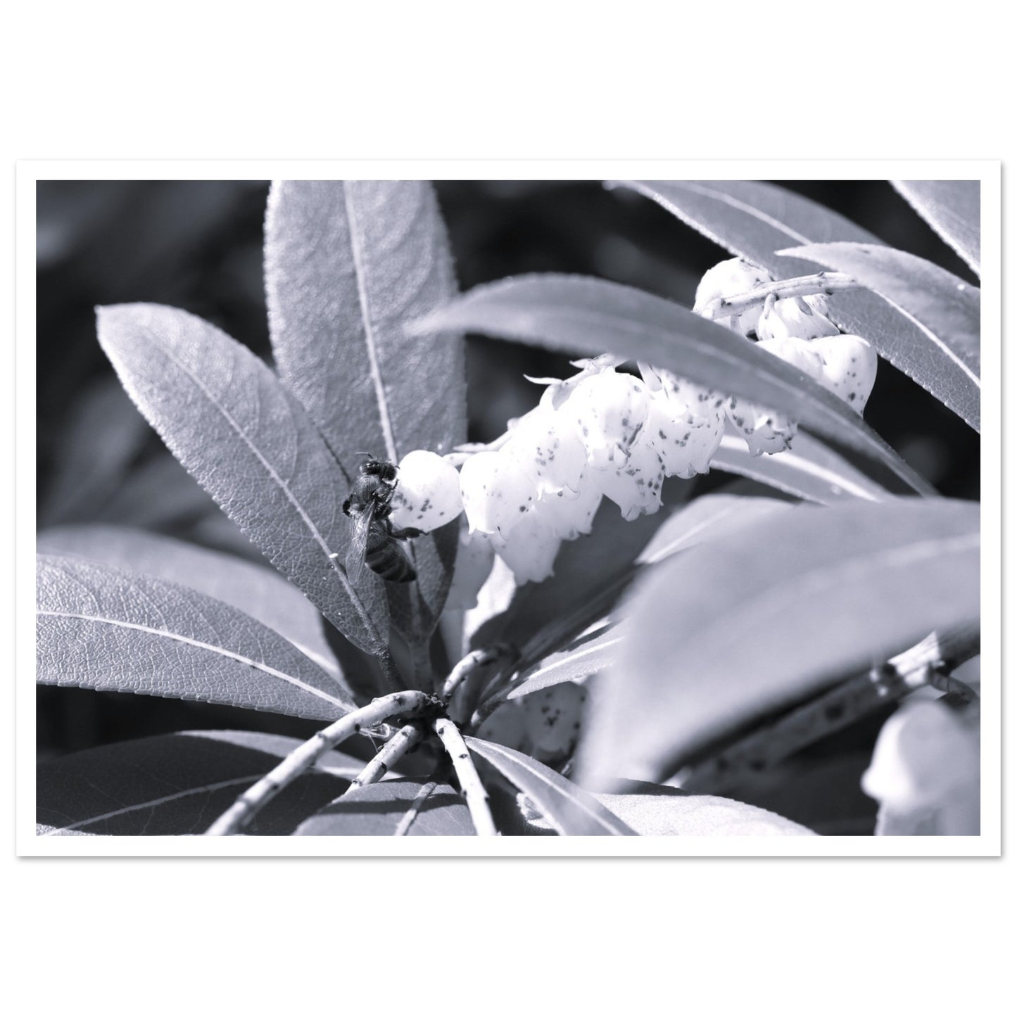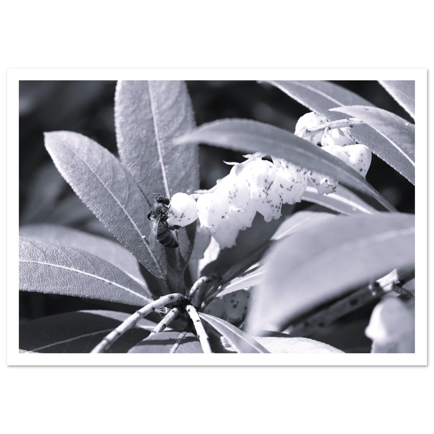 Bee on lilies of the valley (B&W) - Premium Matte Paper Poster