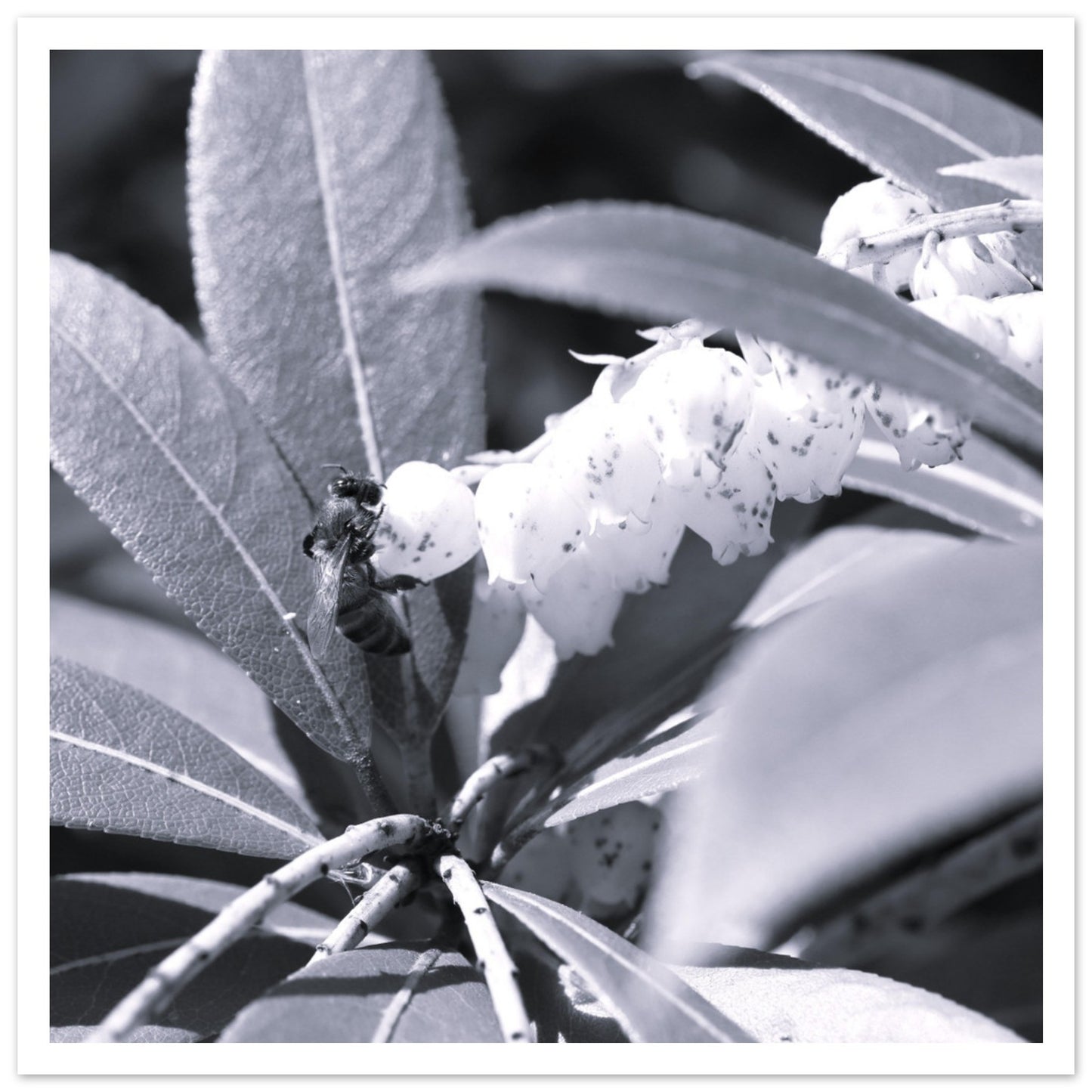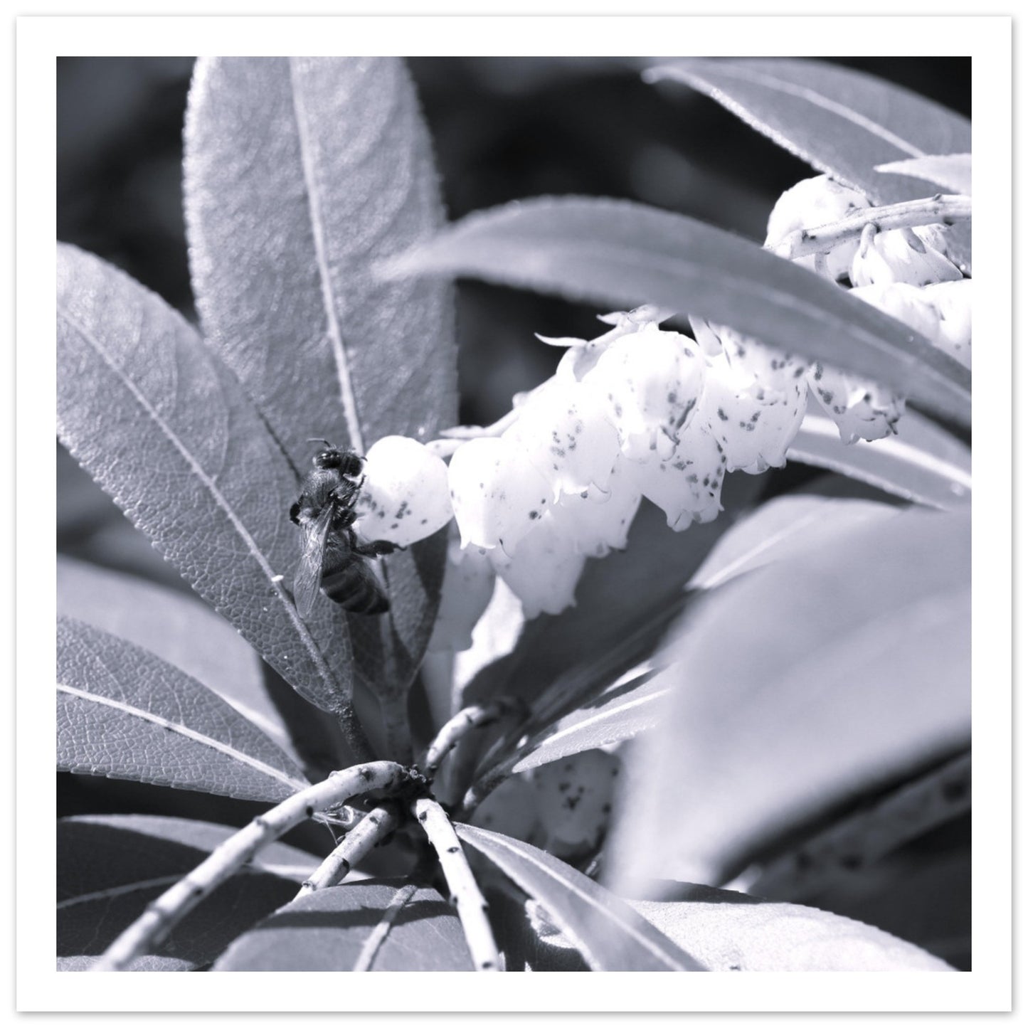 Bee on lilies of the valley - Black & White - Premium Matte Paper Poster
