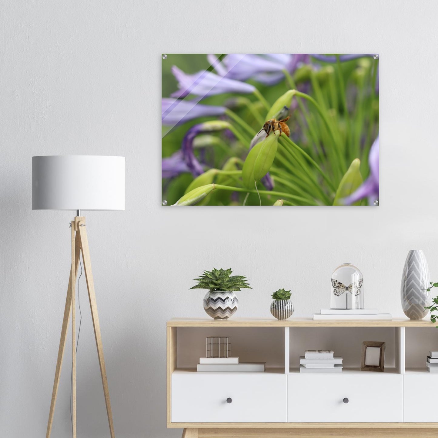 Bee on summer plants - Acrylic prints (lightweight, shatterproof, and temperature-resistant, making them easy to mount on your walls.)