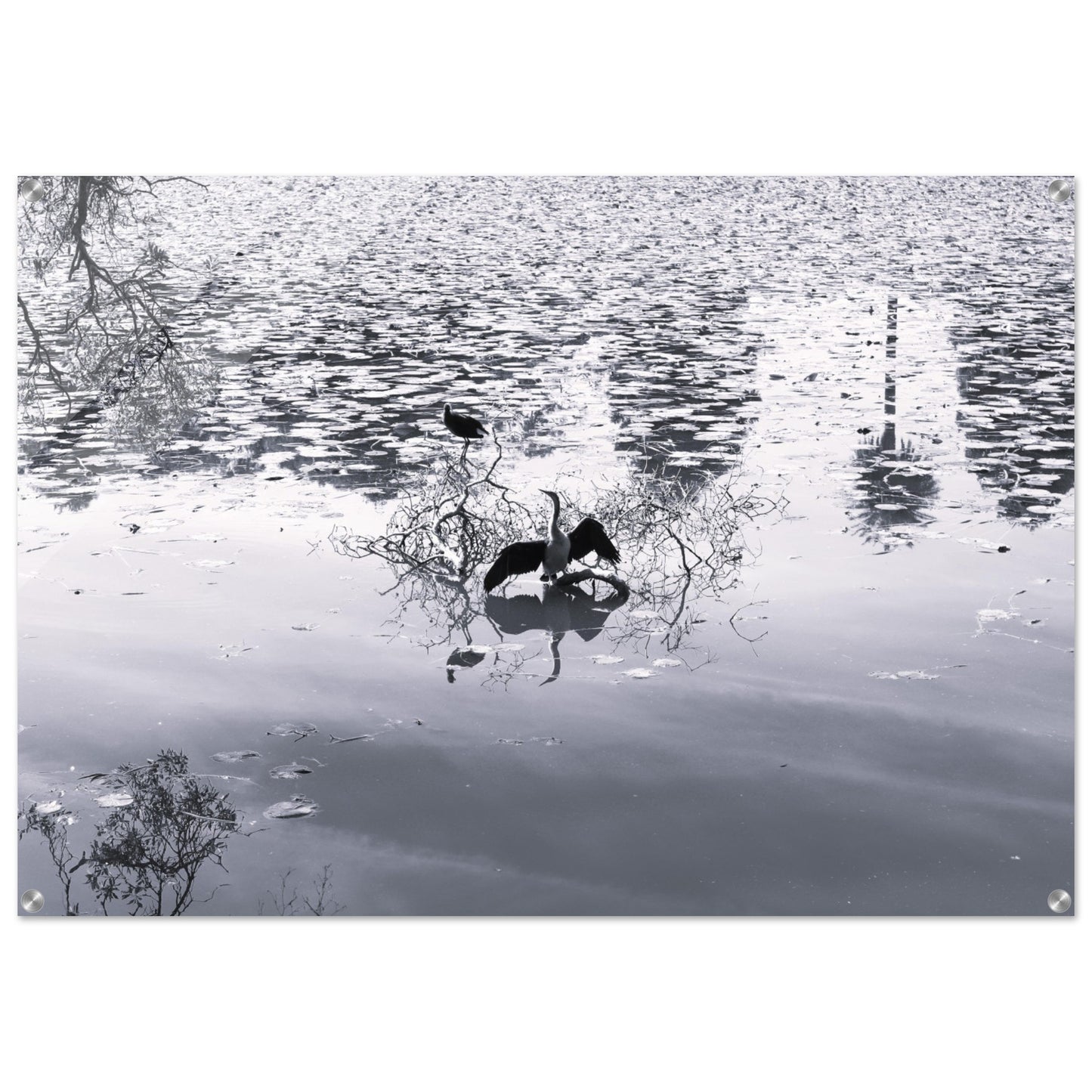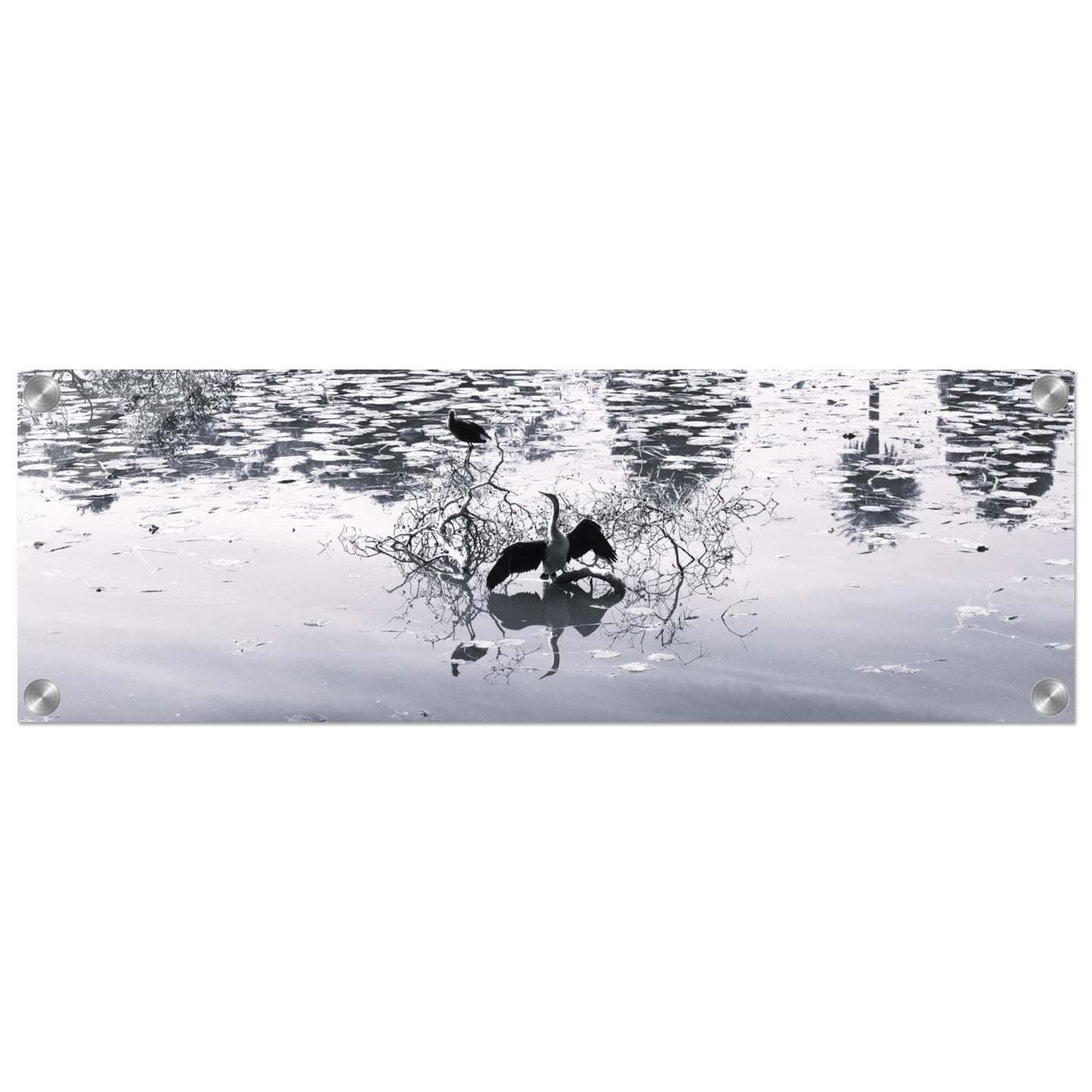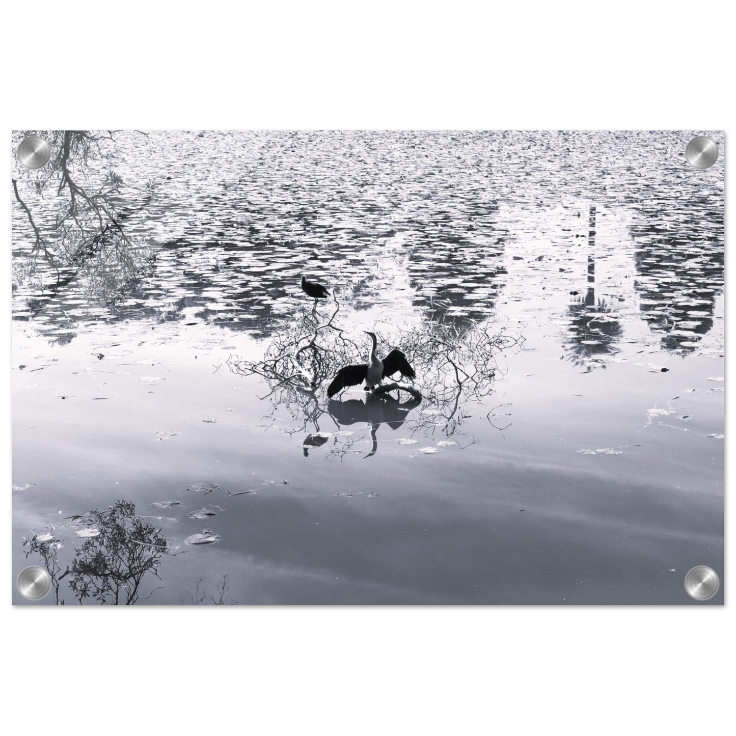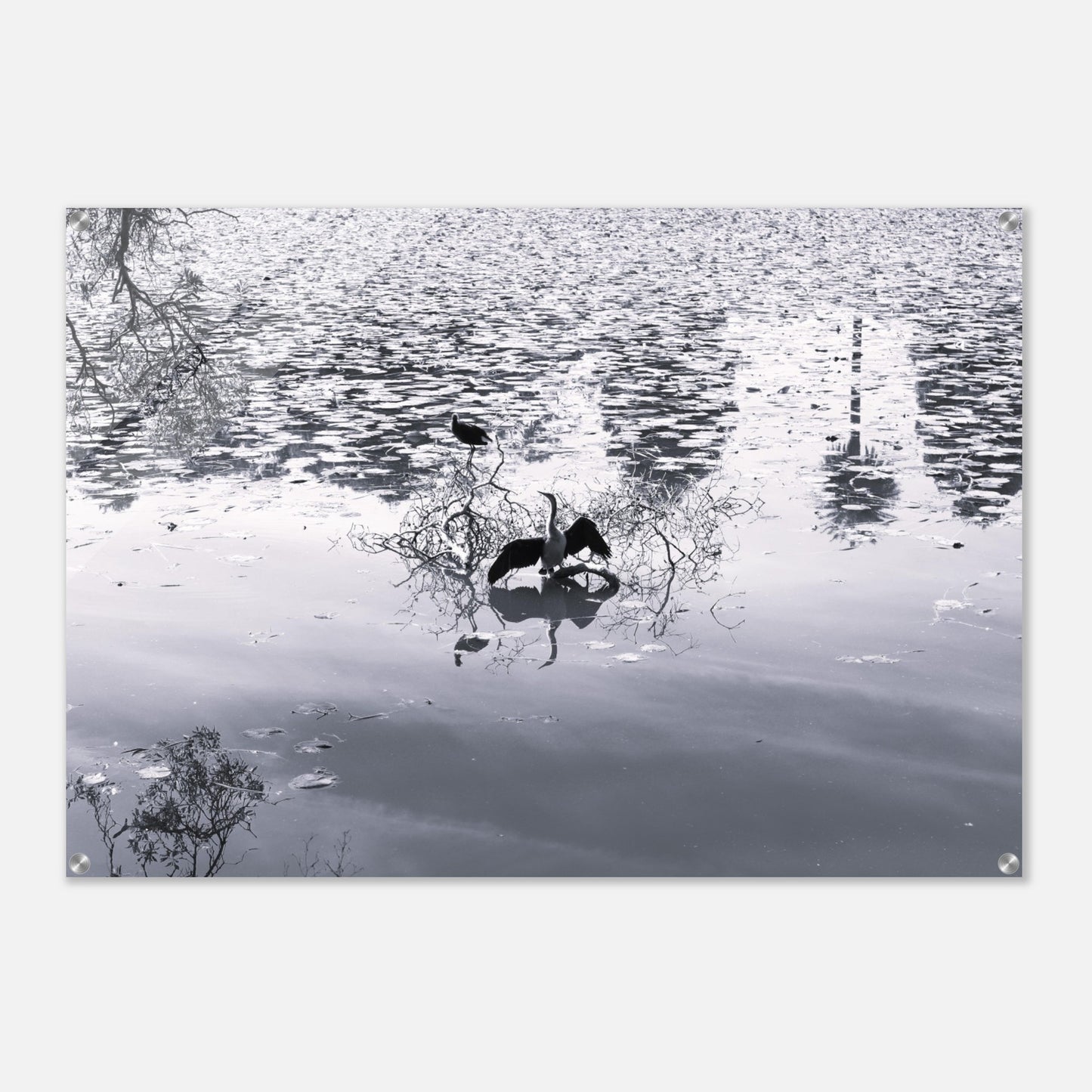 Bird in park lake - Black & White - Acrylic prints (lightweight, shatterproof, and temperature-resistant, making them easy to mount on your walls.)
