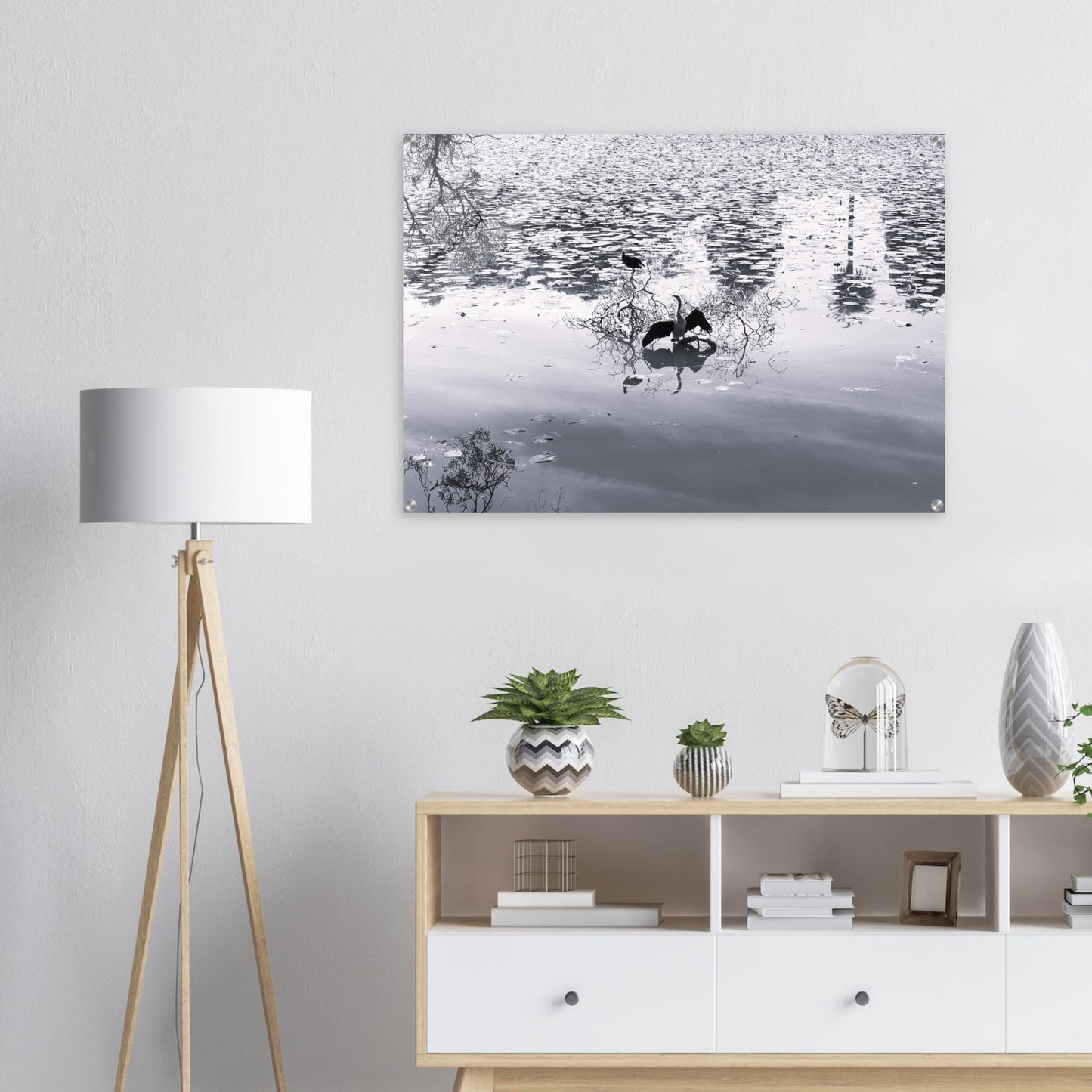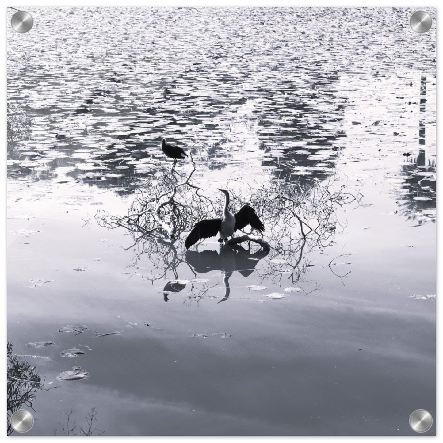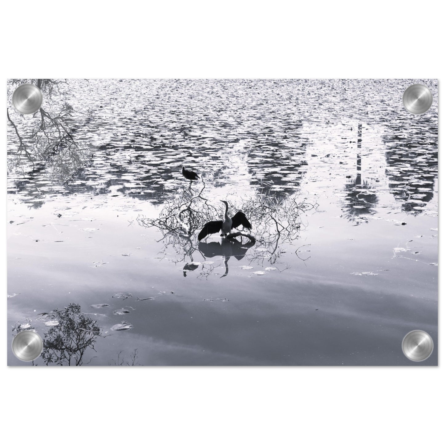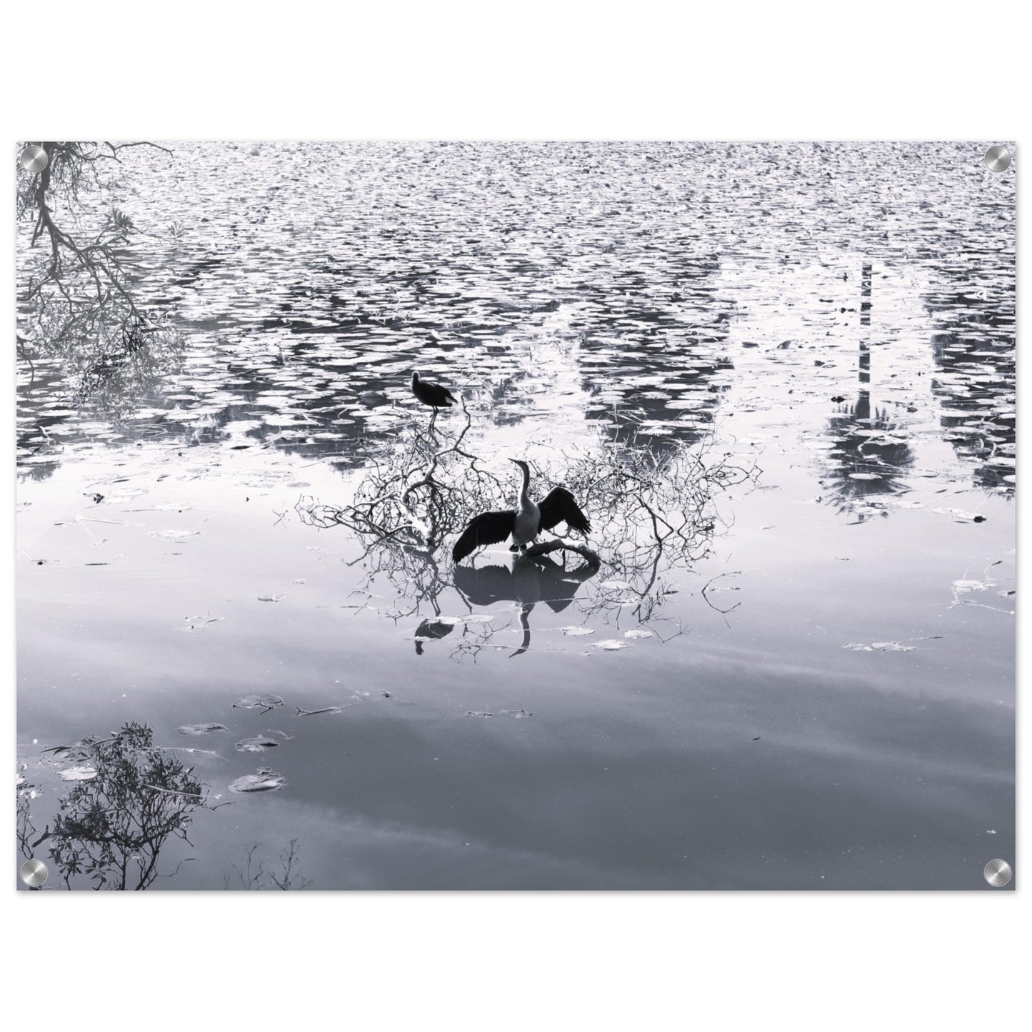 Bird in park lake - Black & White - Acrylic prints (lightweight, shatterproof, and temperature-resistant, making them easy to mount on your walls.)