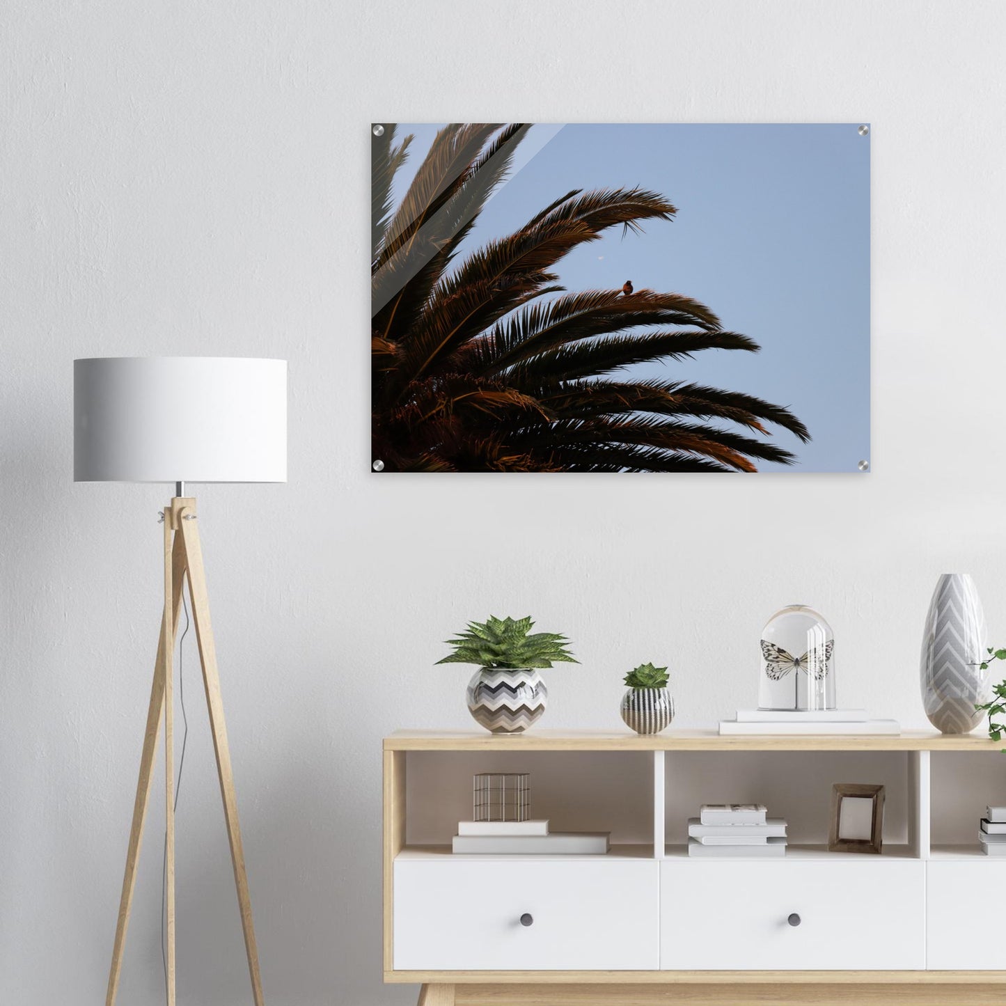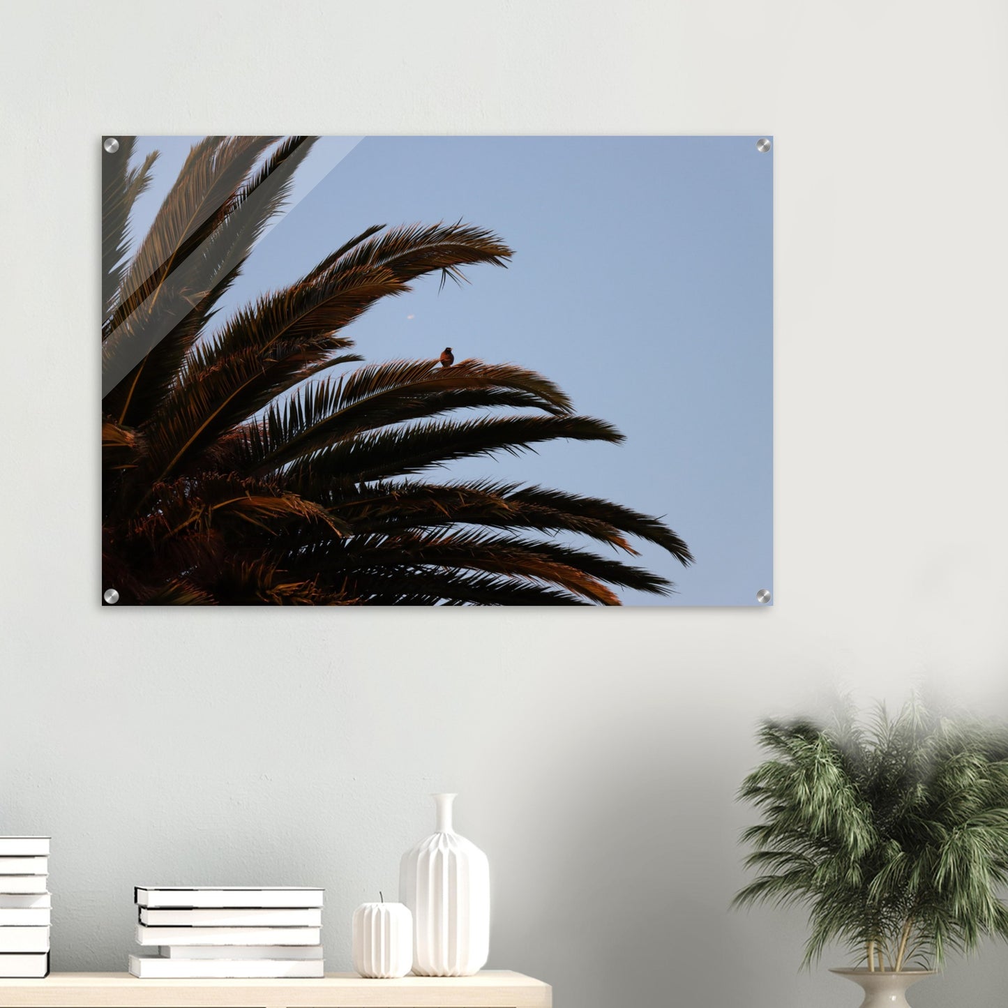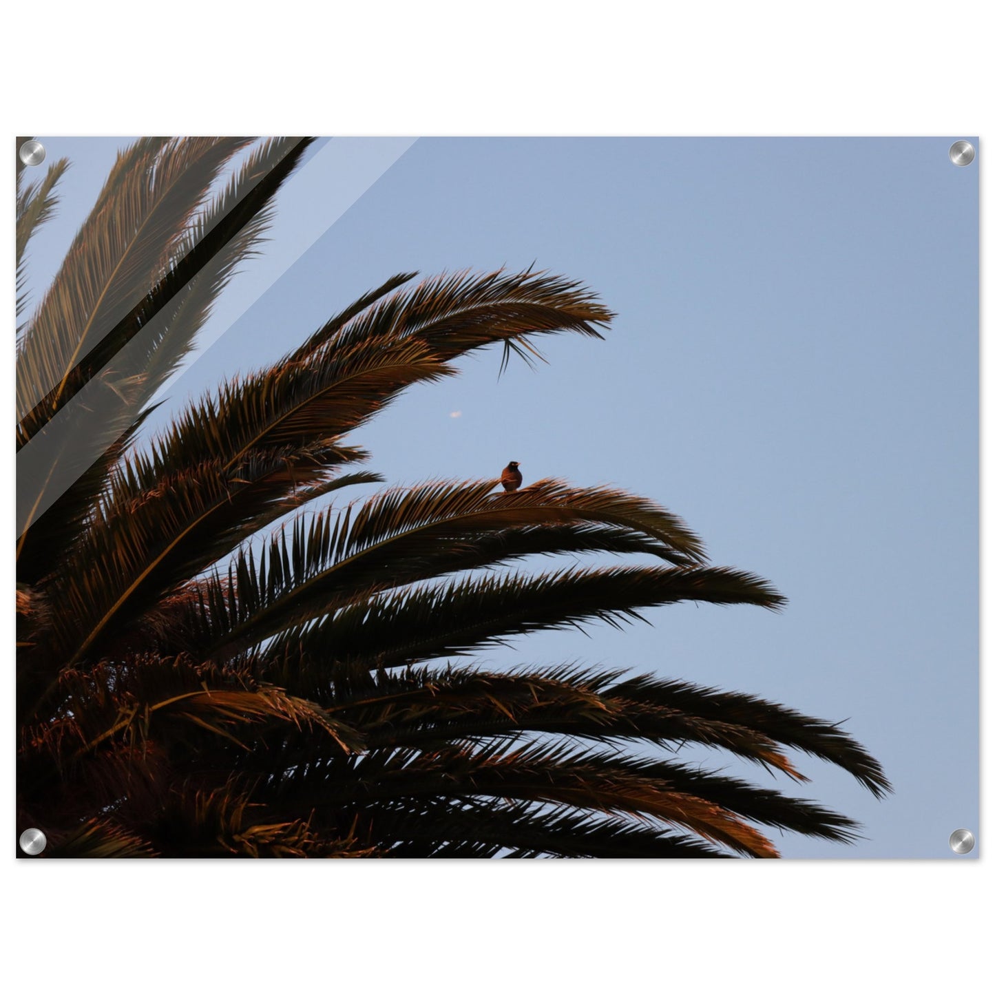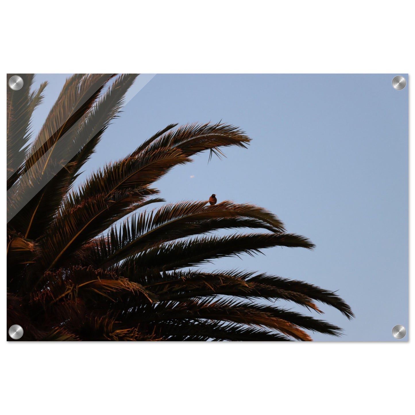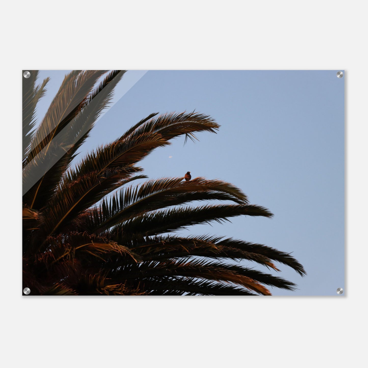 Bird on palm tree - Acrylic prints (lightweight, shatterproof, and temperature-resistant, making them easy to mount on your walls.)