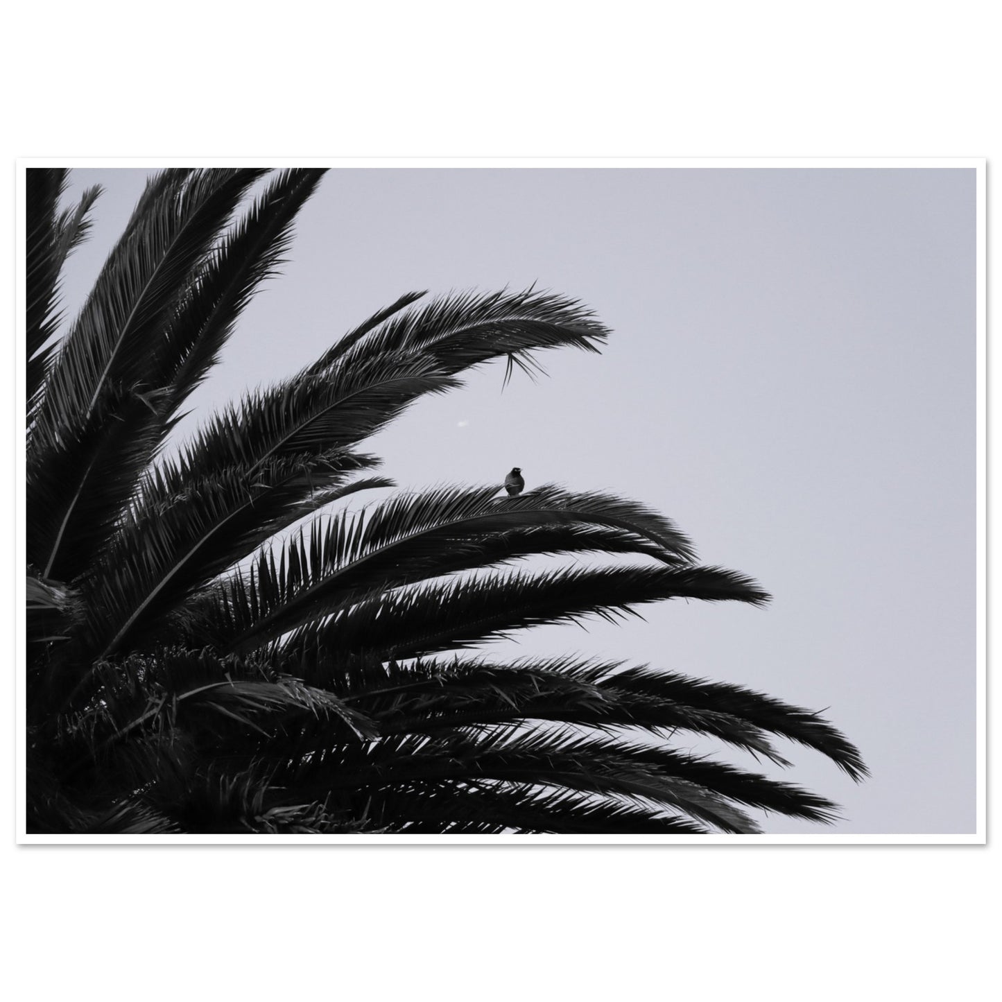 Bird on palm tree (B&W) - Premium Matte Paper Poster