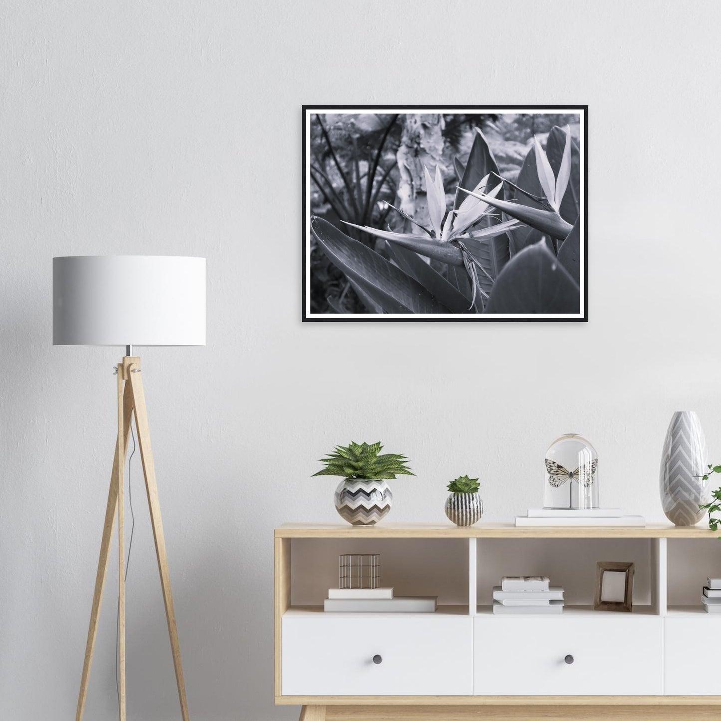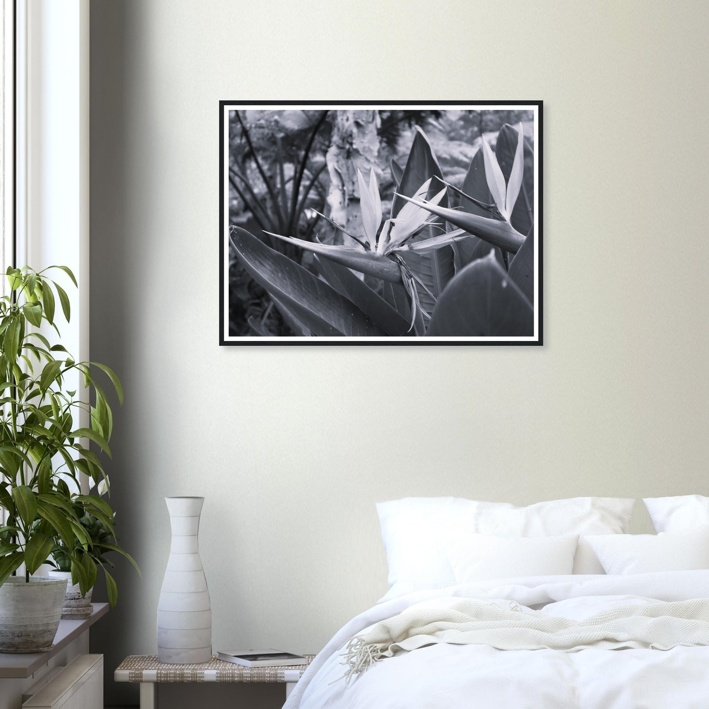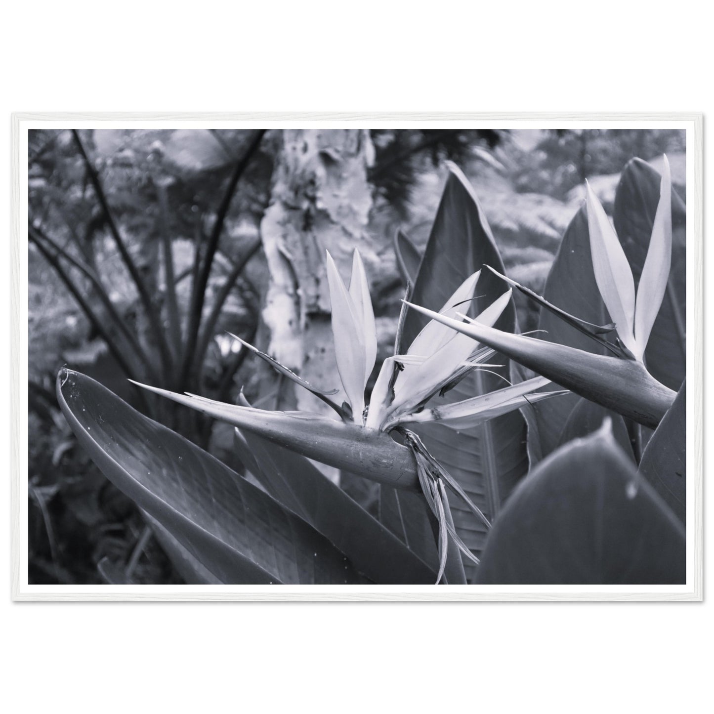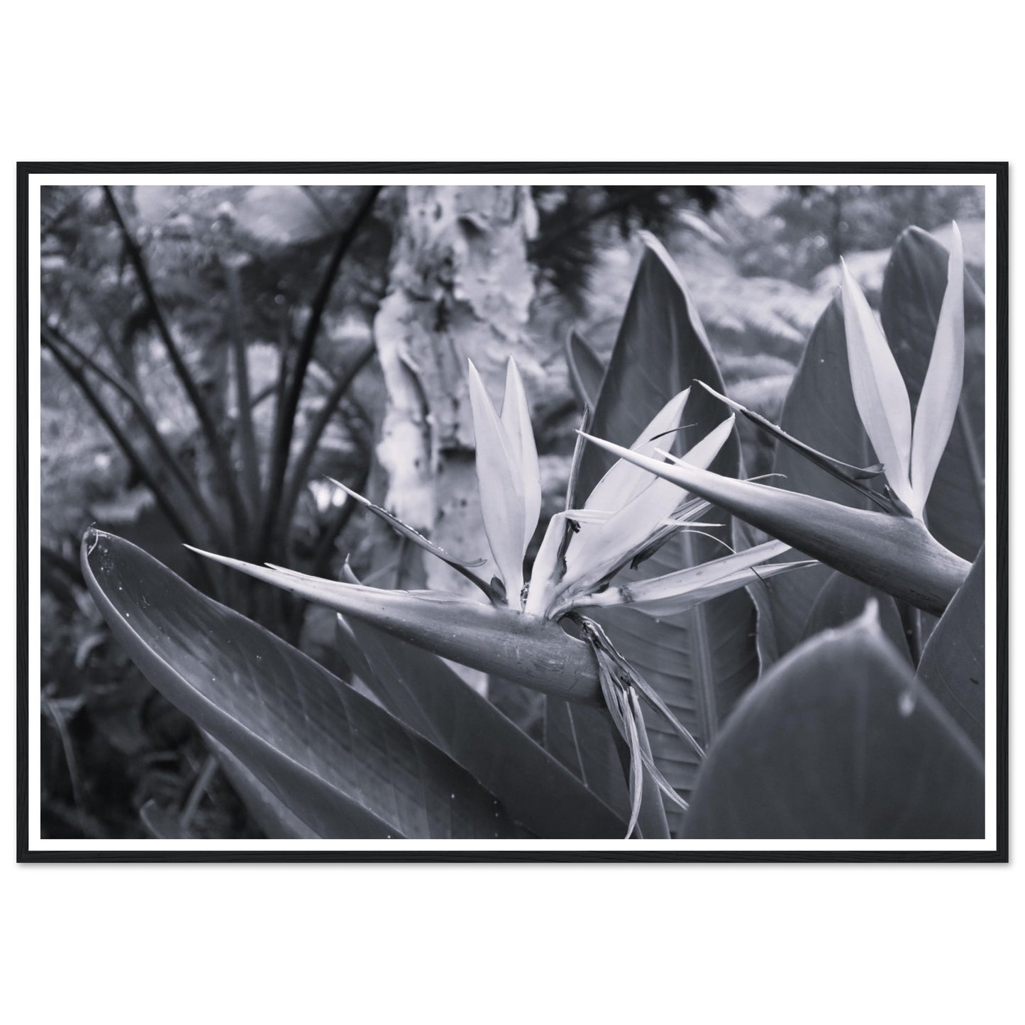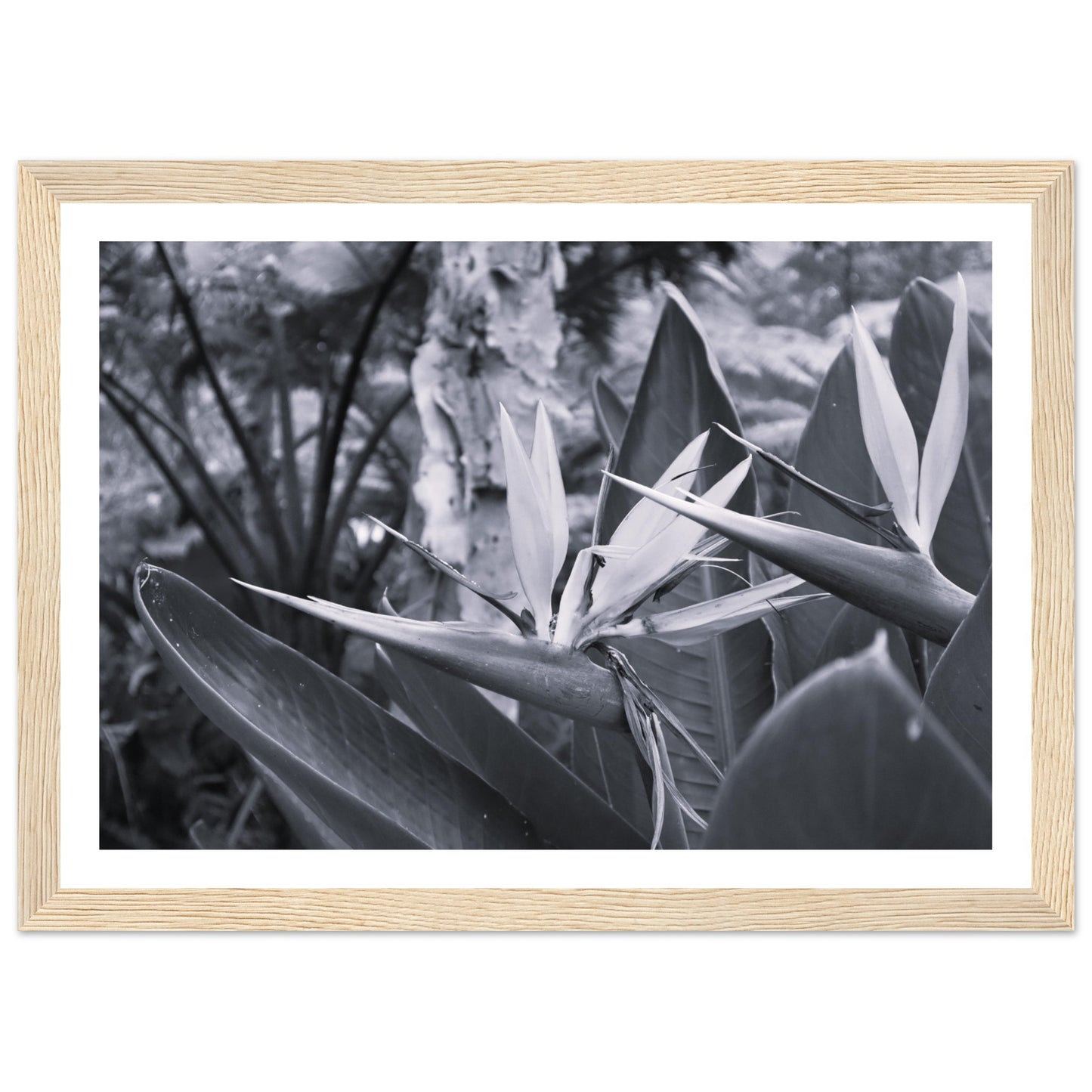Birds of paradise - Black & White - Premium matte paper poster with wooden frame