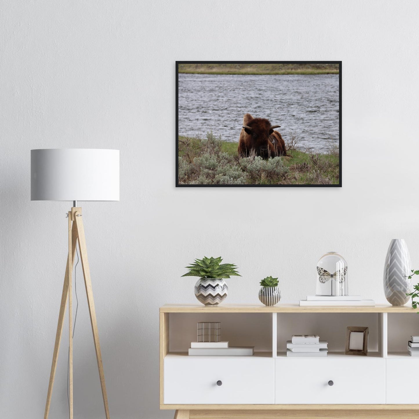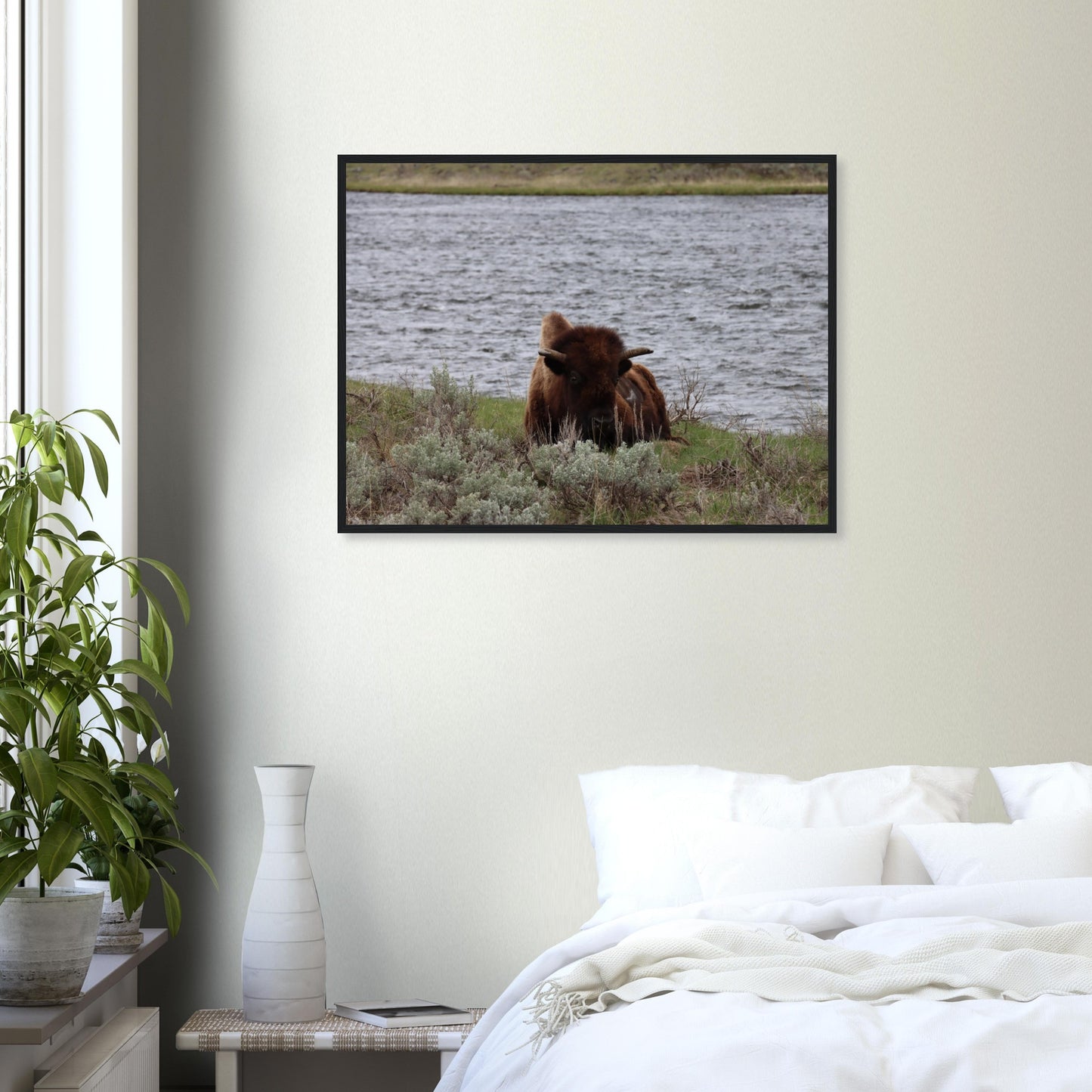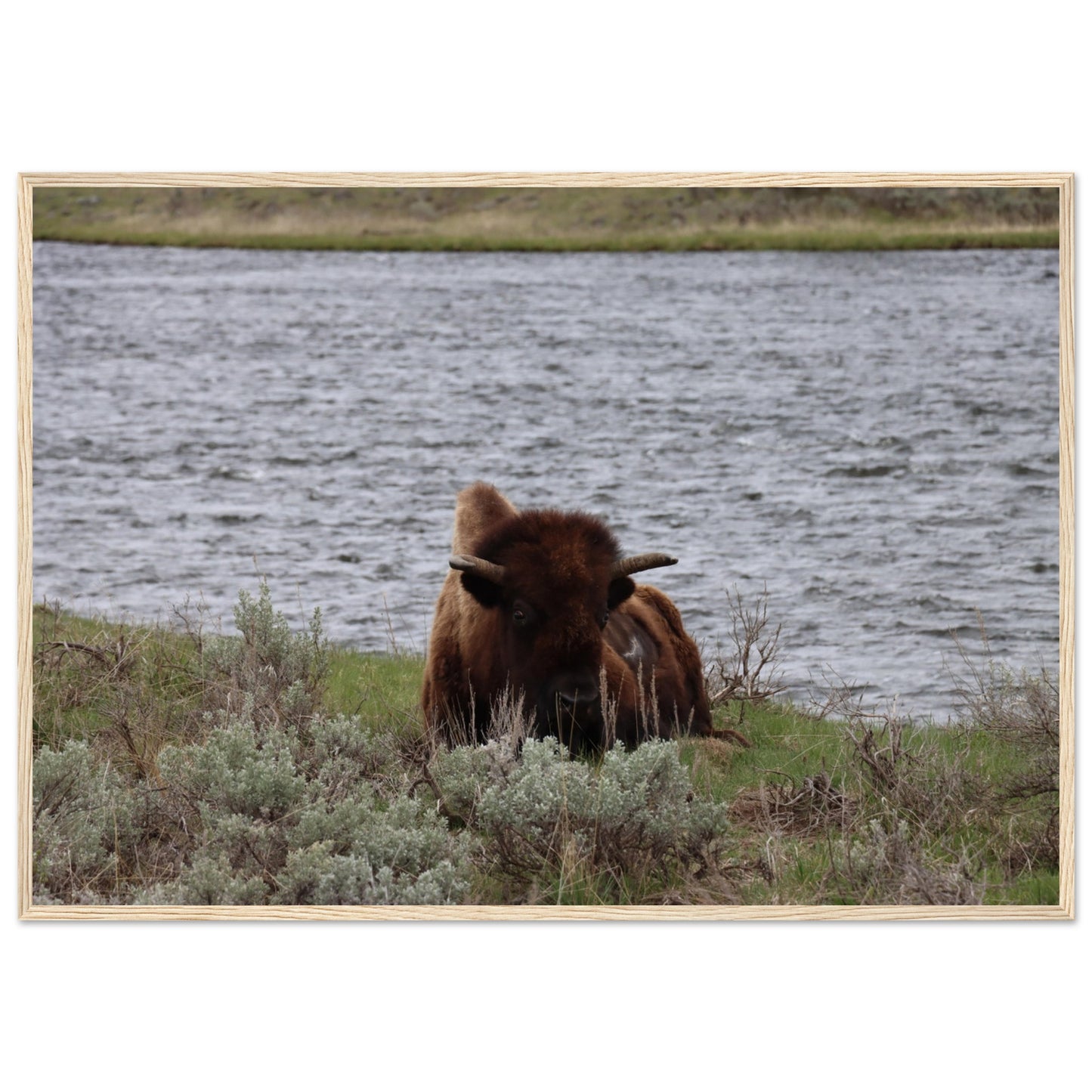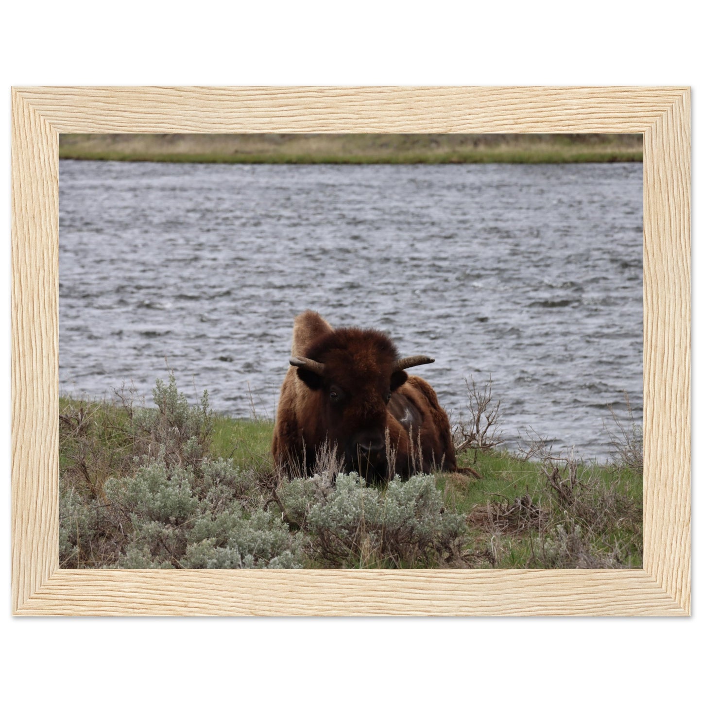 Bison by the river - Premium Matte Paper Wooden Framed Poster