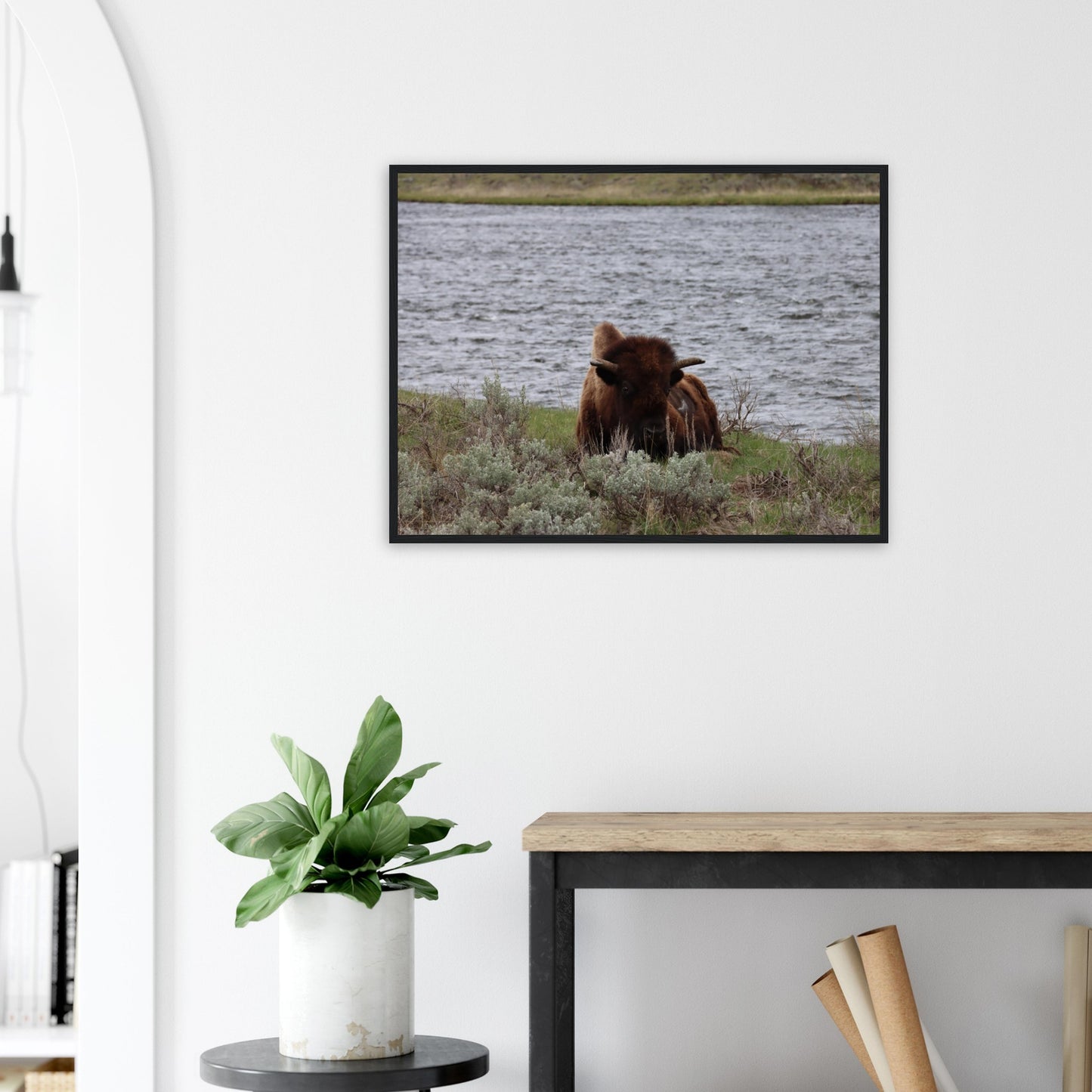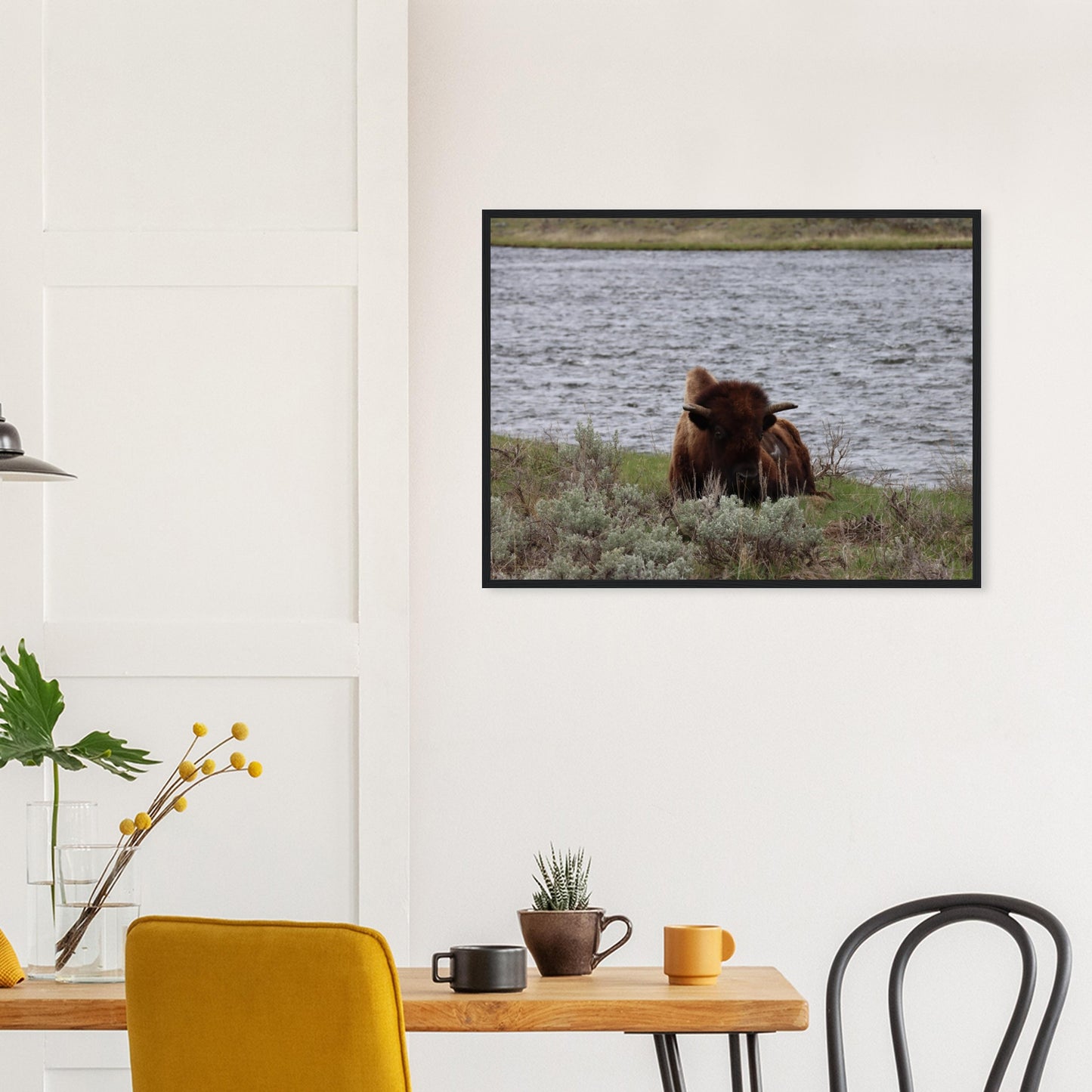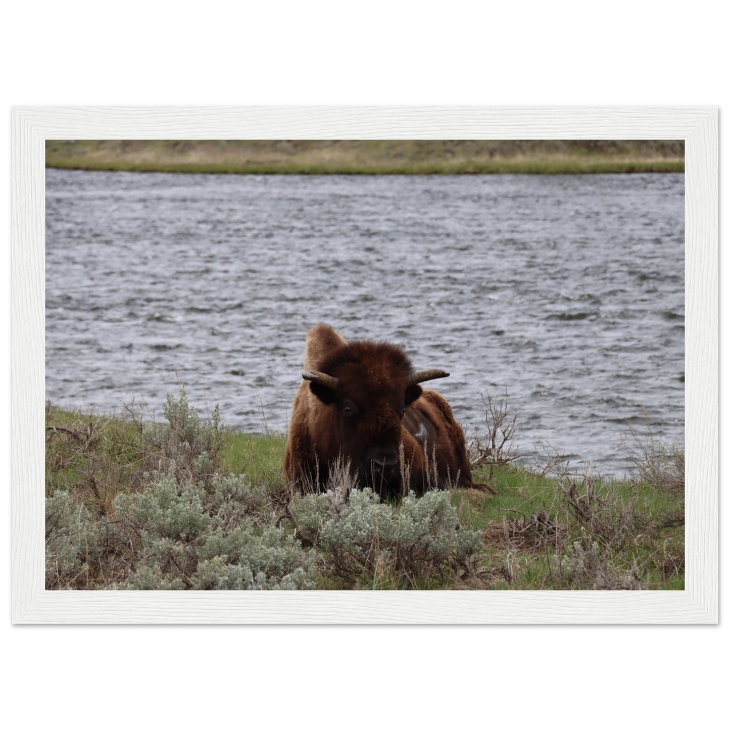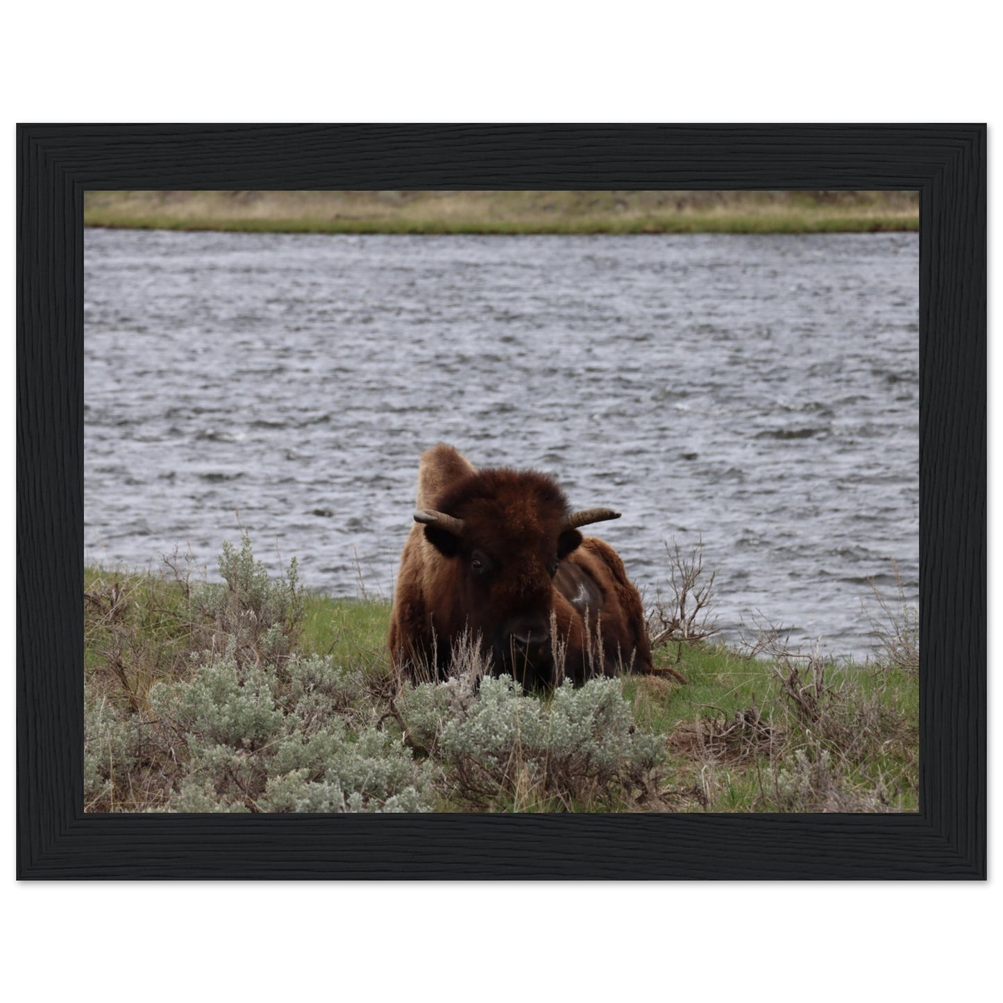 Bison by the river - Premium Matte Paper Wooden Framed Poster