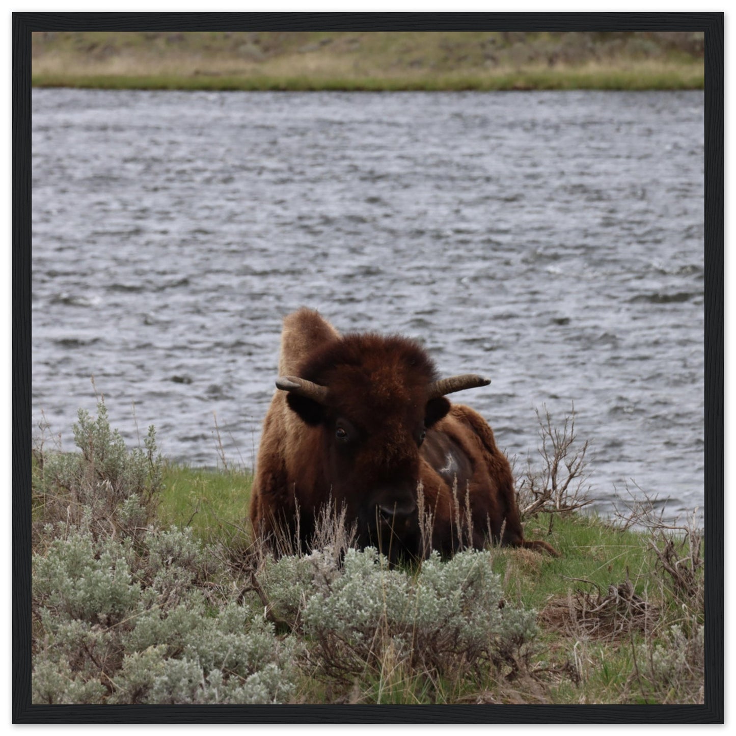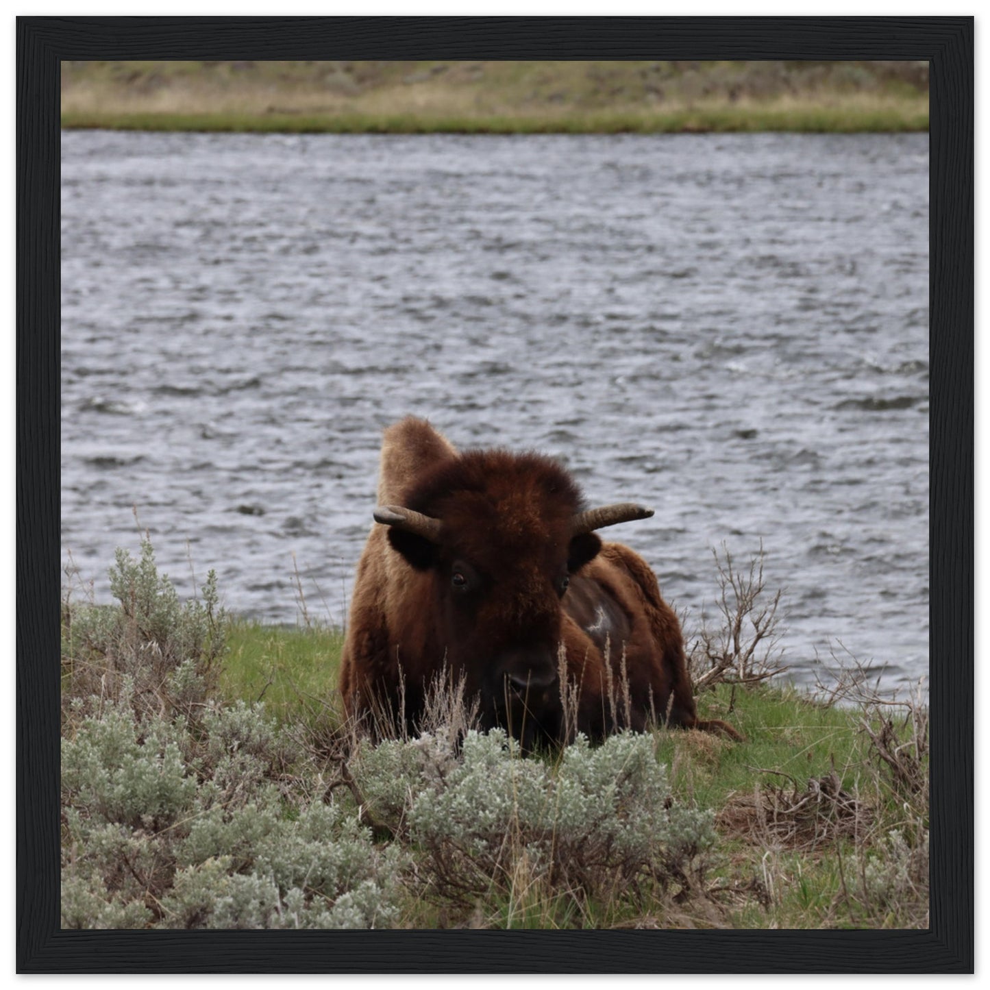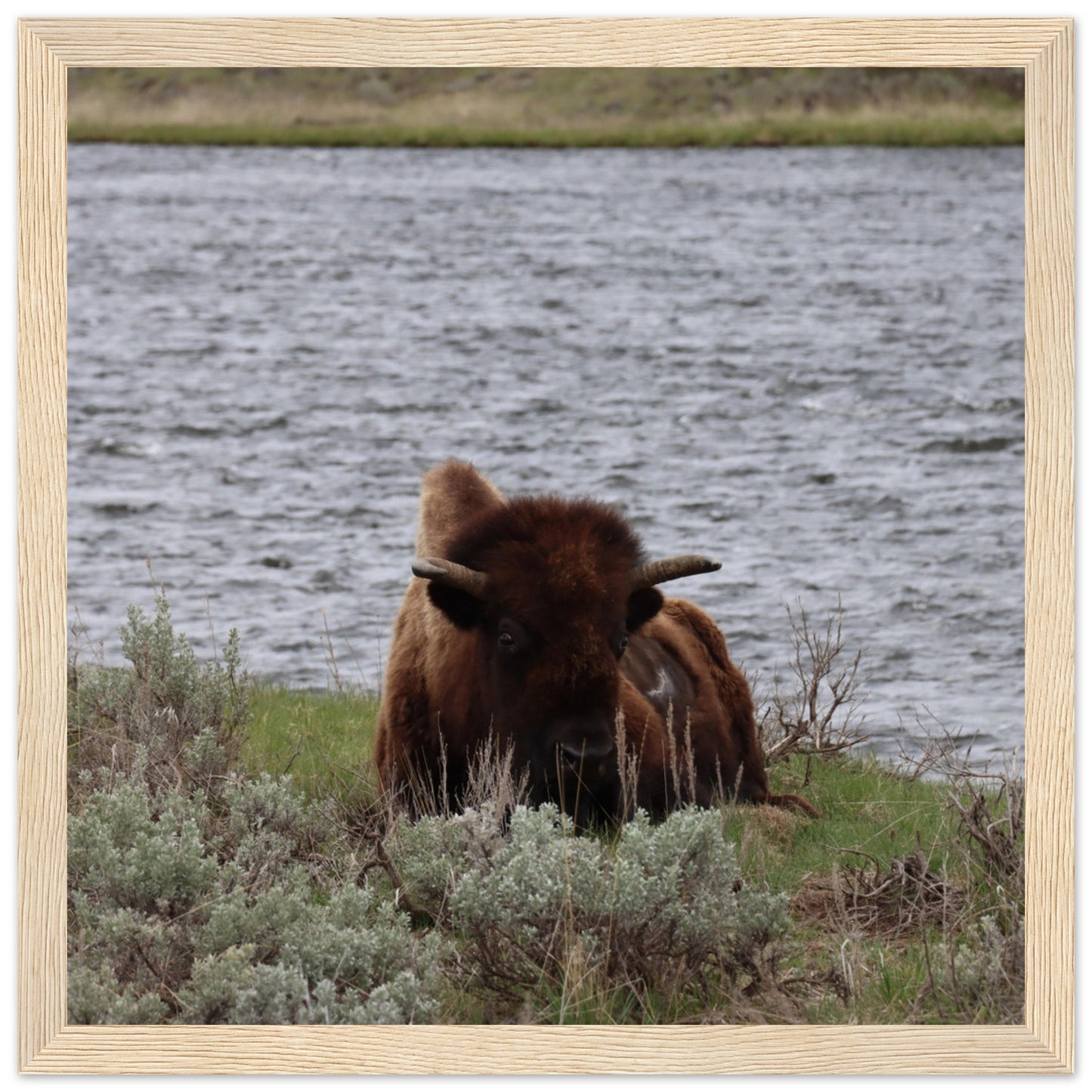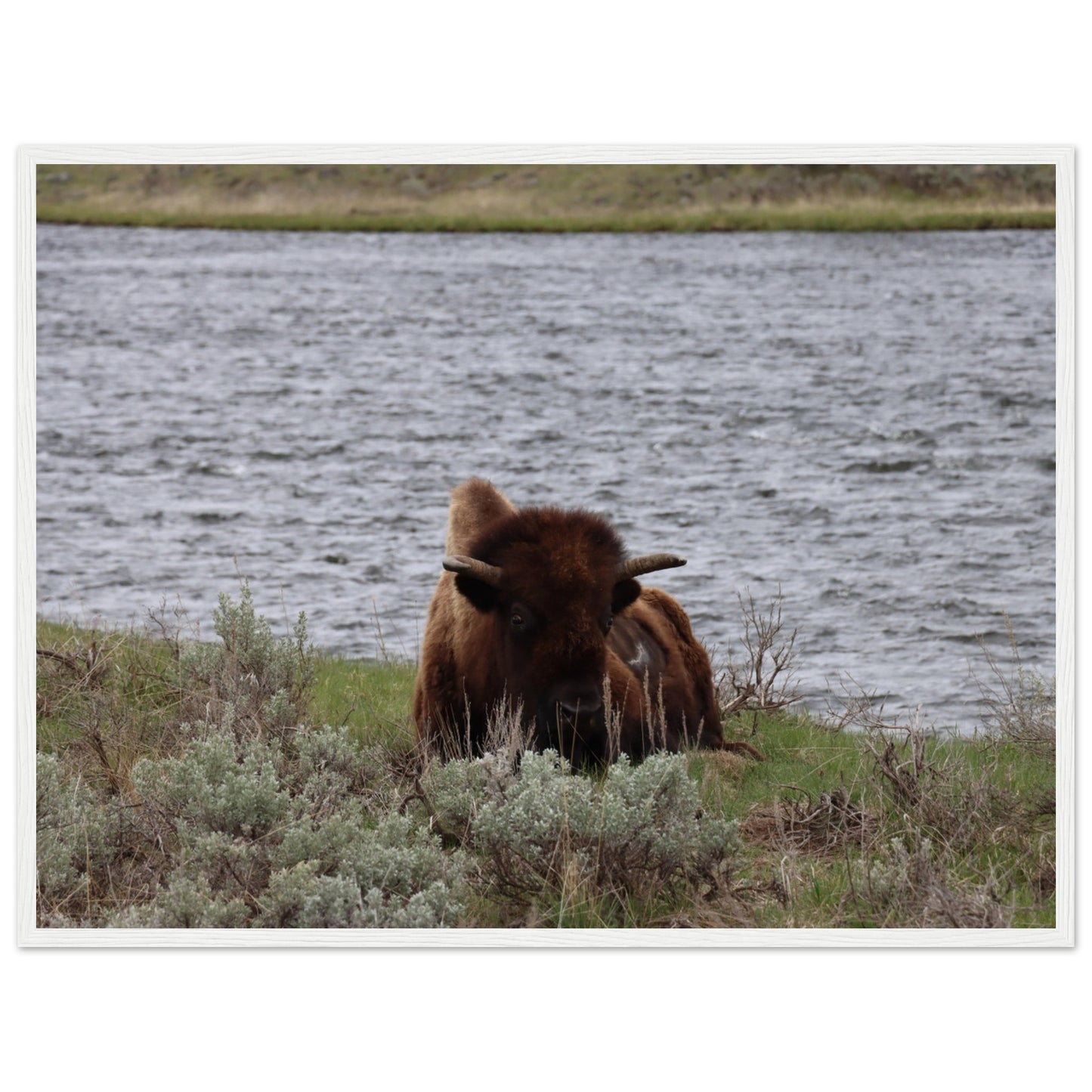 Bison by the river - Premium Matte Paper Wooden Framed Poster