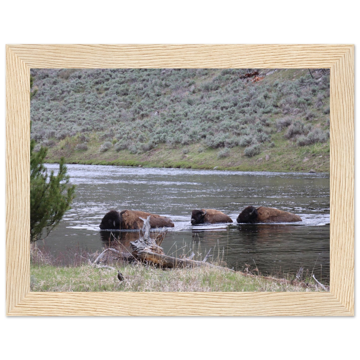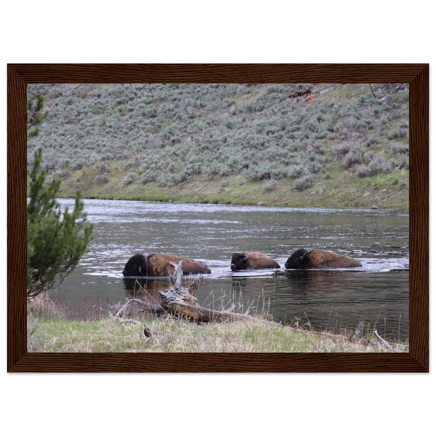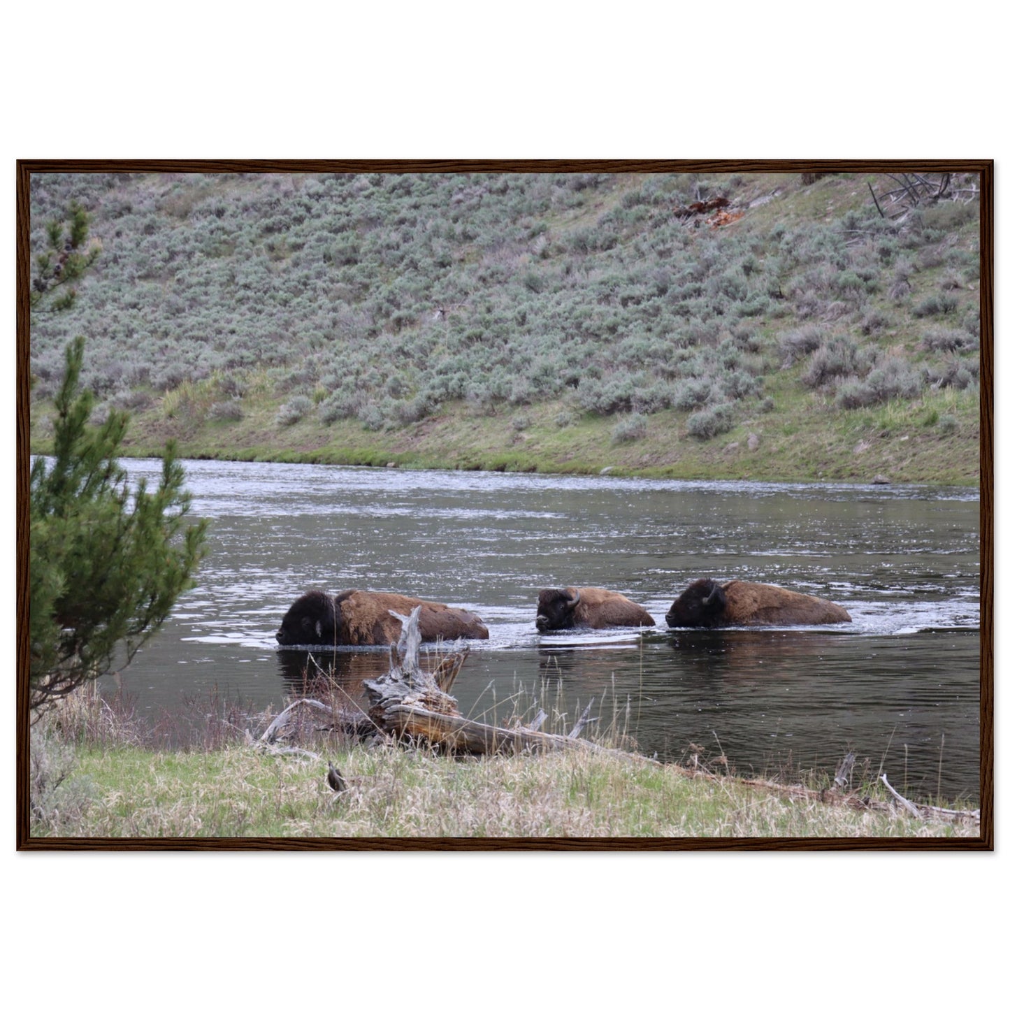 Bisons crossing the river - Premium Matte Paper Wooden Framed Poster