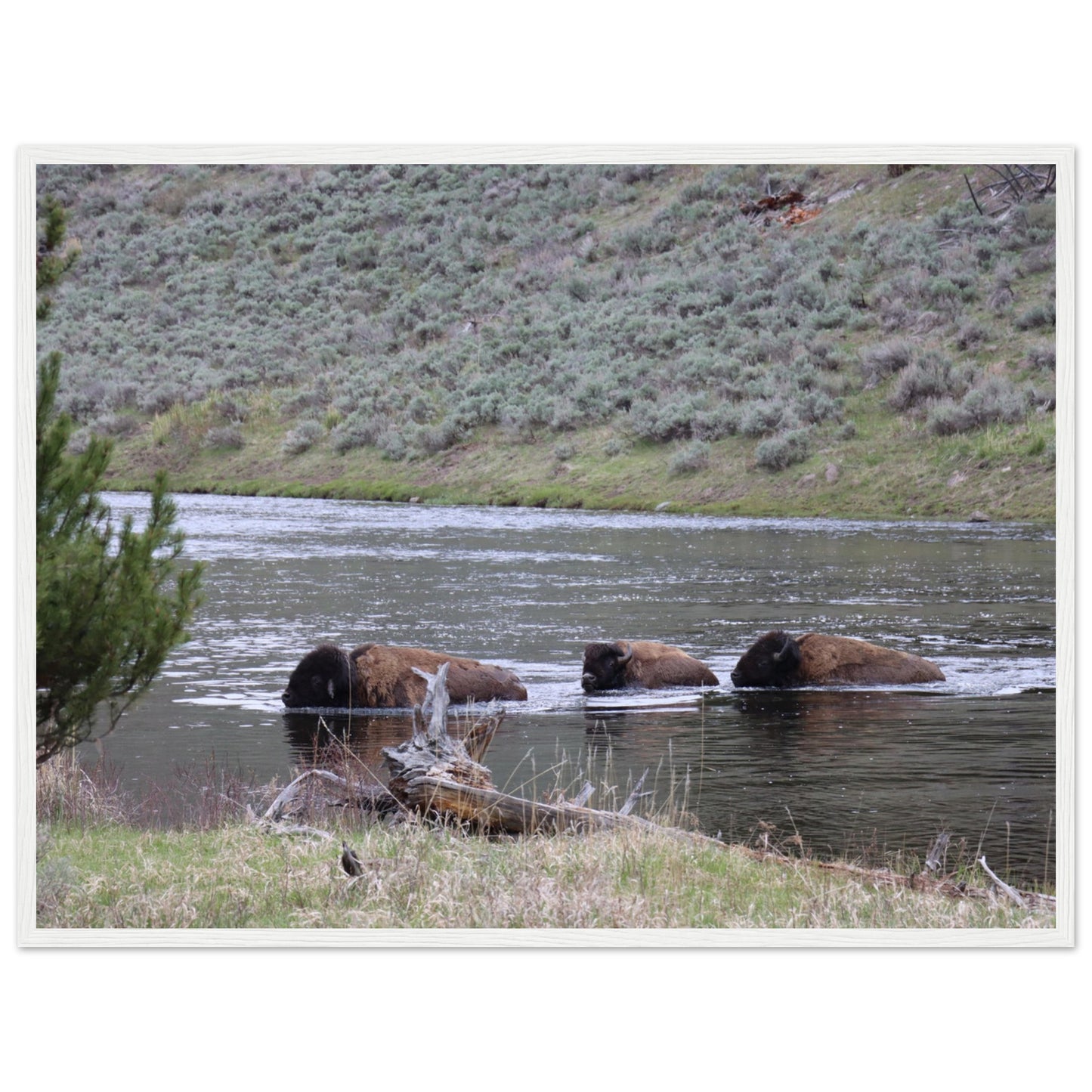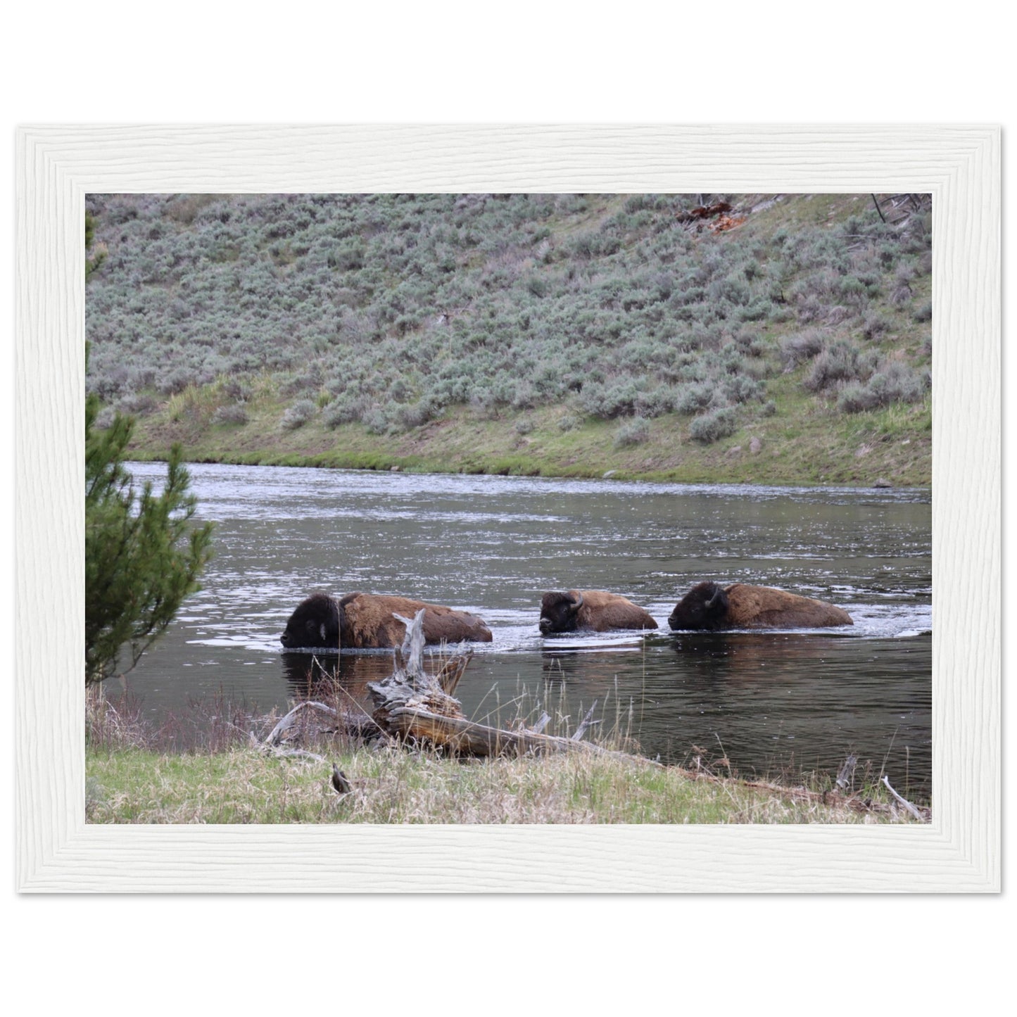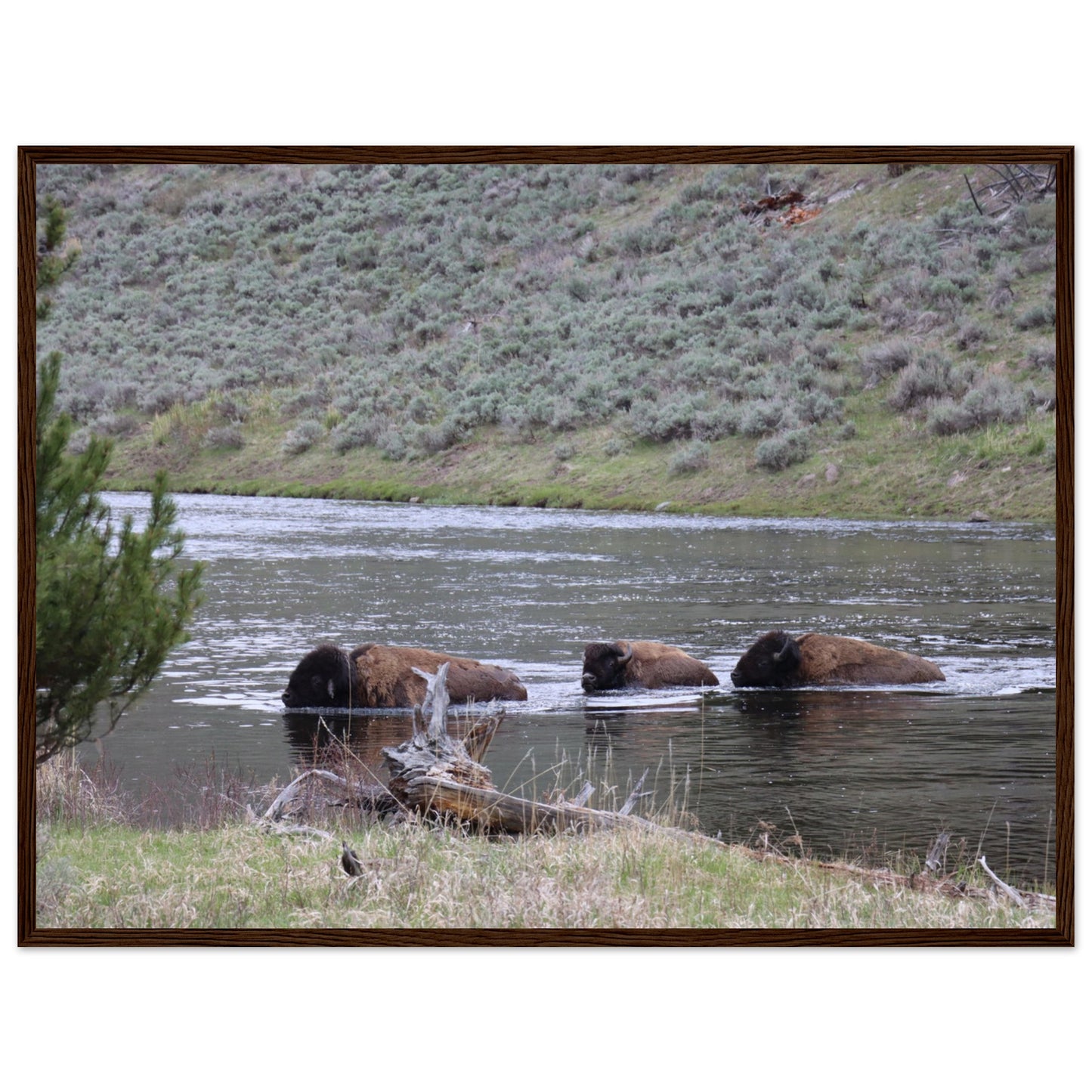 Bisons crossing the river - Premium Matte Paper Wooden Framed Poster
