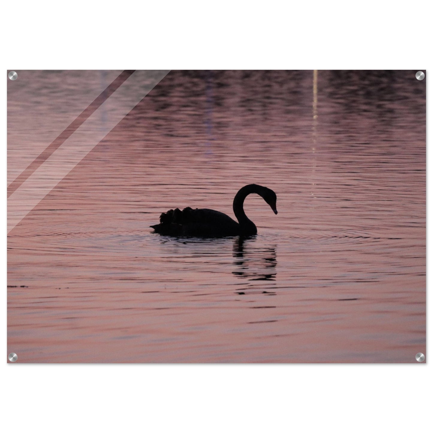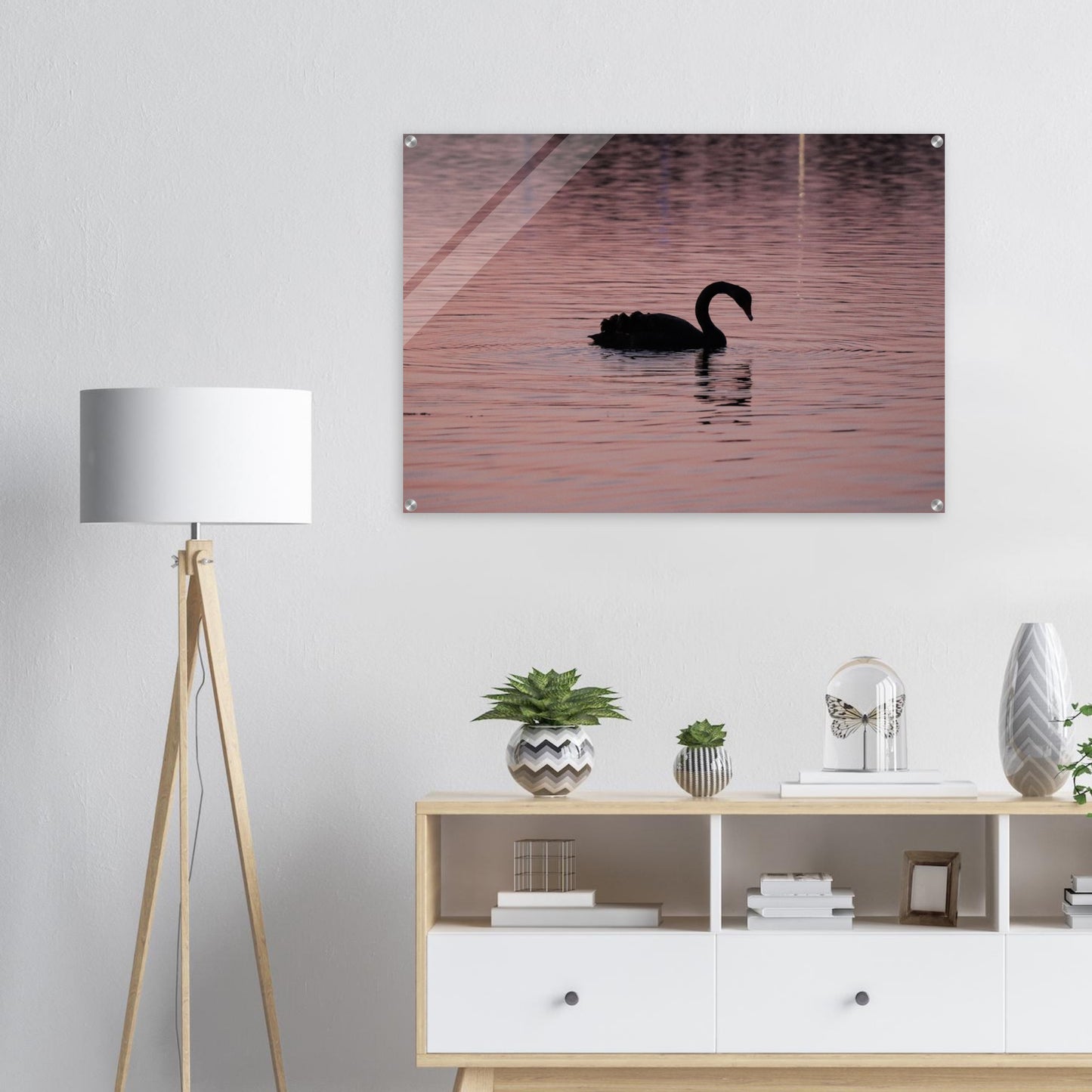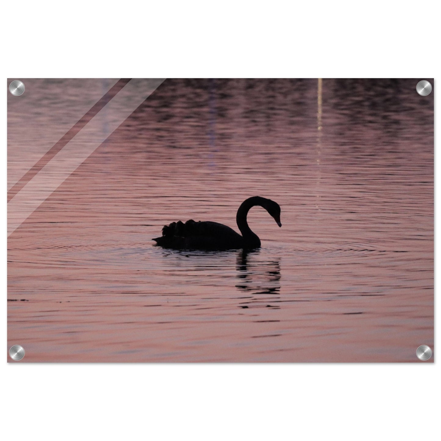 Black swan at dusk - Acrylic prints (lightweight, shatterproof, and temperature-resistant, making them easy to mount on your walls.)