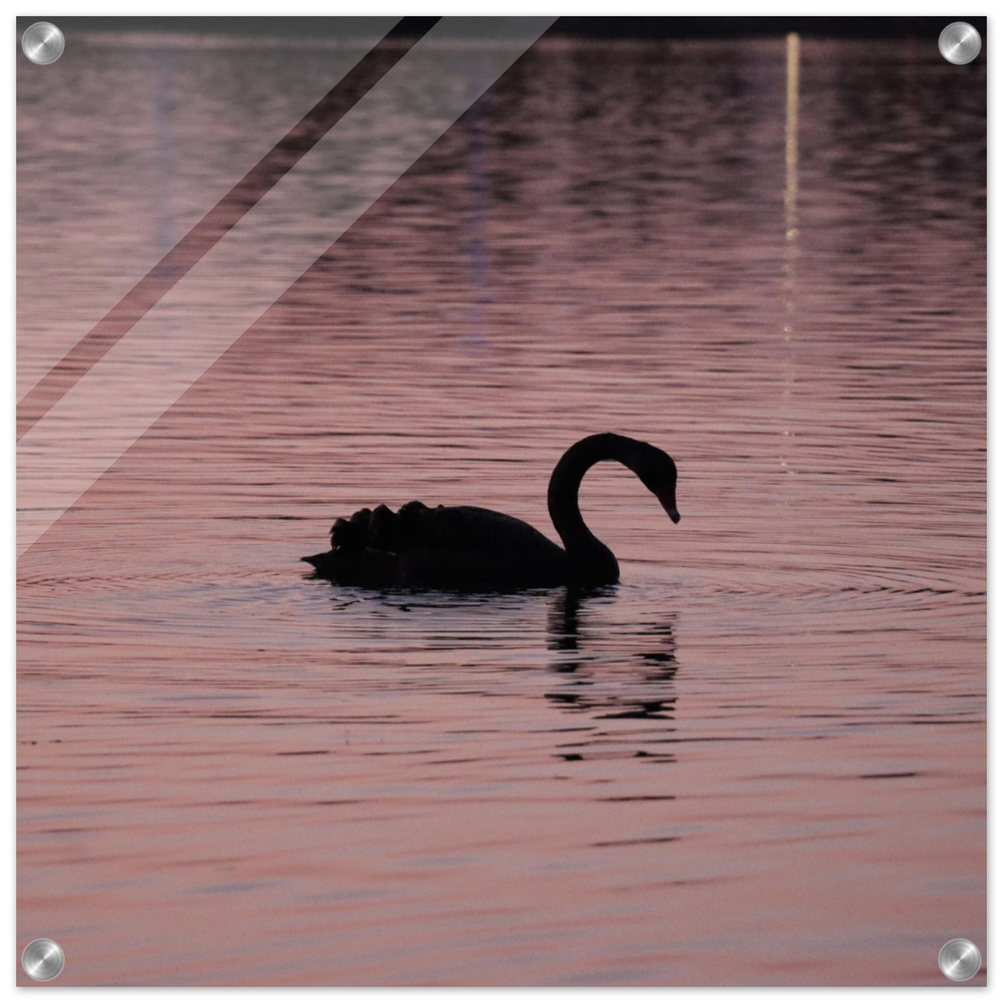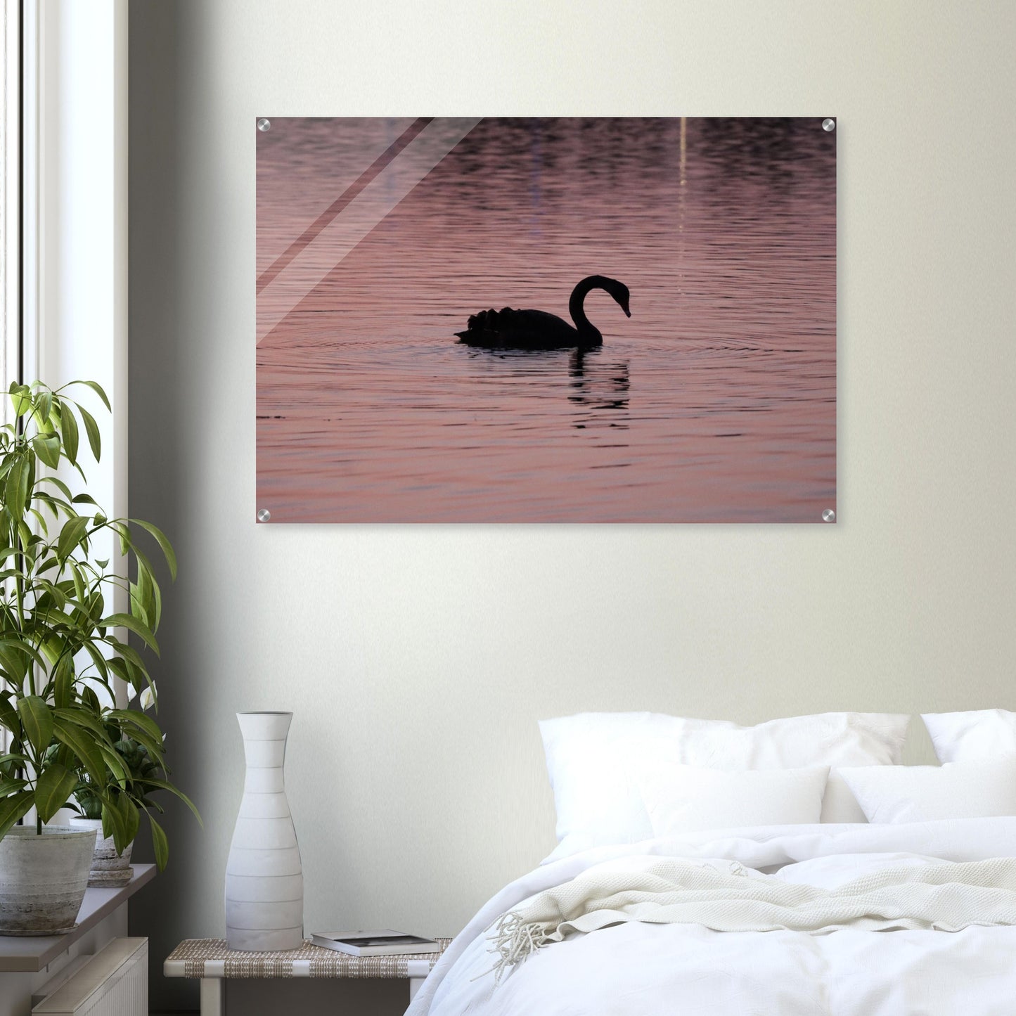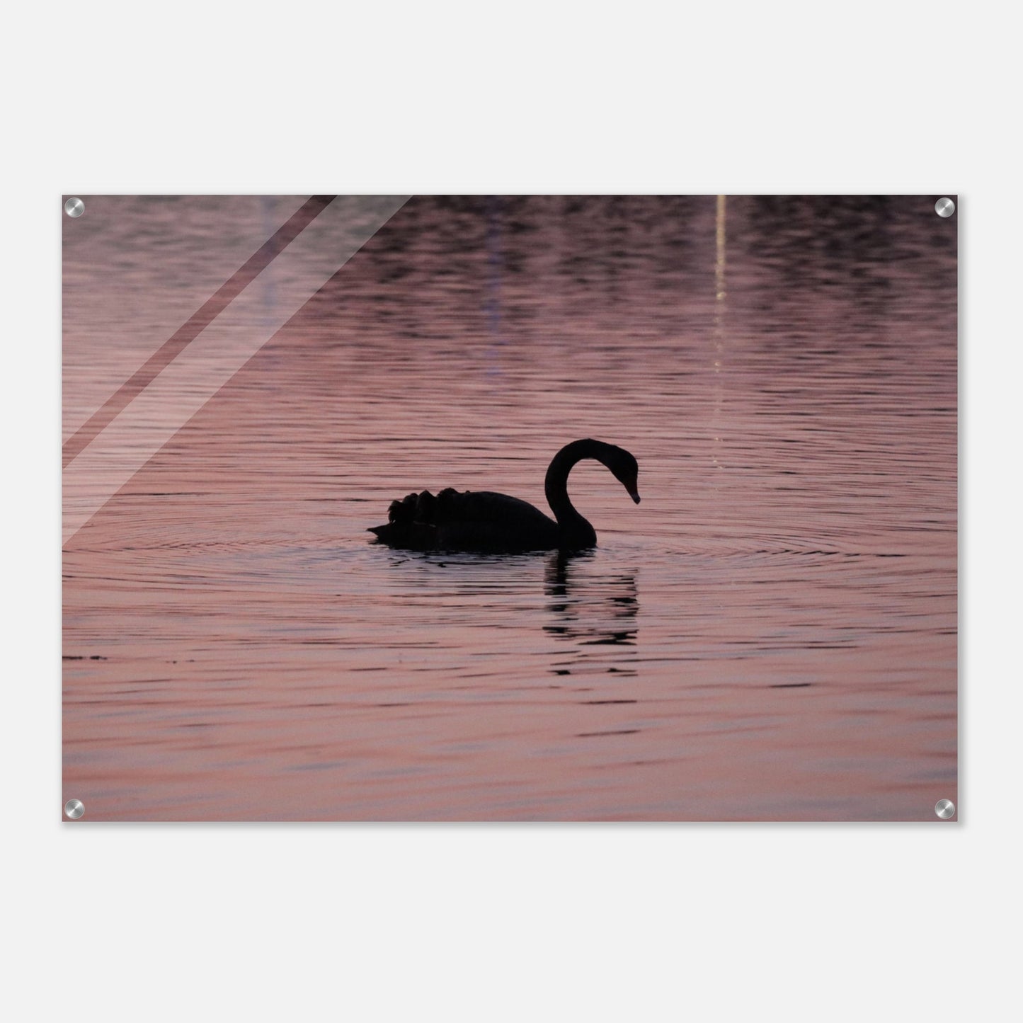 Black swan at dusk - Acrylic prints (lightweight, shatterproof, and temperature-resistant, making them easy to mount on your walls.)