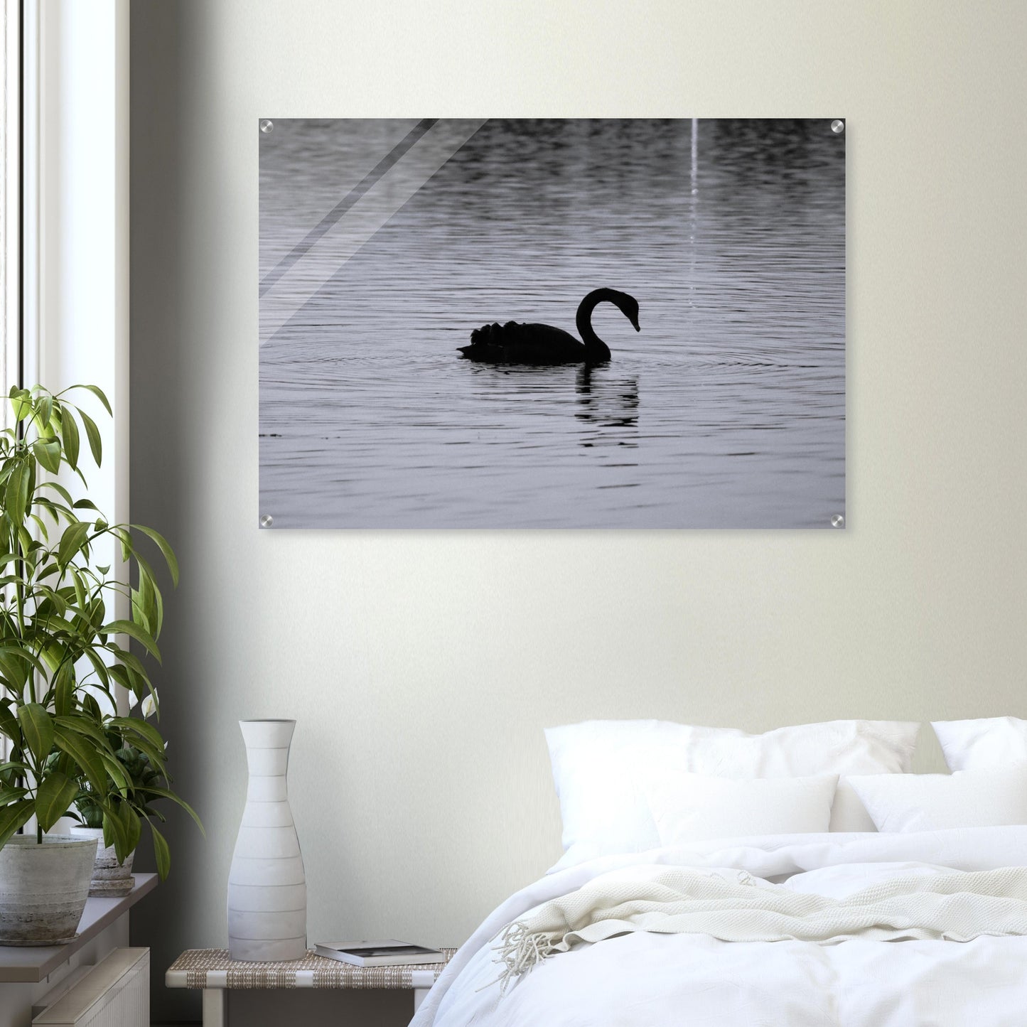 Black swan at dusk (B&W) - Acrylic Print