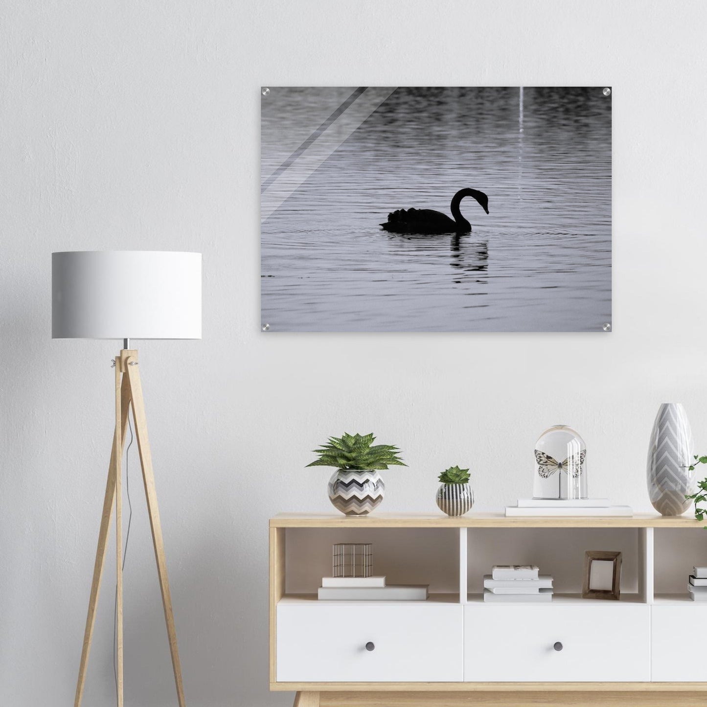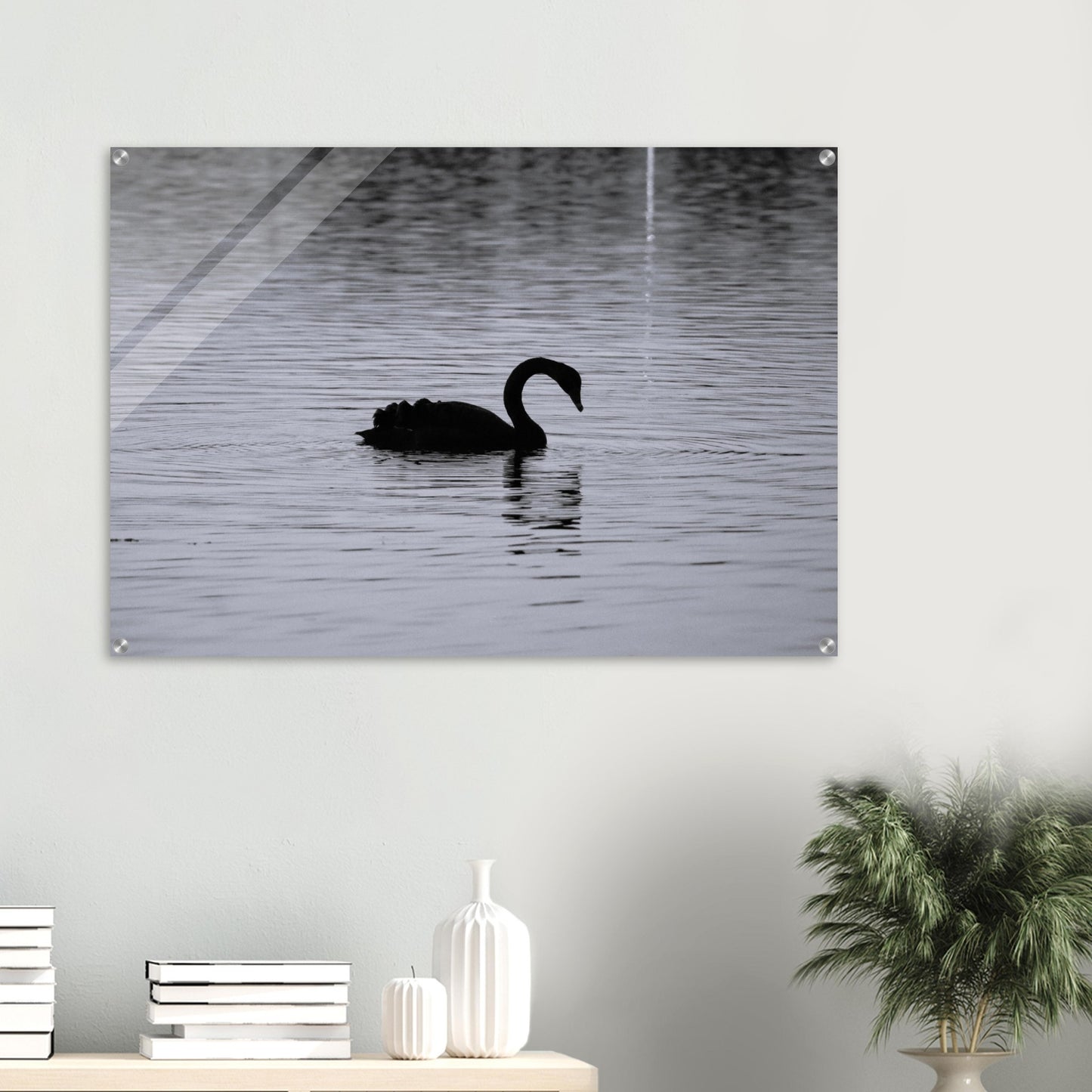 Black swan at dusk - Black & White - Acrylic prints (lightweight, shatterproof, and temperature-resistant, making them easy to mount on your walls.)