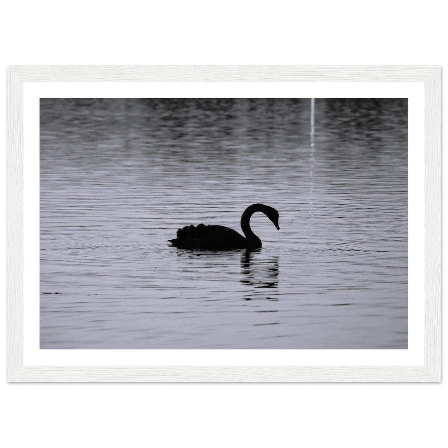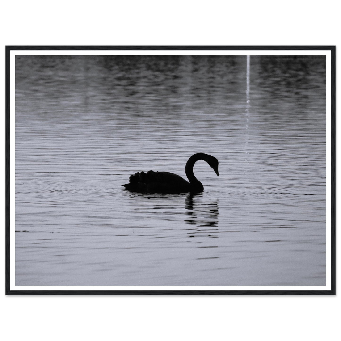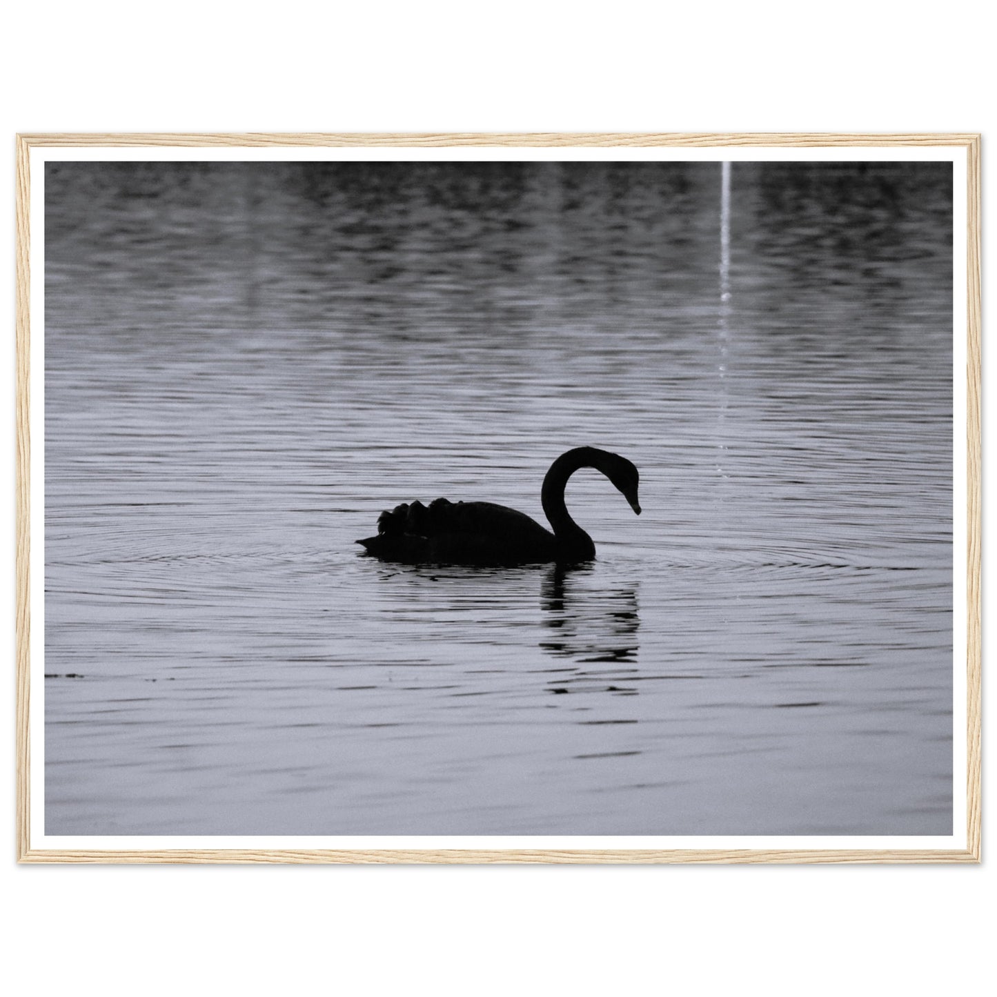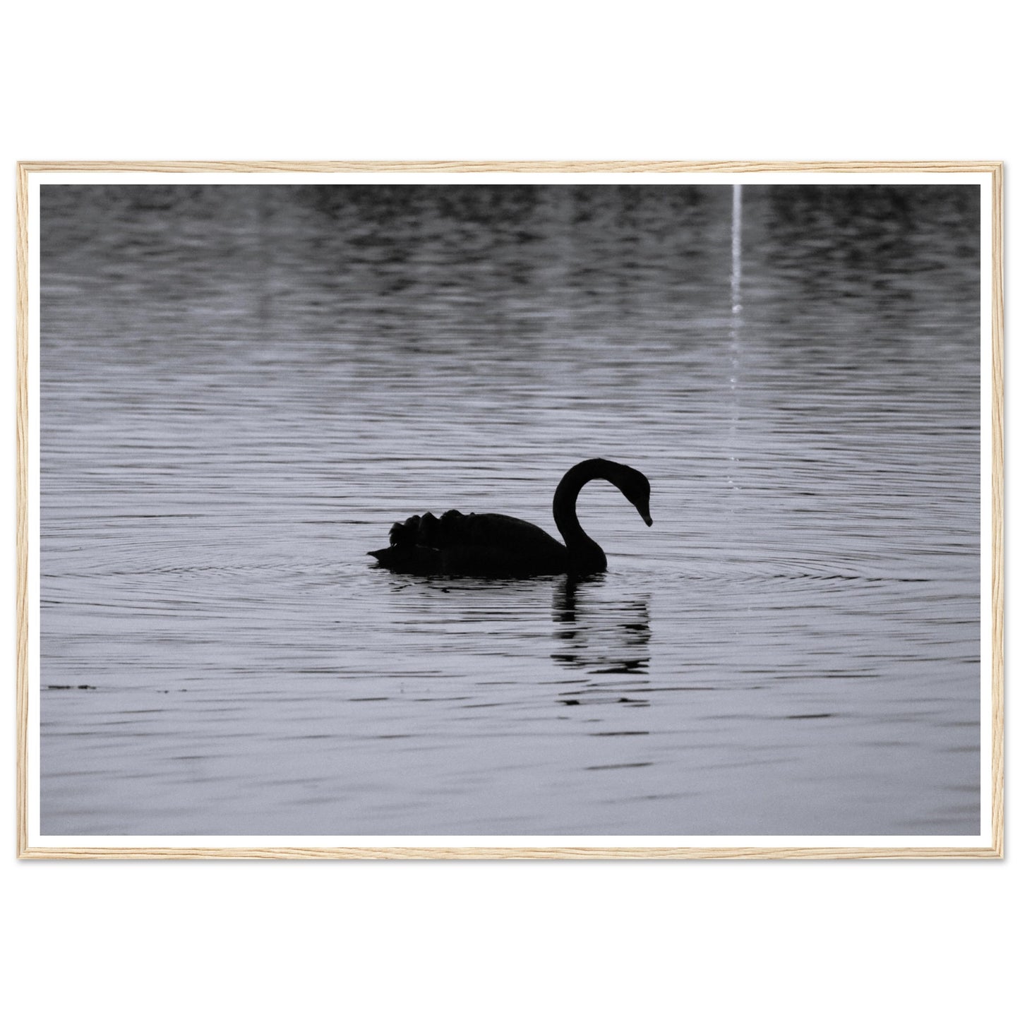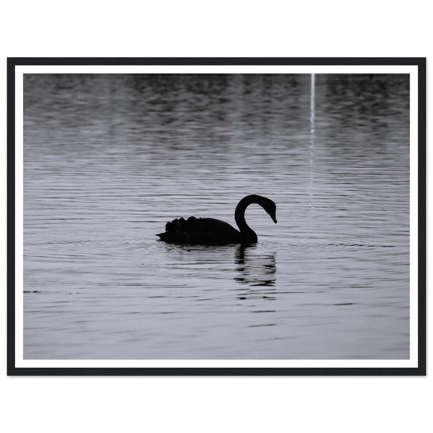 Black swan at dusk - Black & White - Premium matte paper poster with wooden frame
