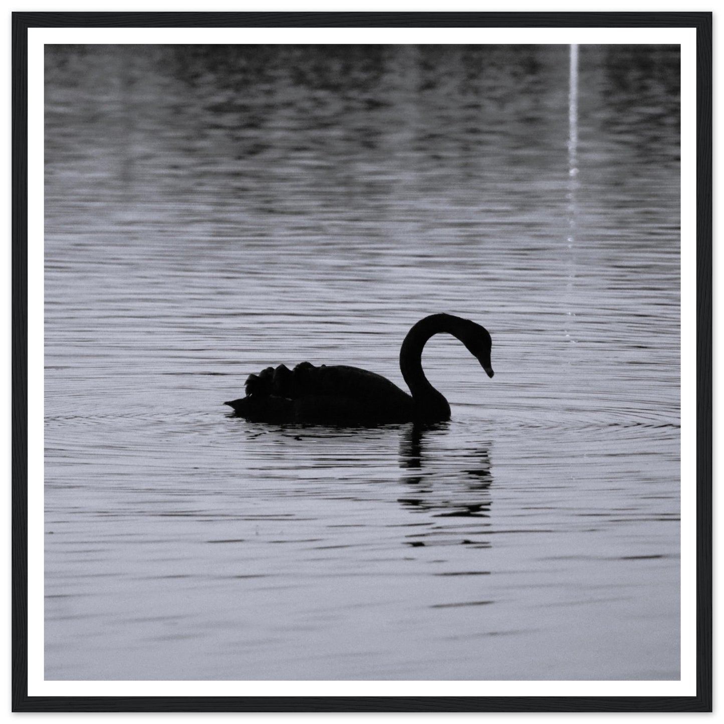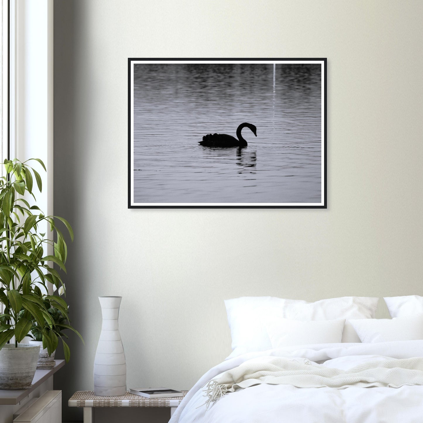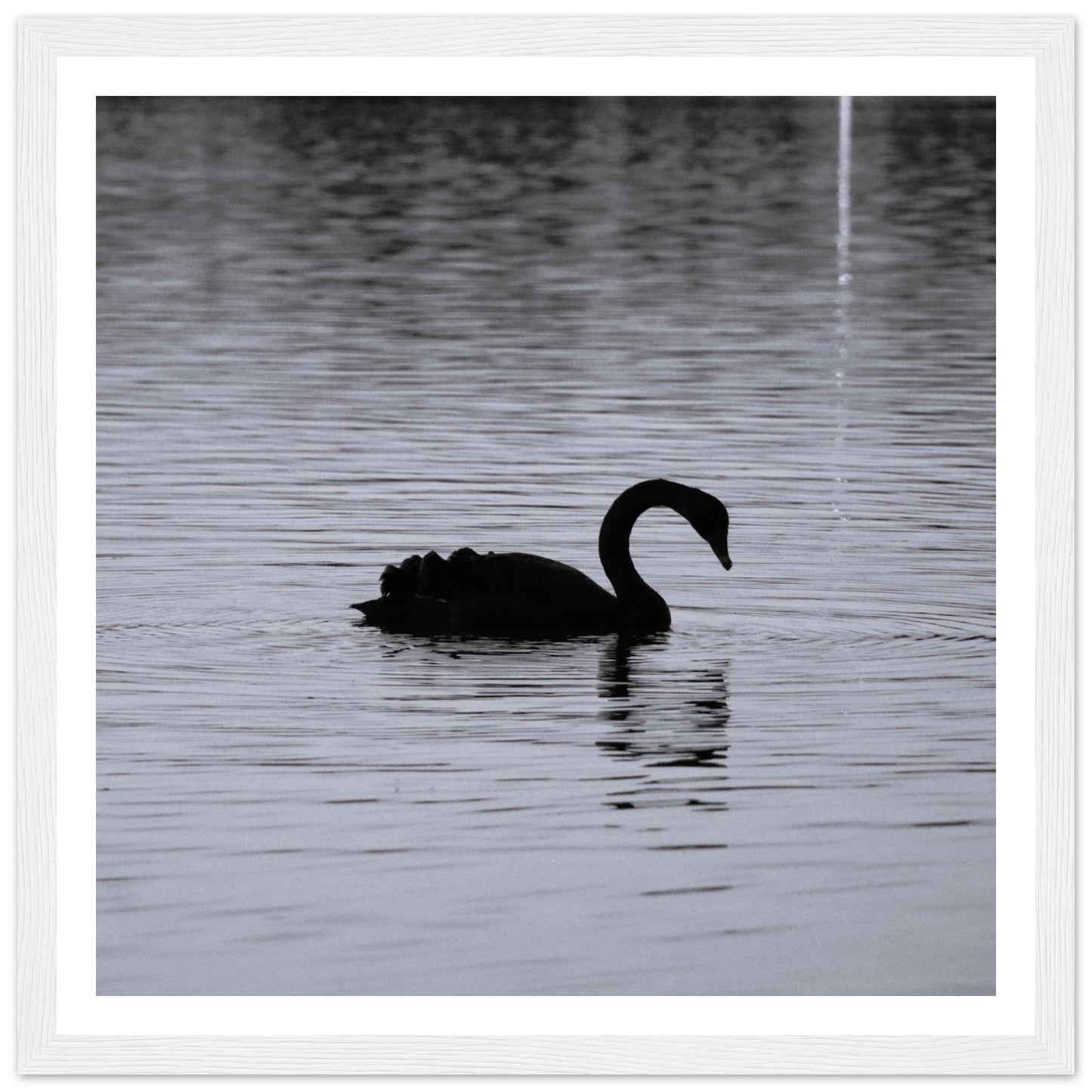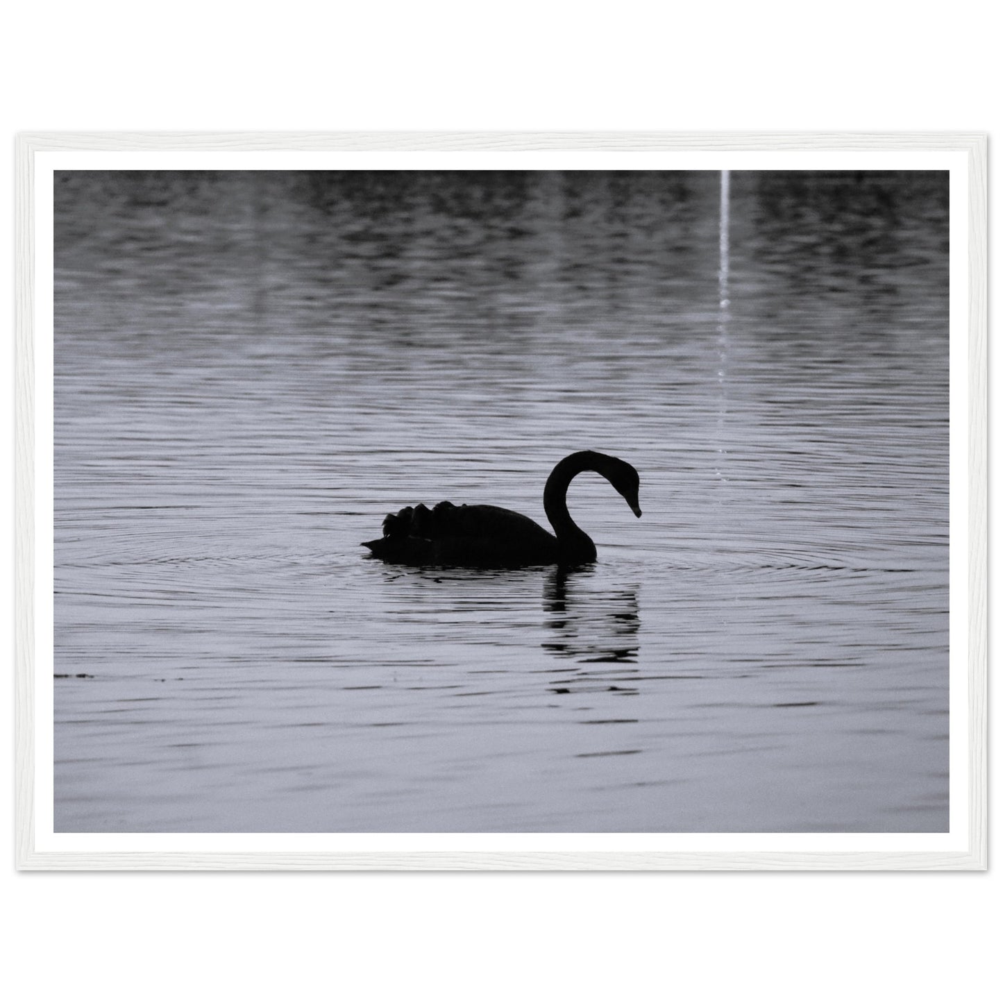 Black swan at dusk - Black & White - Premium matte paper poster with wooden frame