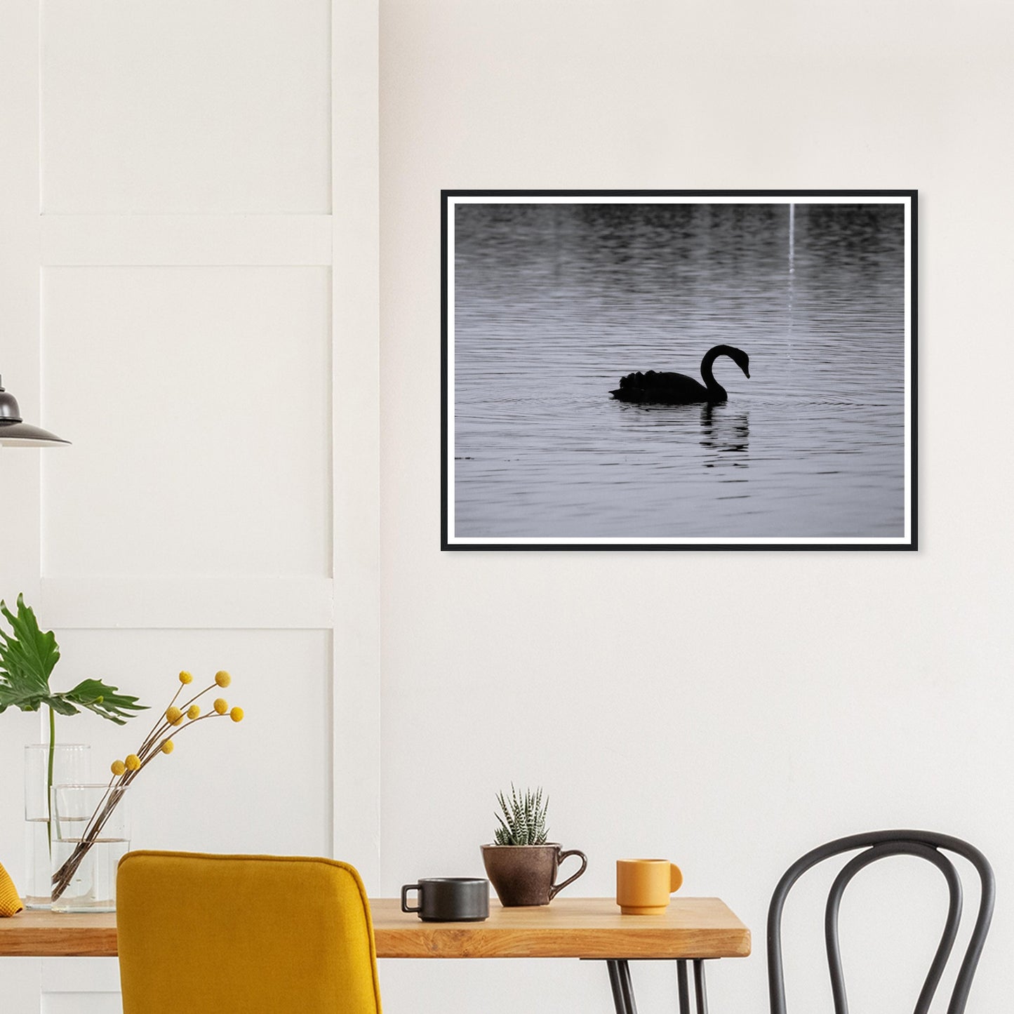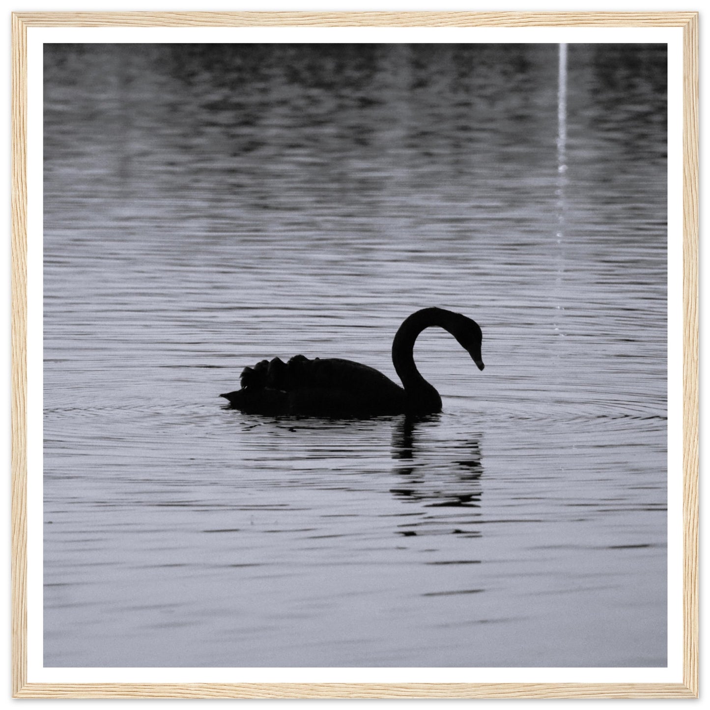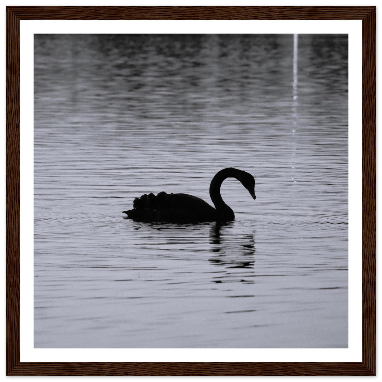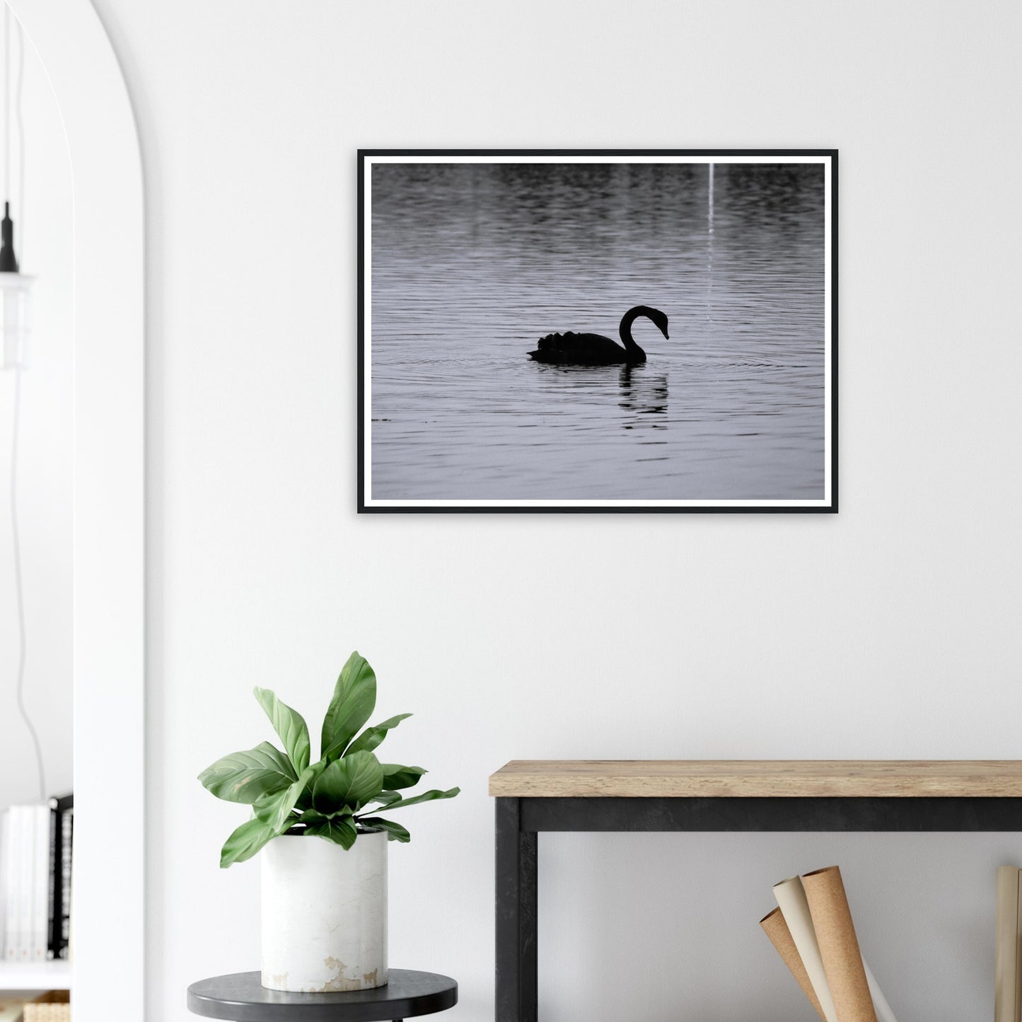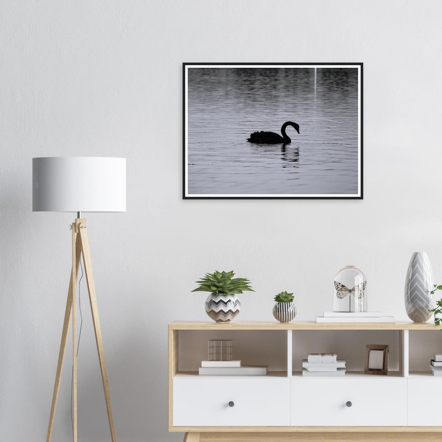 Black swan at dusk - Black & White - Premium matte paper poster with wooden frame