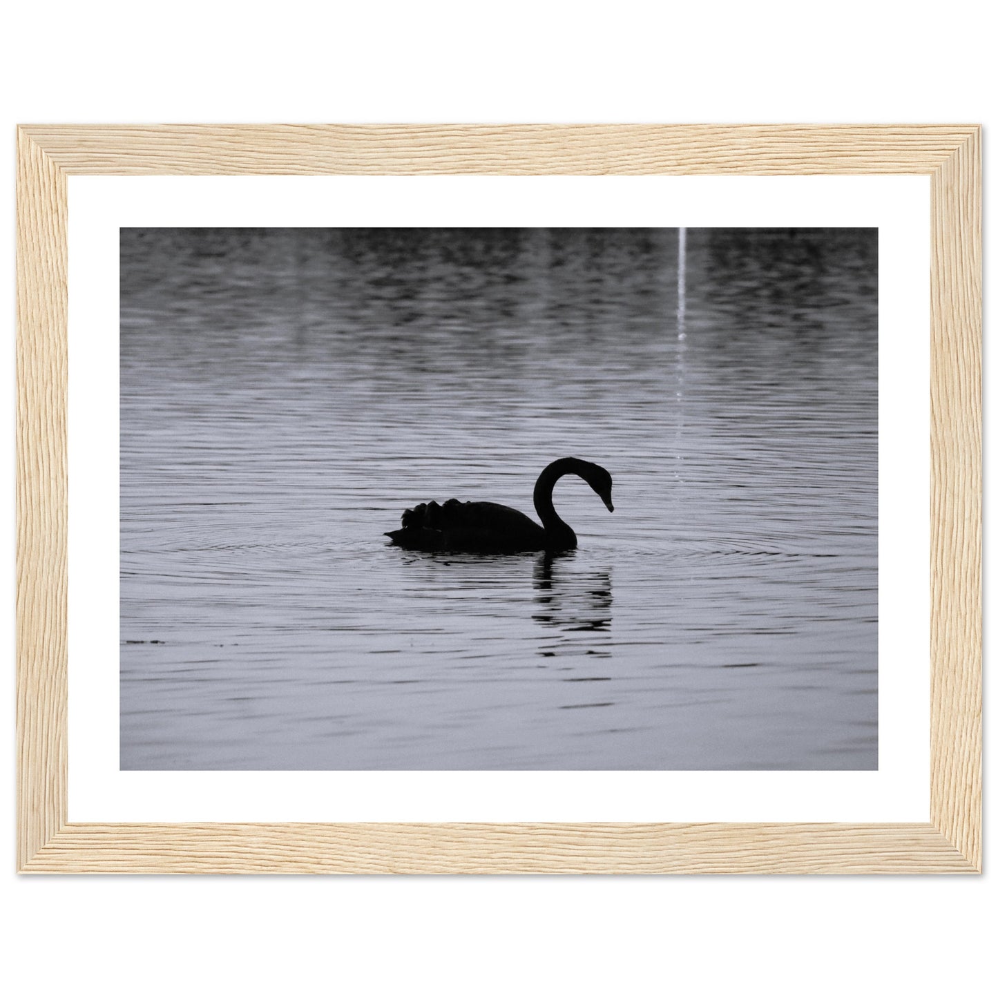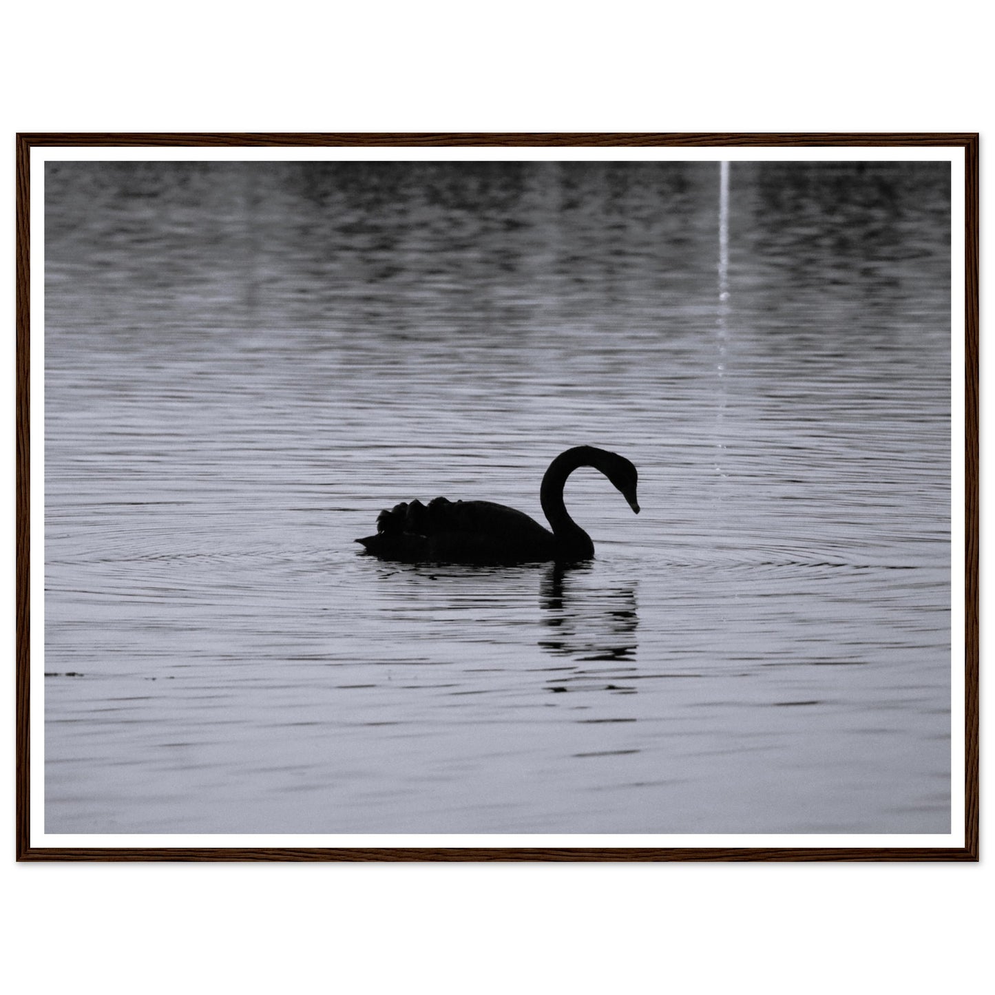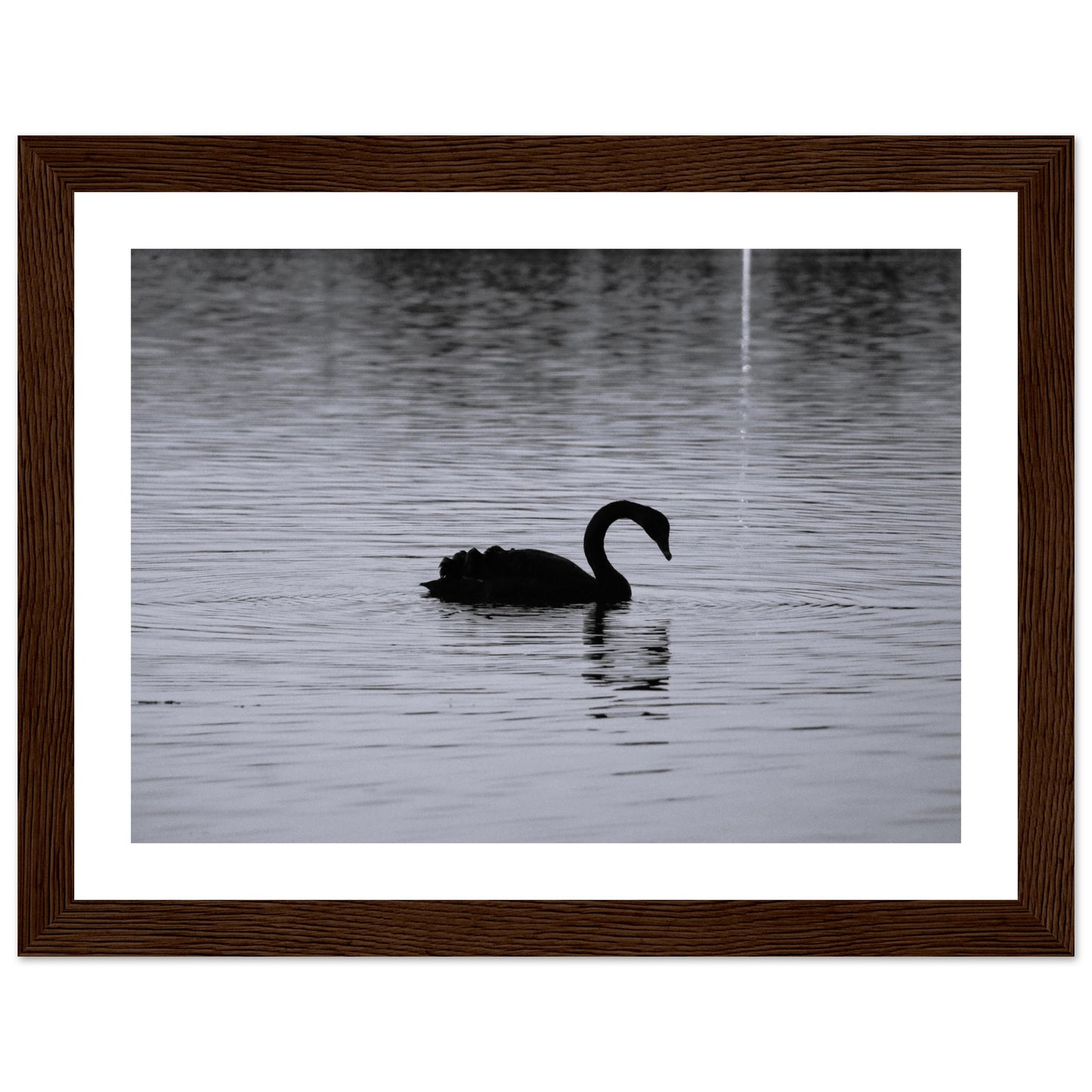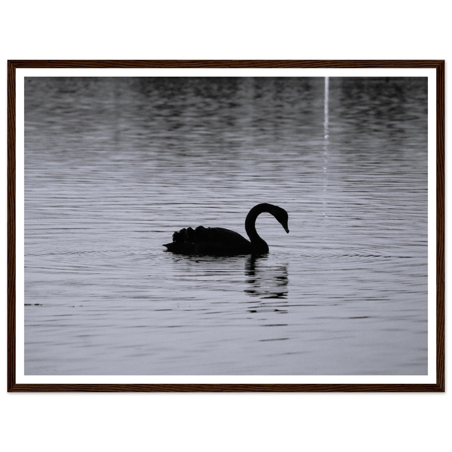 Black swan at dusk (B&W) - Premium Matte Paper Wooden Framed Poster