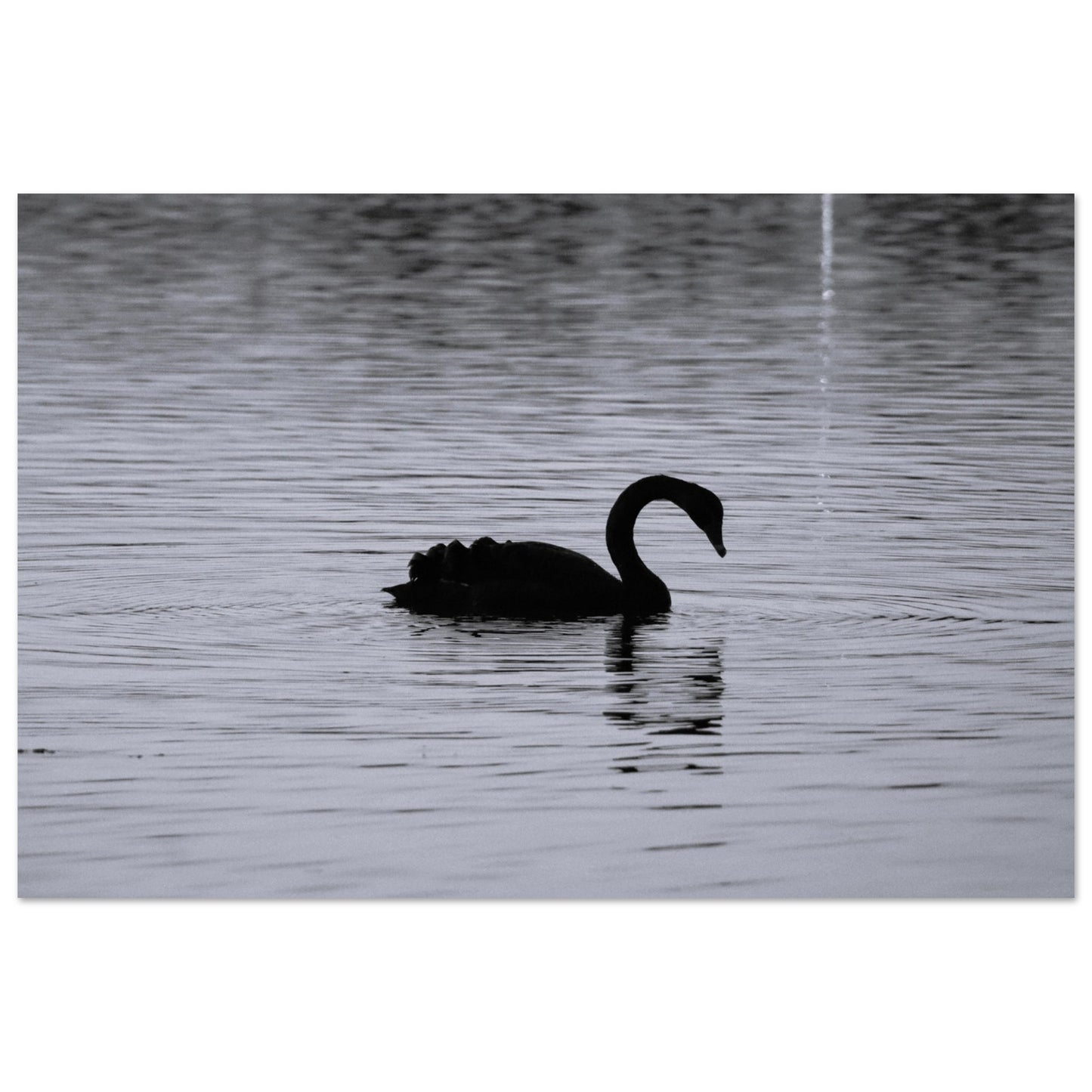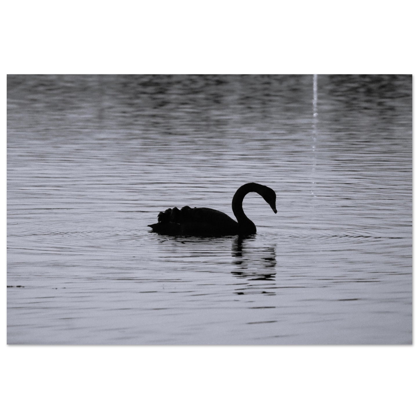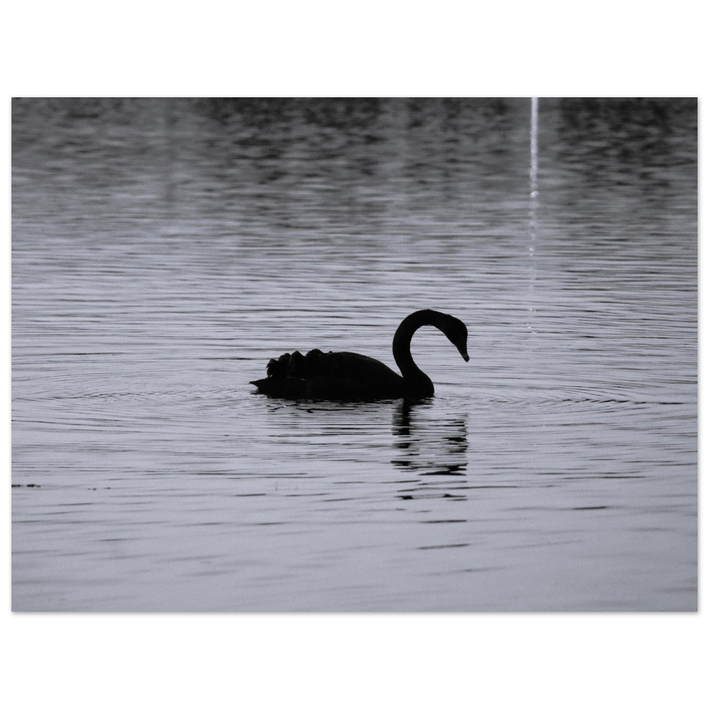 Black swan on Albert Park Lake - Black & White - Lightweight foam board.