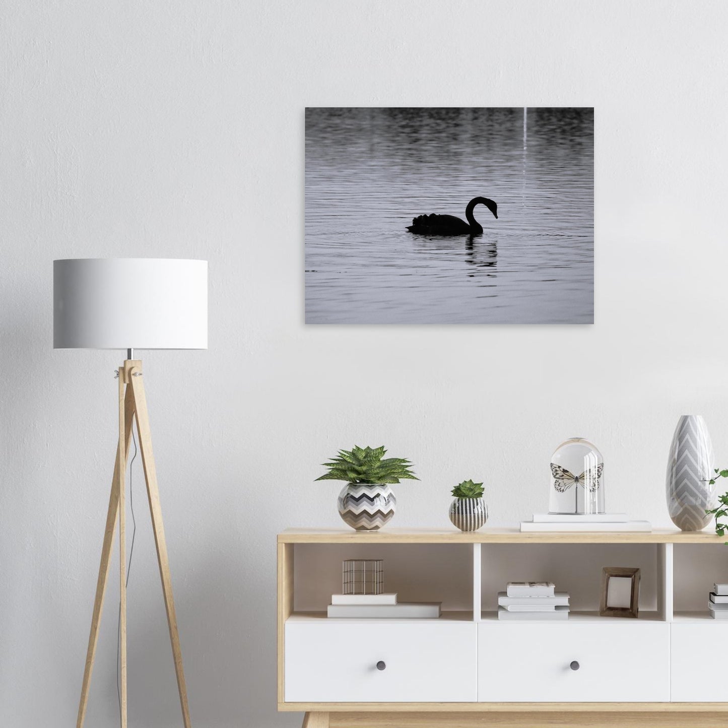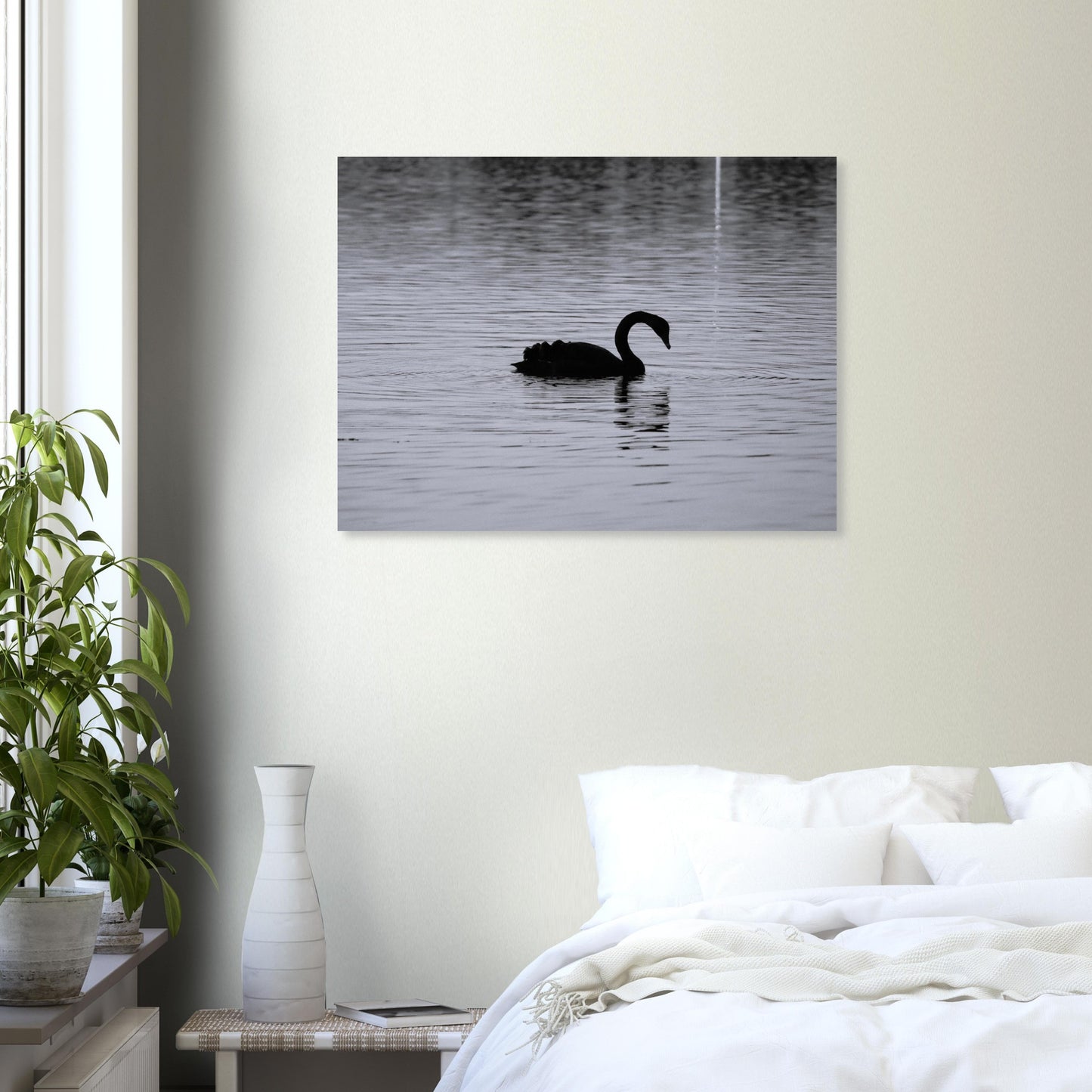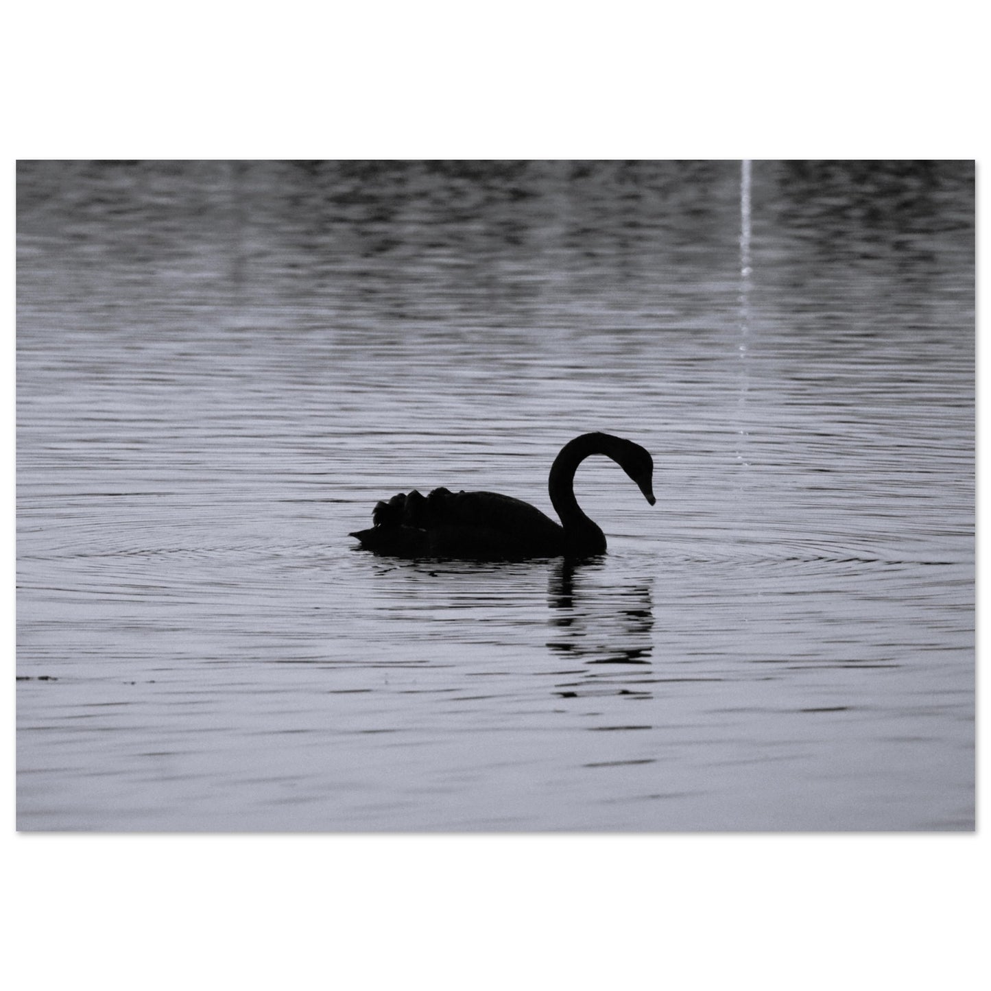 Black swan on Albert Park Lake - Black & White - Lightweight foam board.