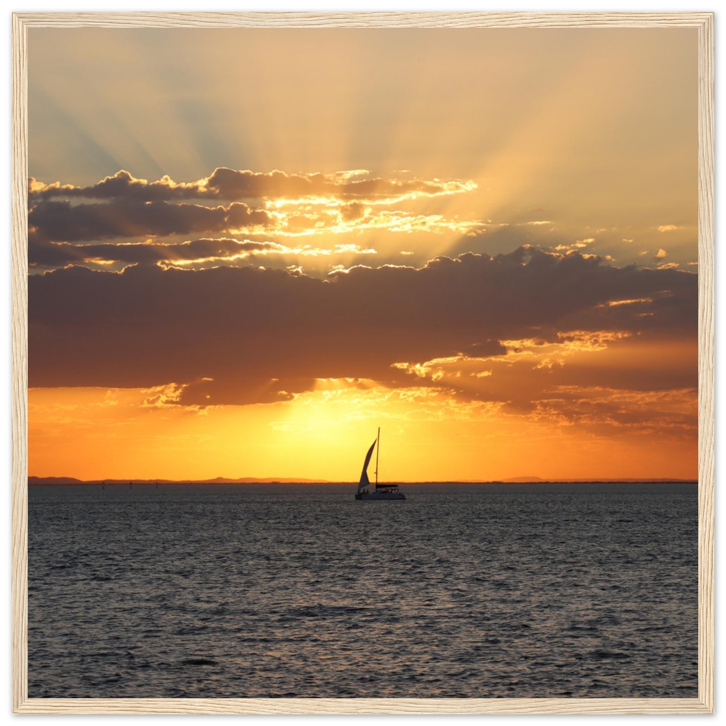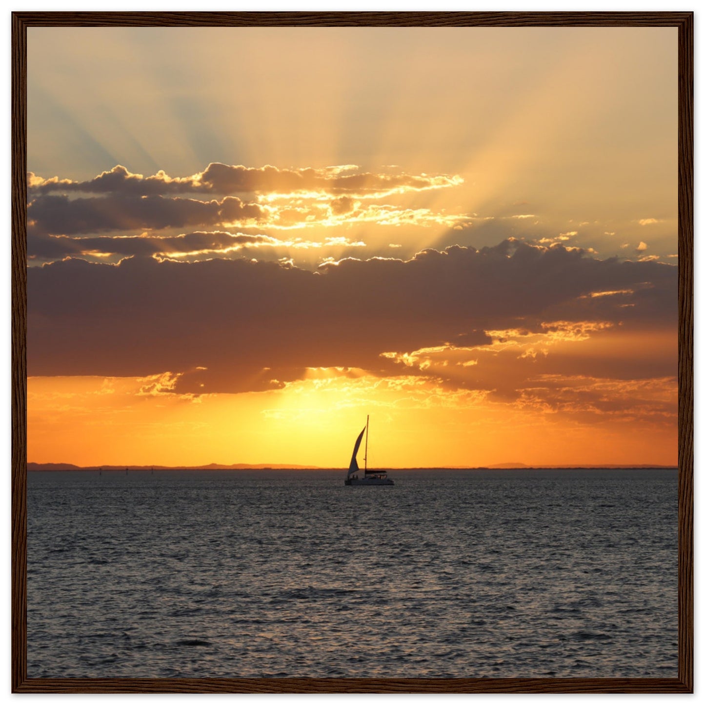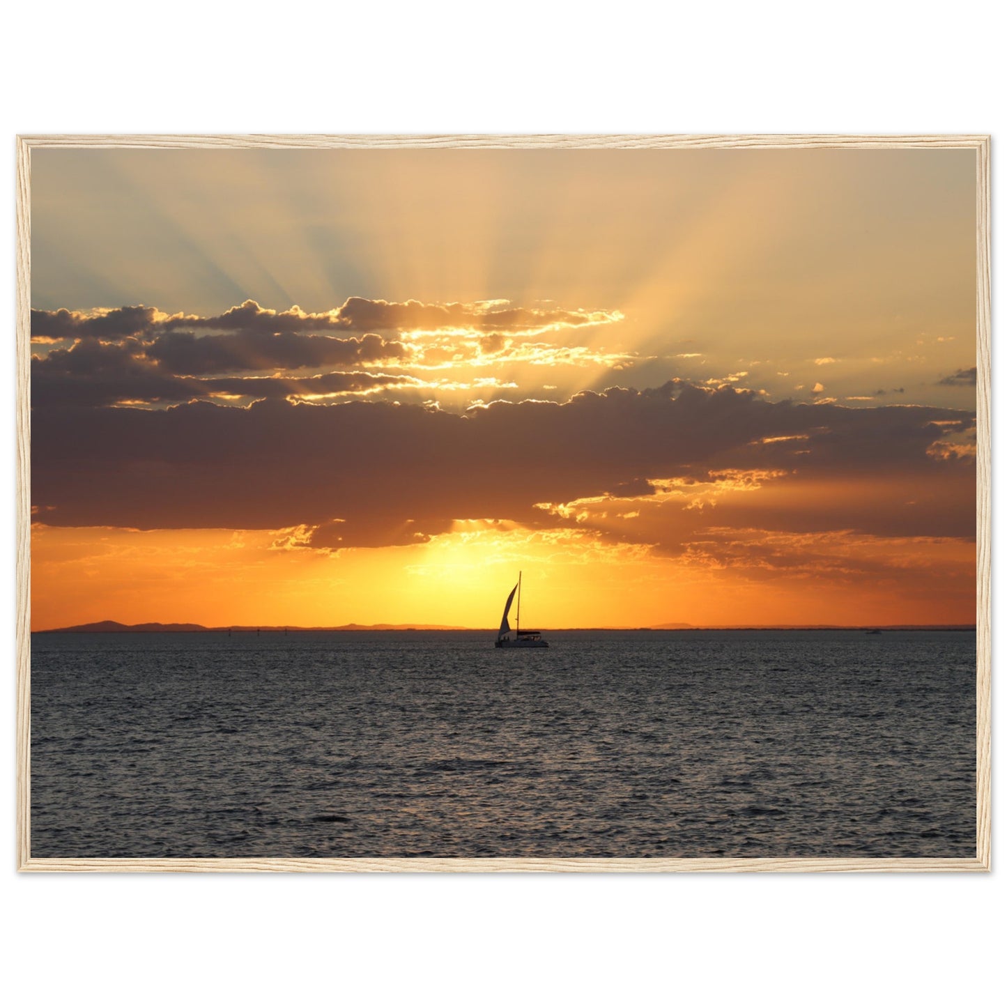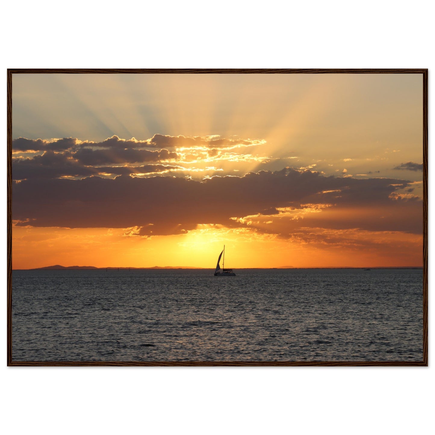 Boat sailing away into the sunset - Premium Matte Paper Wooden Framed Poster