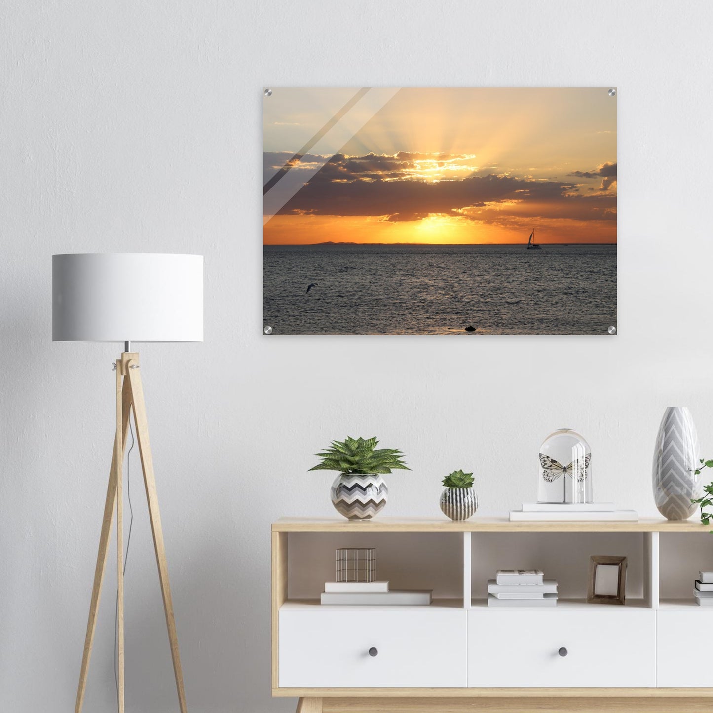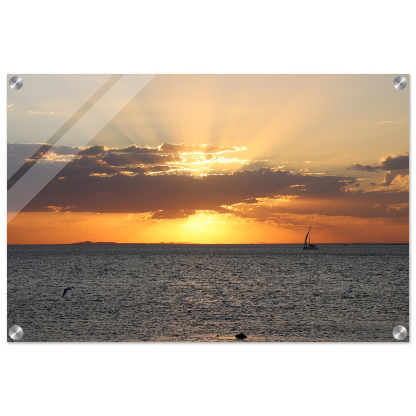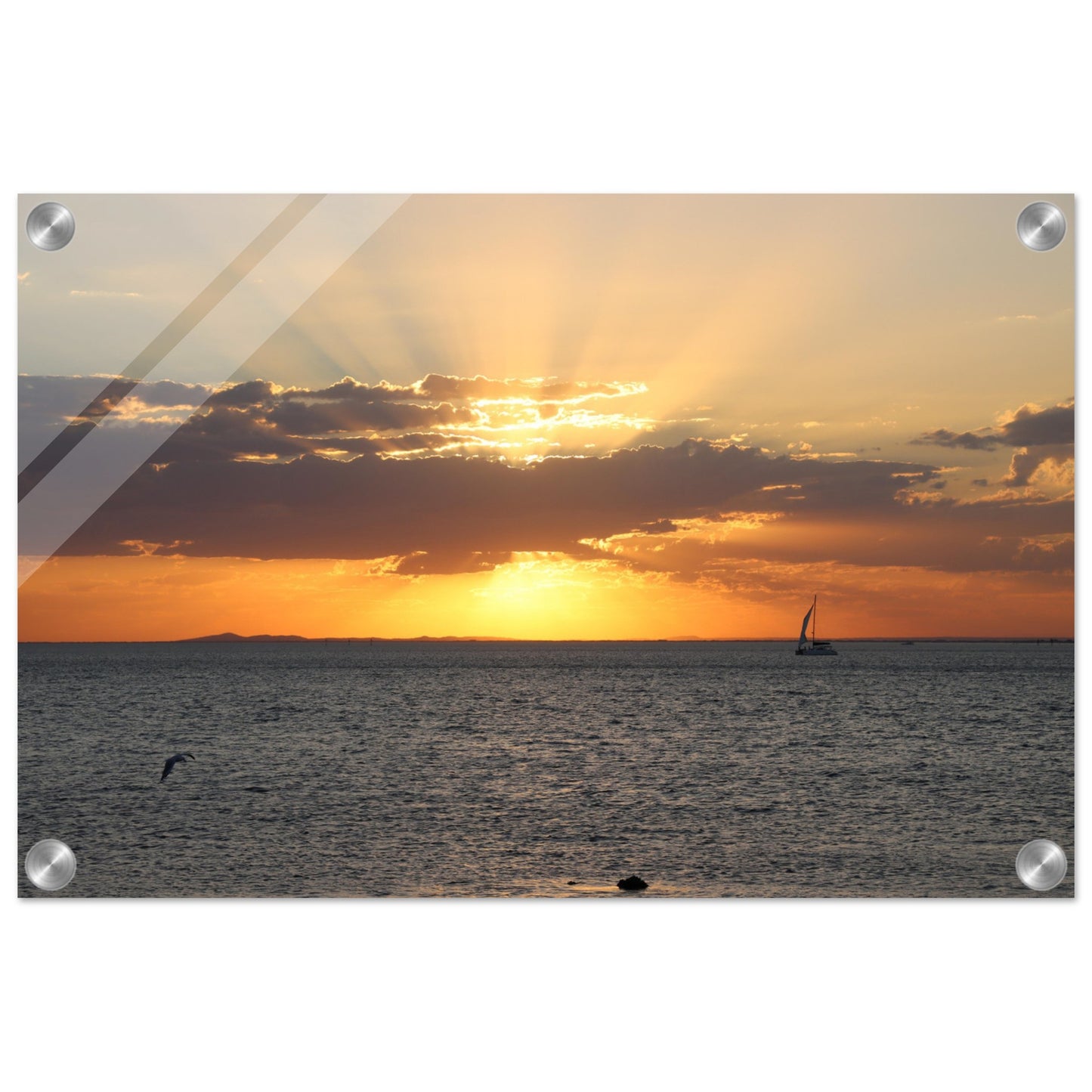 Boat sailing into the sunset - Acrylic prints (lightweight, shatterproof, and temperature-resistant, making them easy to mount on your walls.)