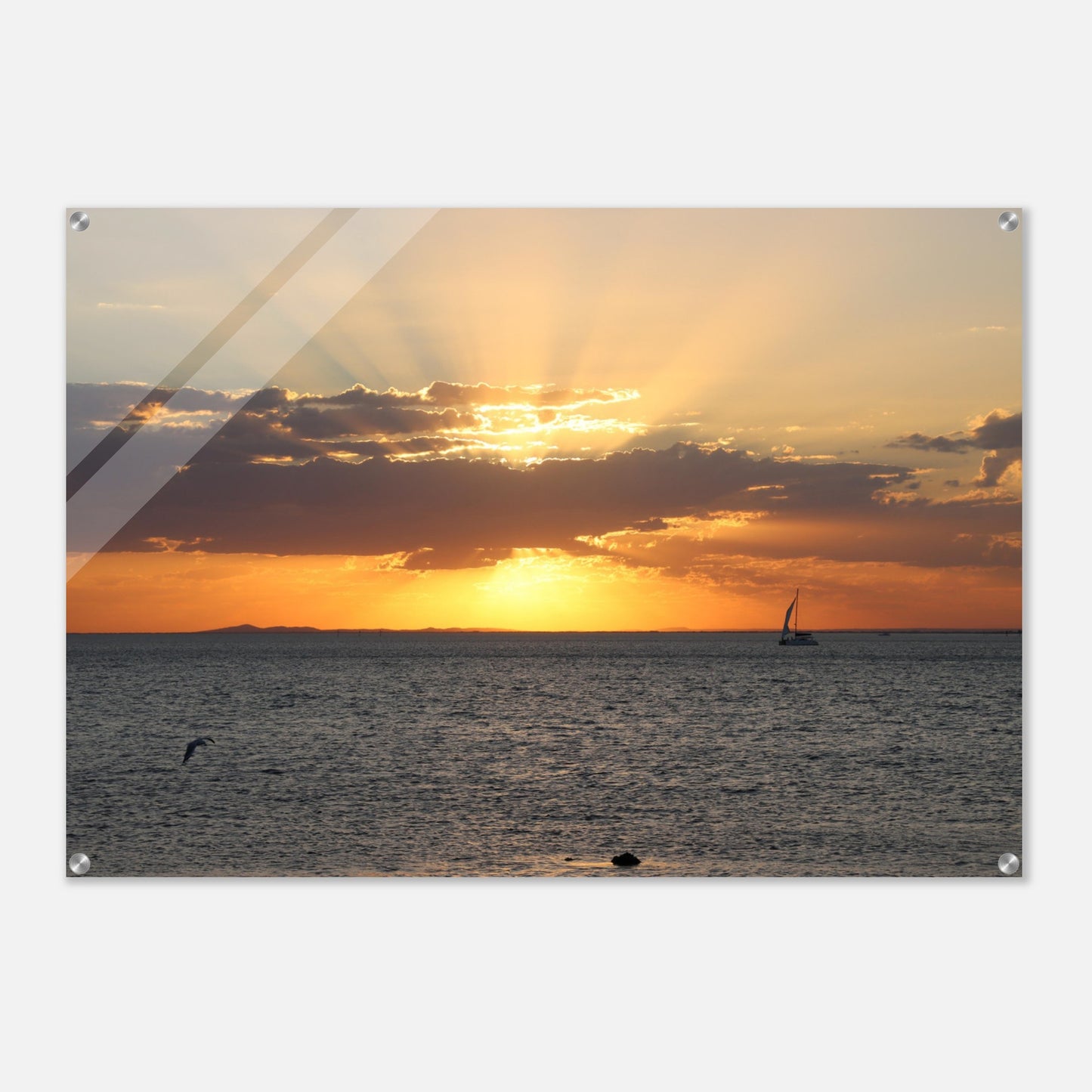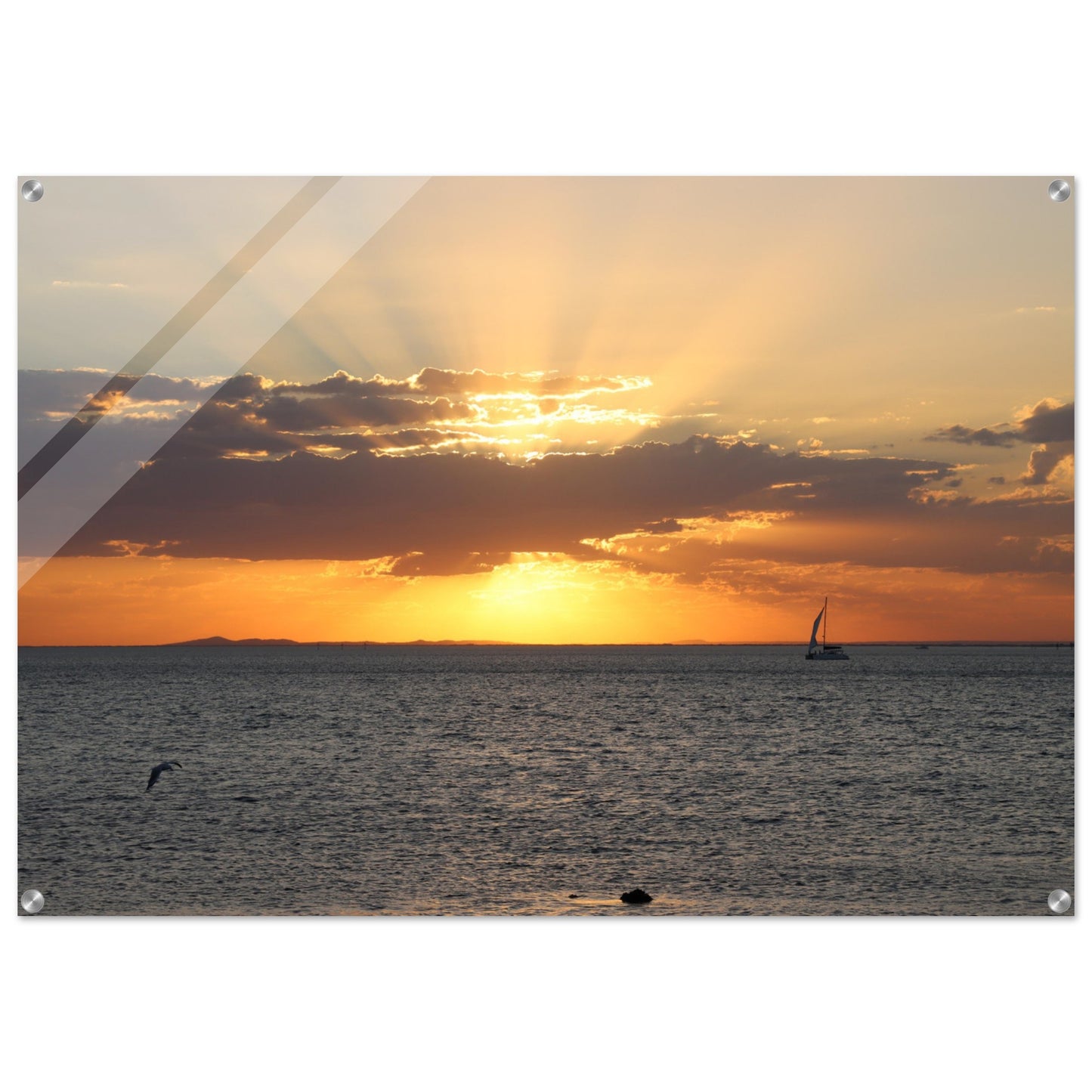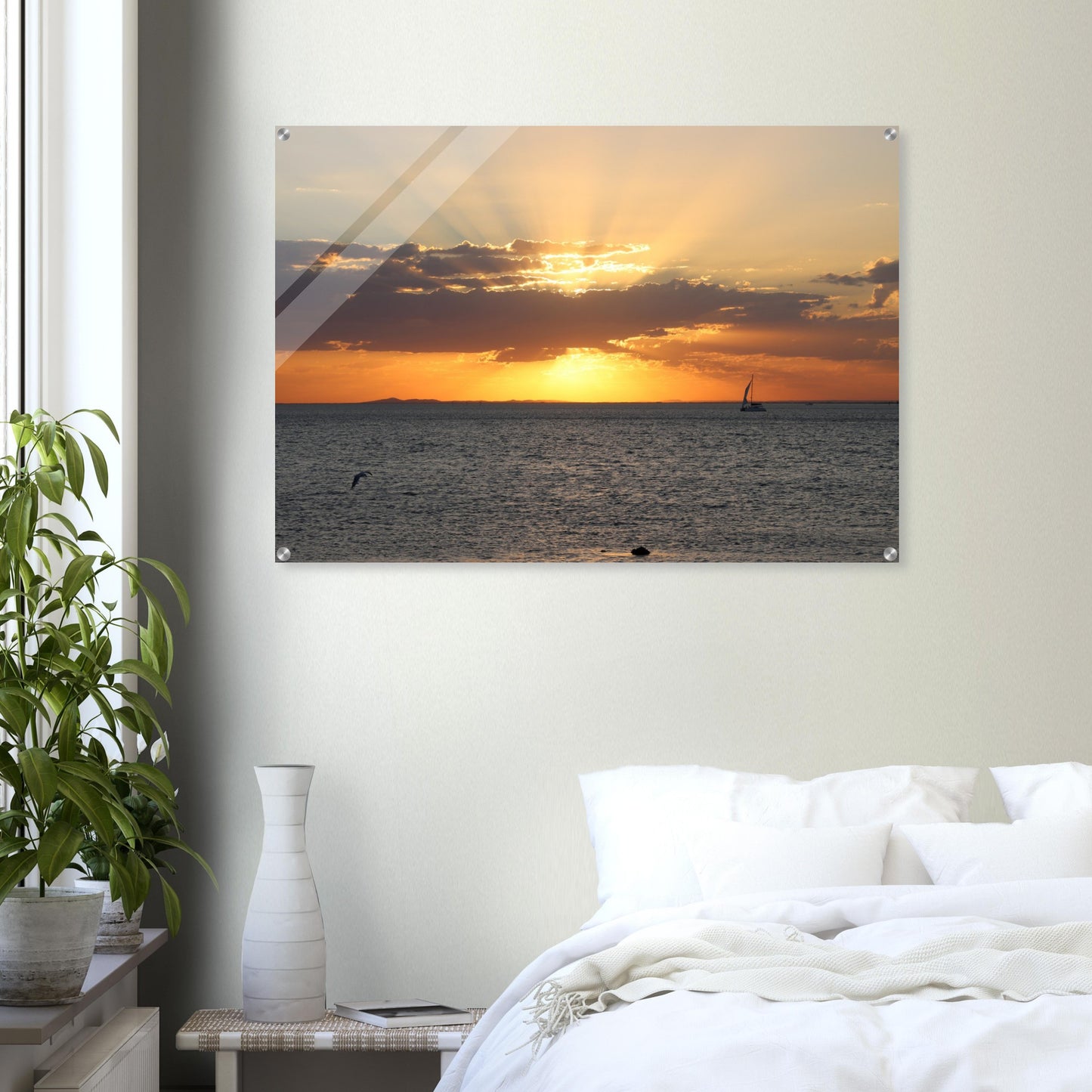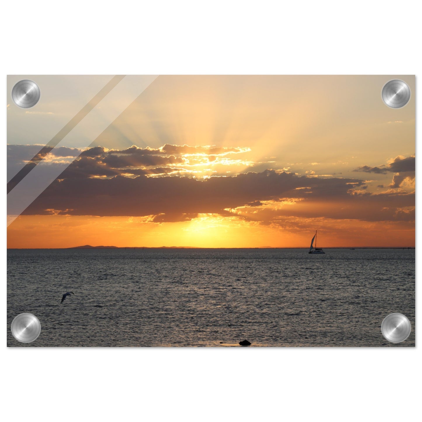 Boat sailing into the sunset - Acrylic prints (lightweight, shatterproof, and temperature-resistant, making them easy to mount on your walls.)
