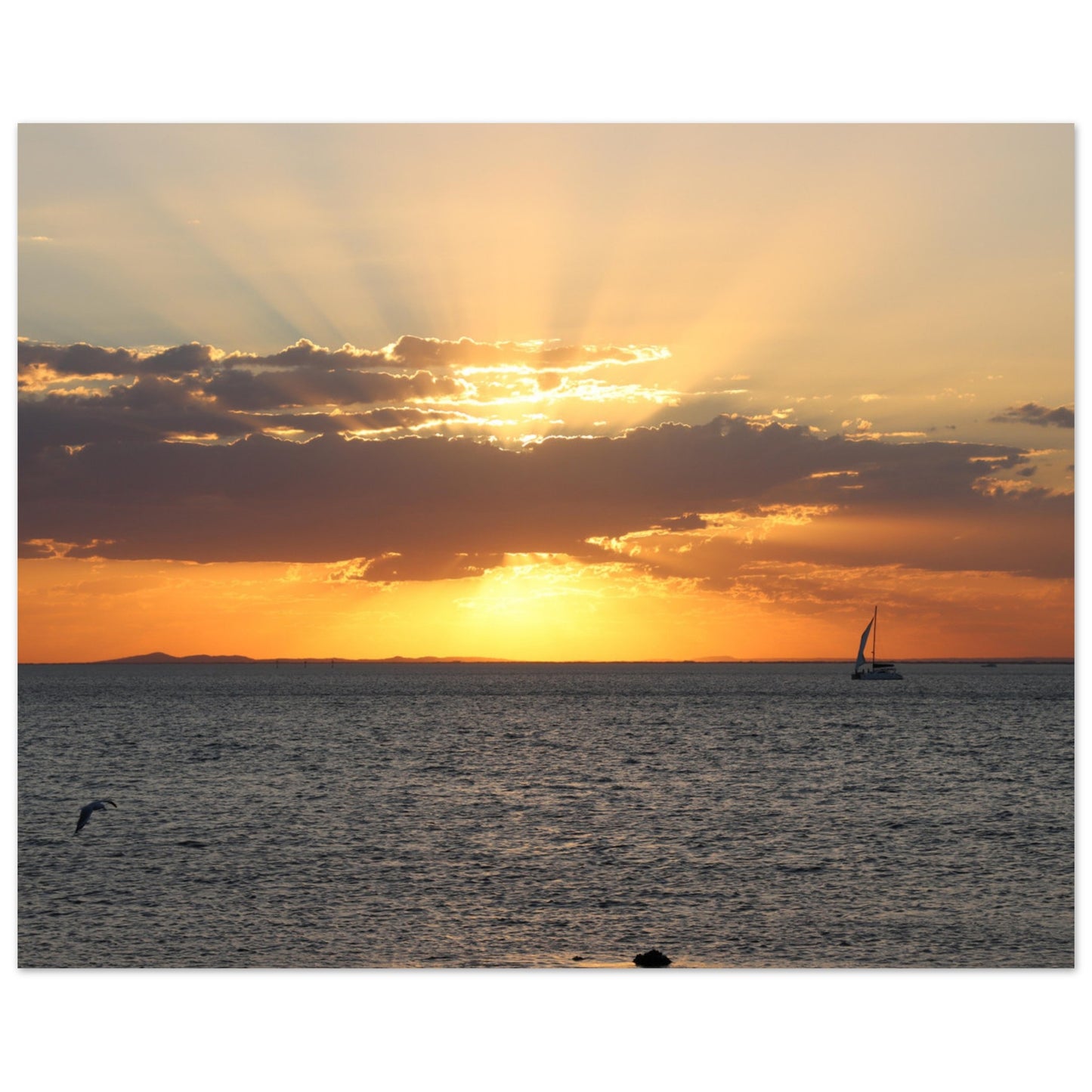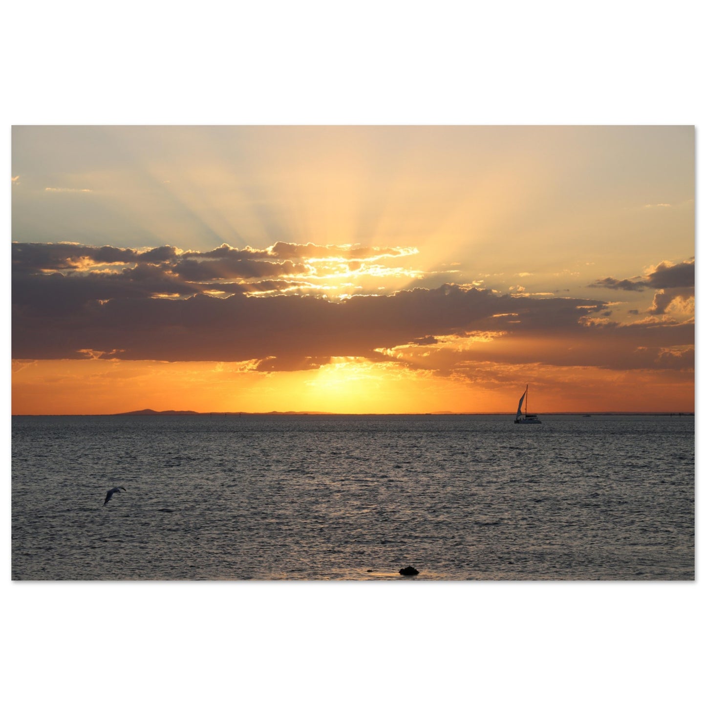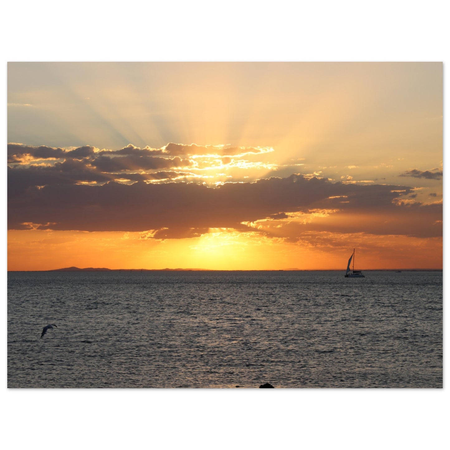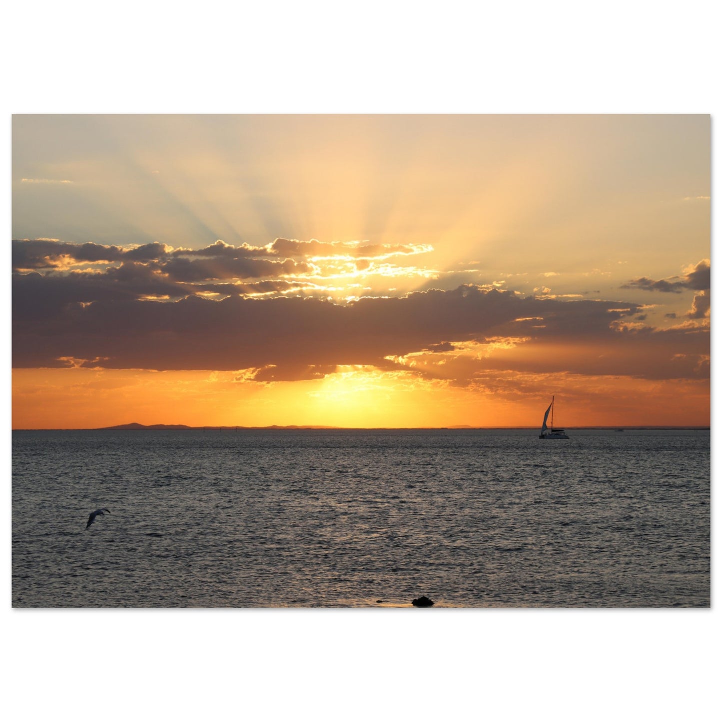 Boat sailing into the sunset - Premium Matte Paper Poster