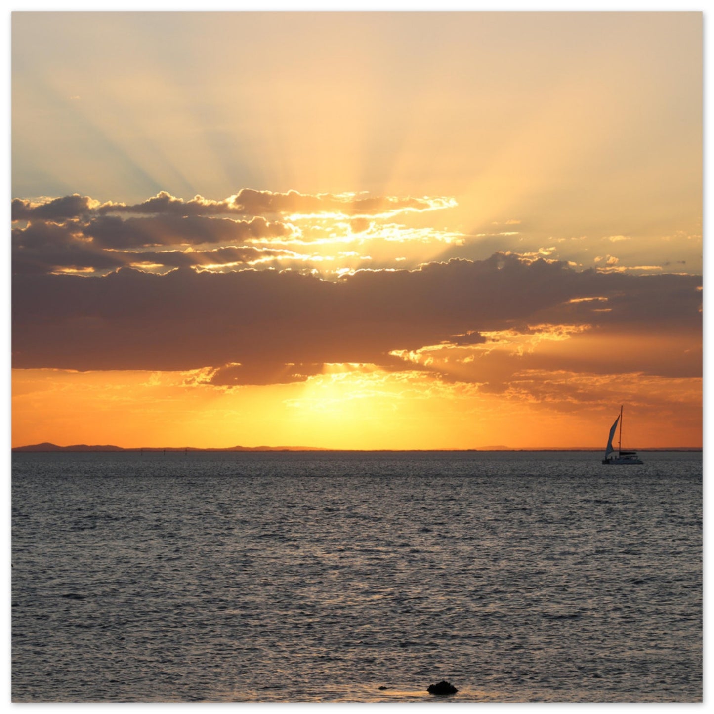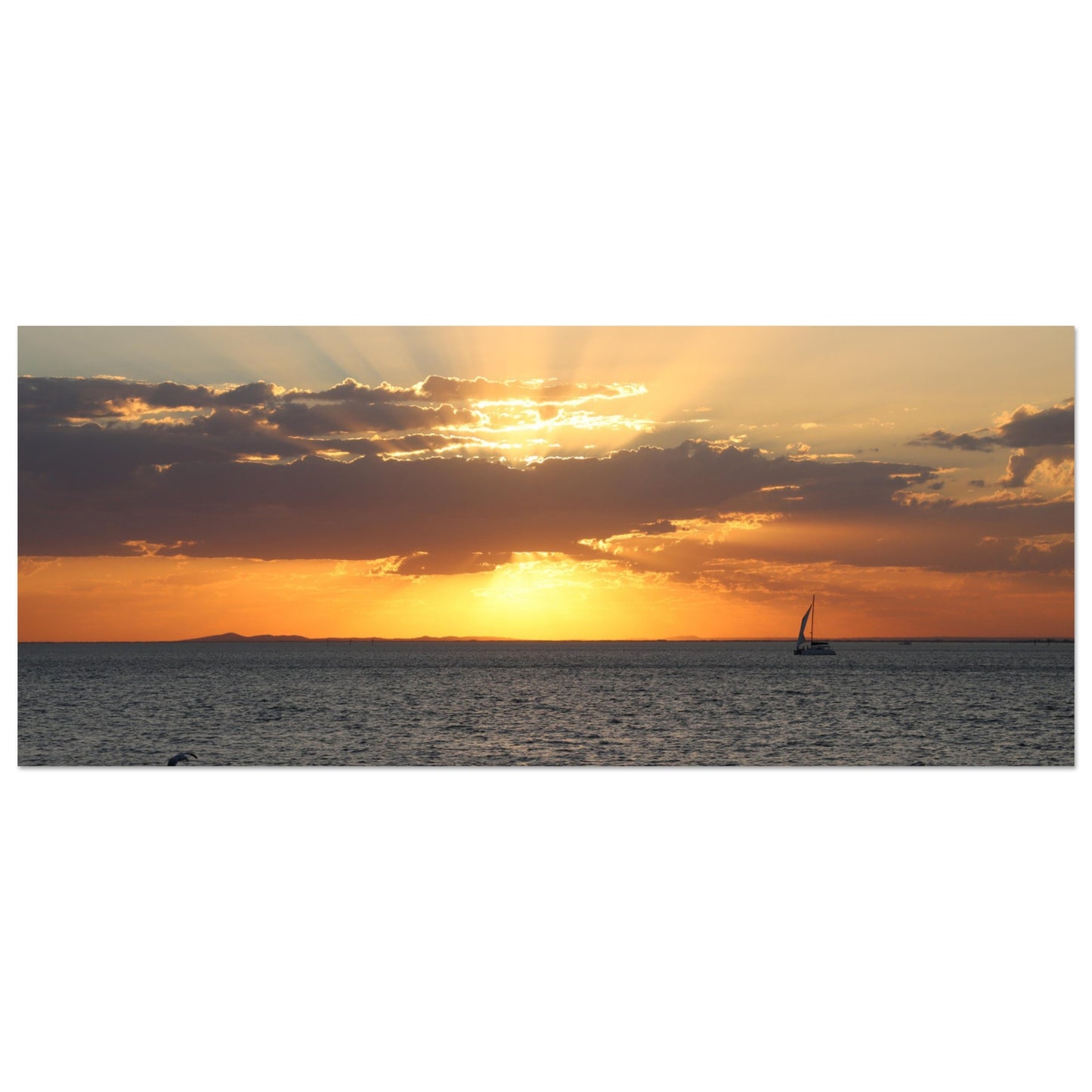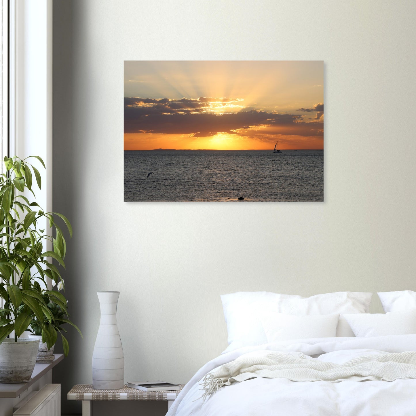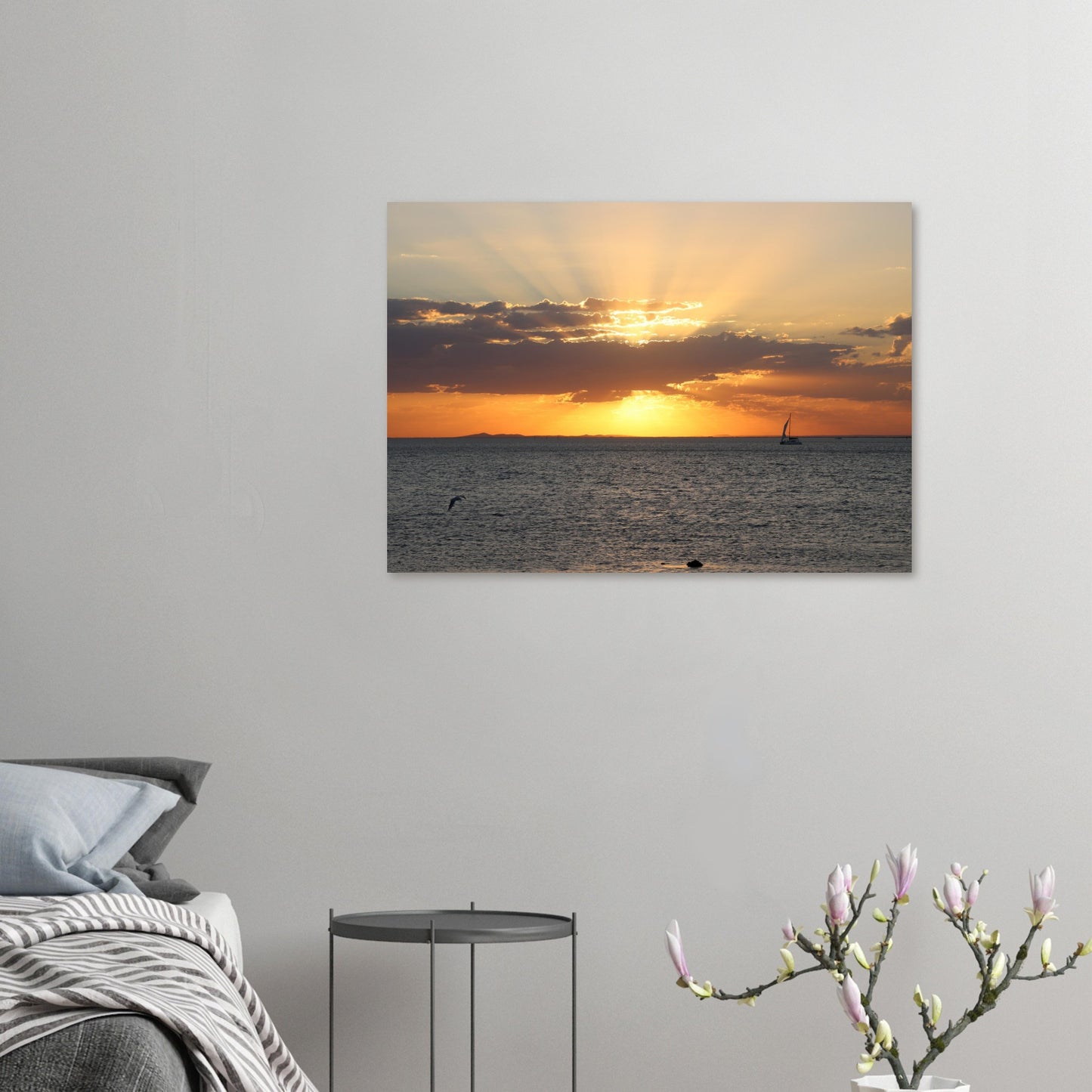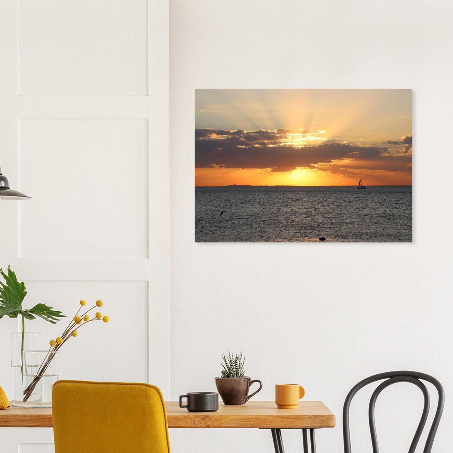 Boat sailing into the sunset - Premium Matte Paper Poster