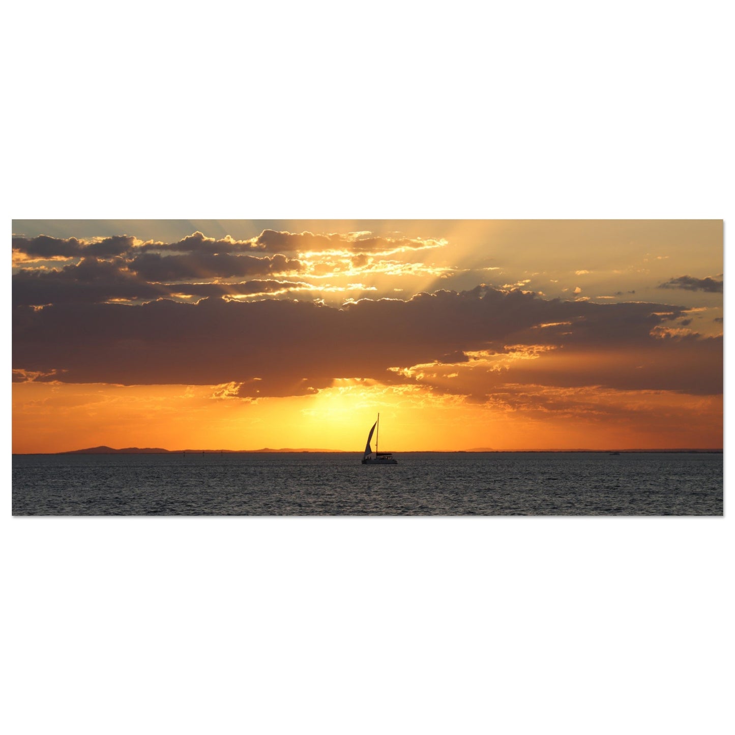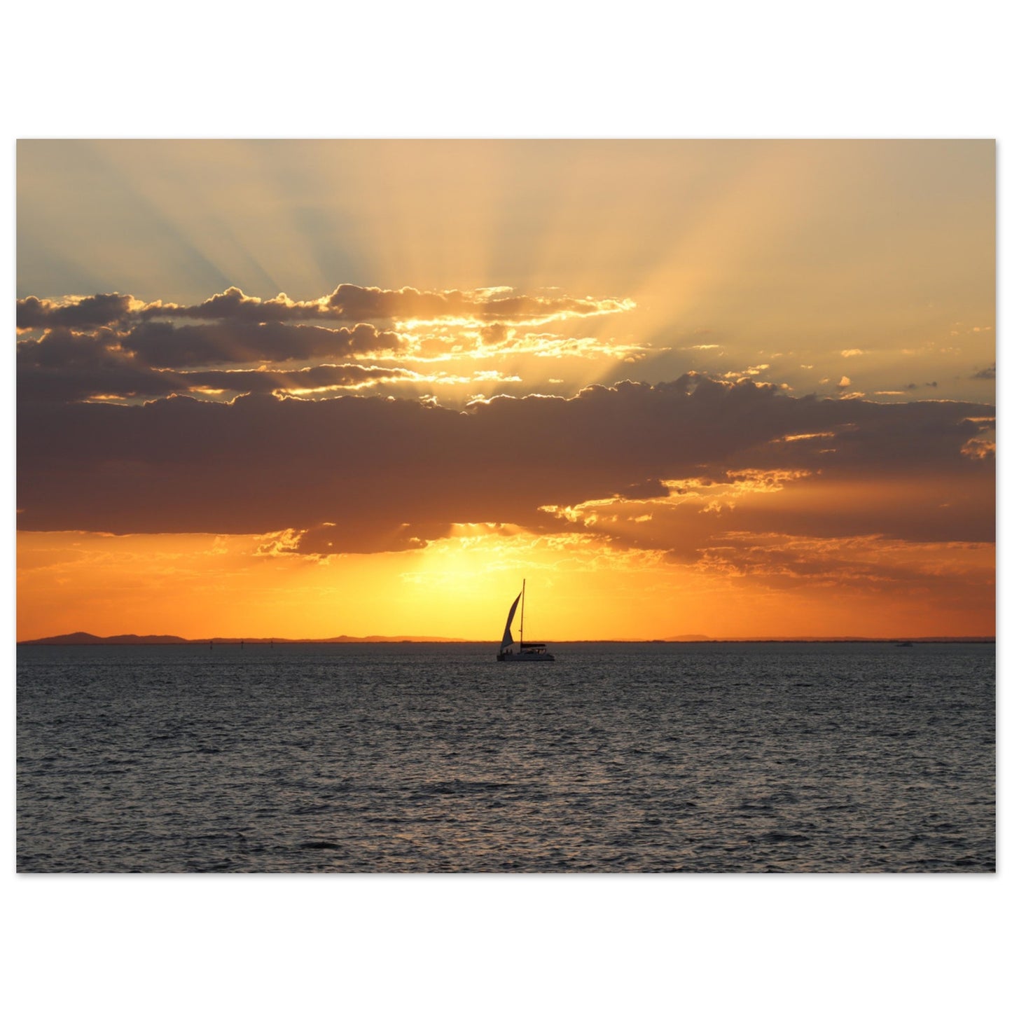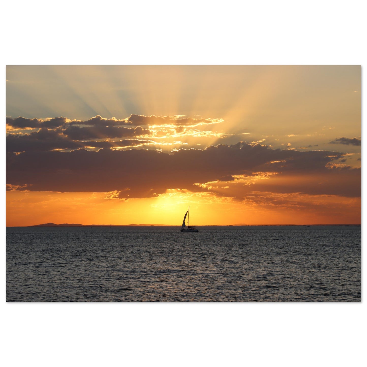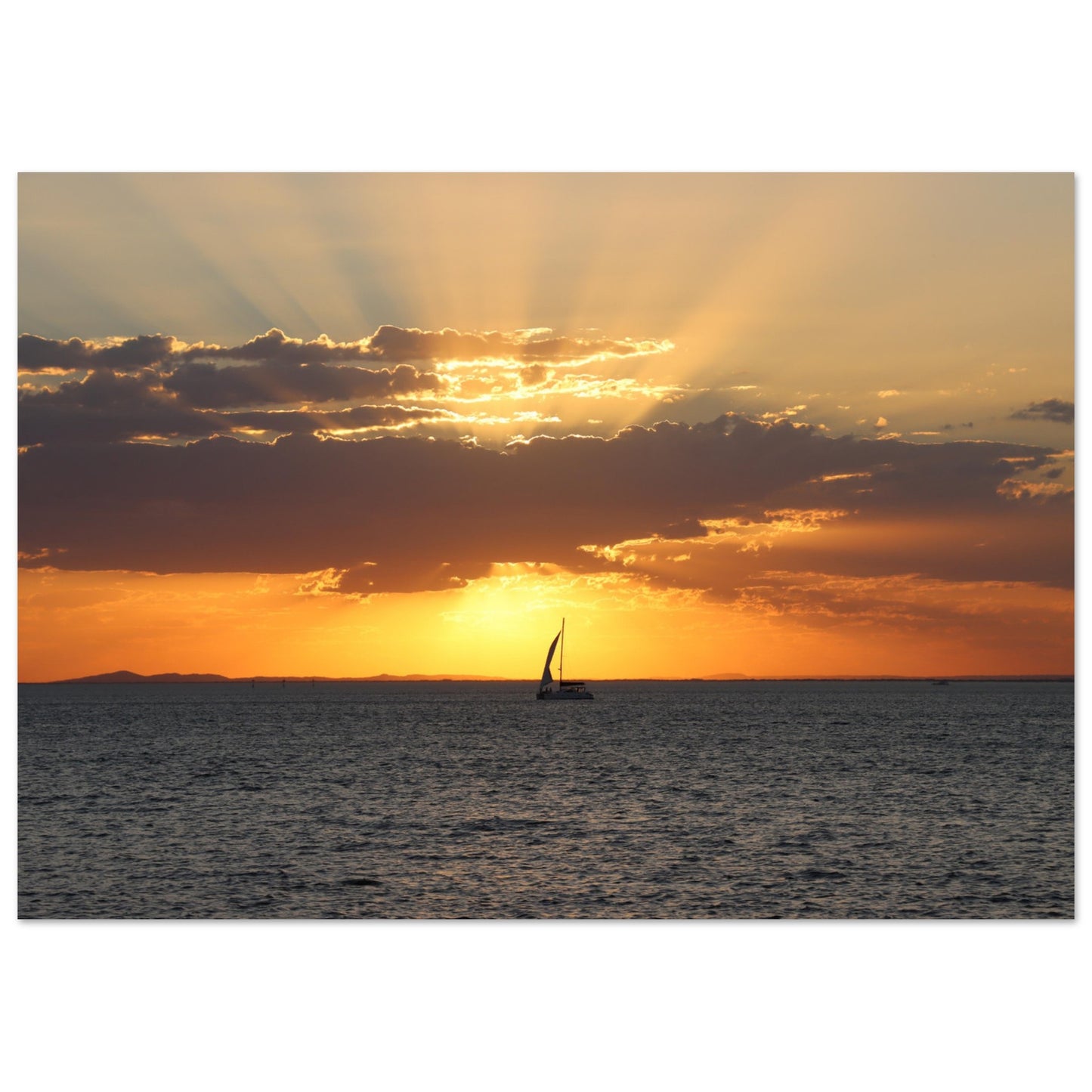 Boat sailing into the sunset - Premium Matte Paper Poster