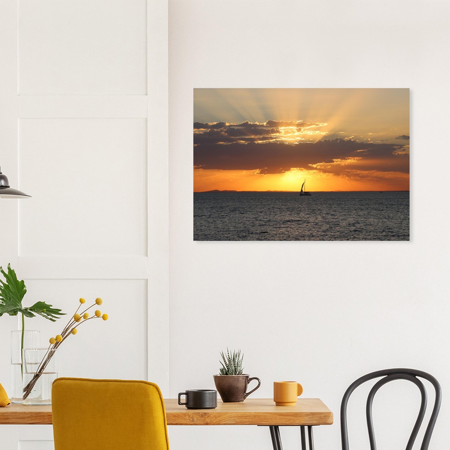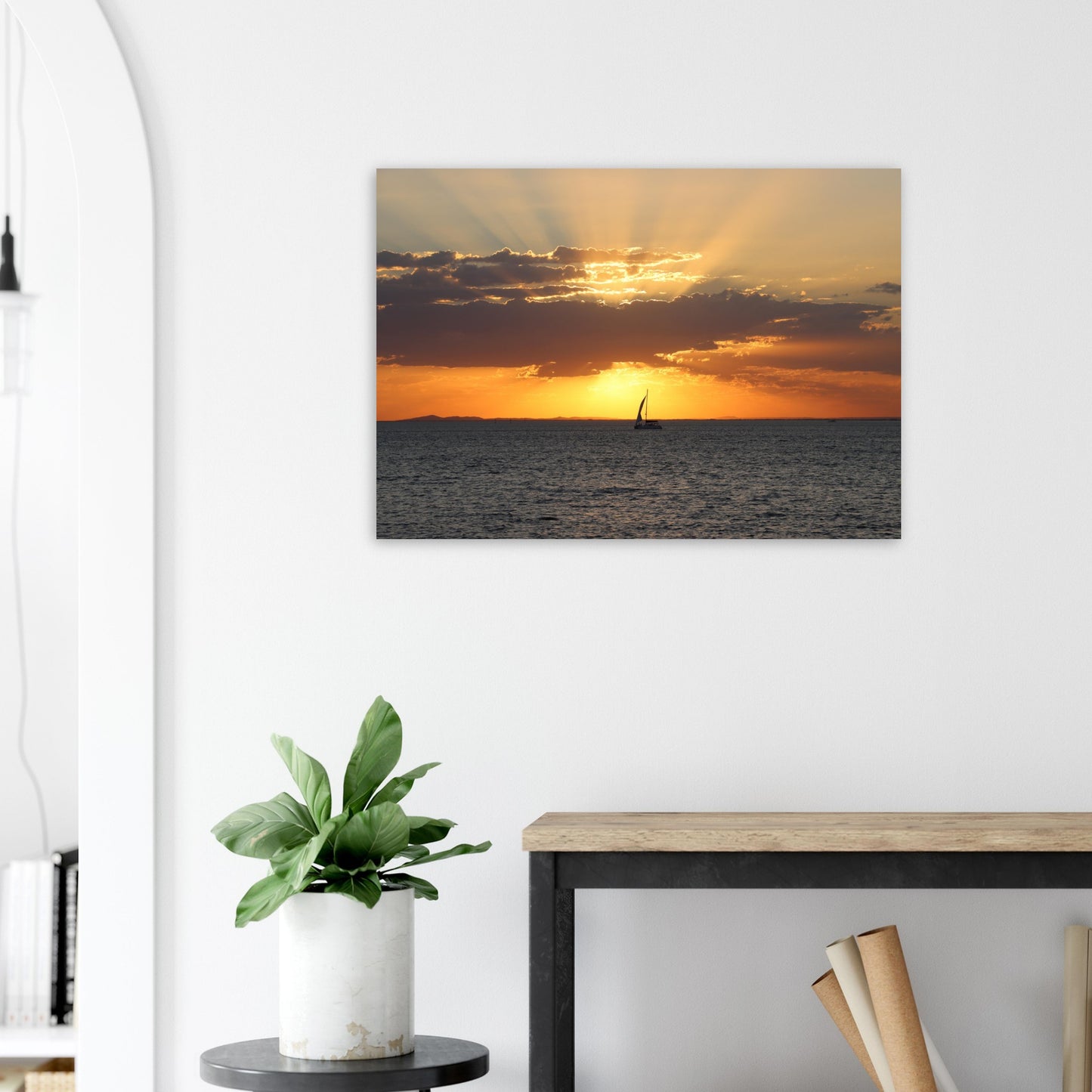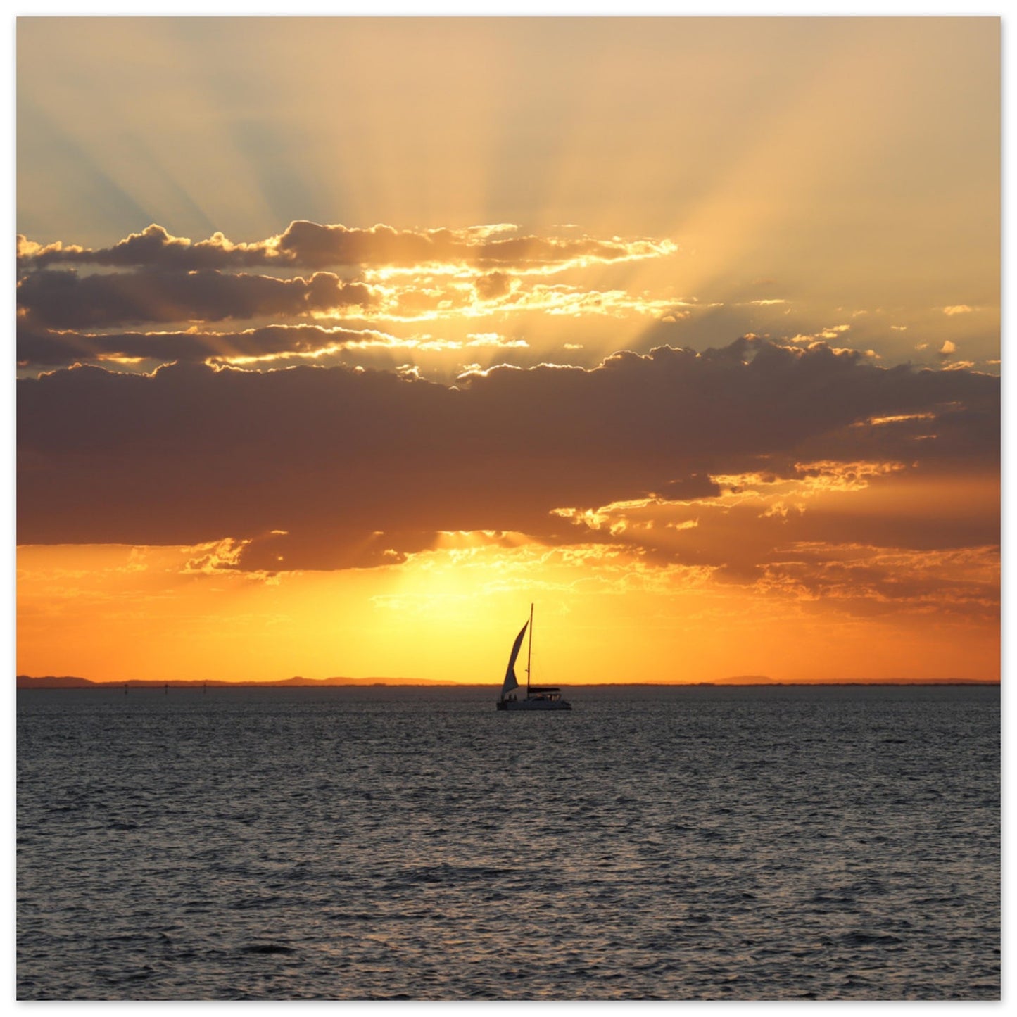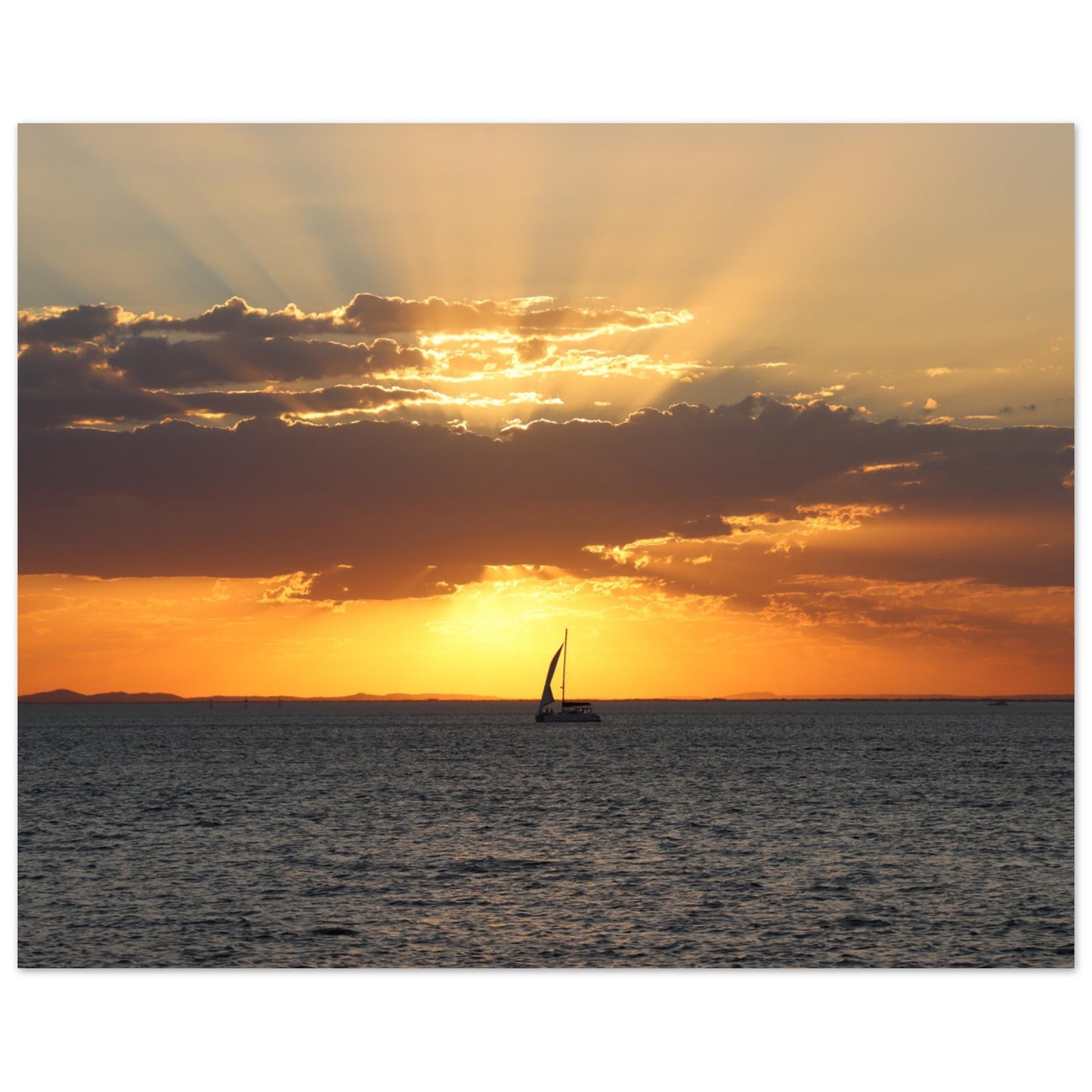 Boat sailing into the sunset - Premium Matte Paper Poster