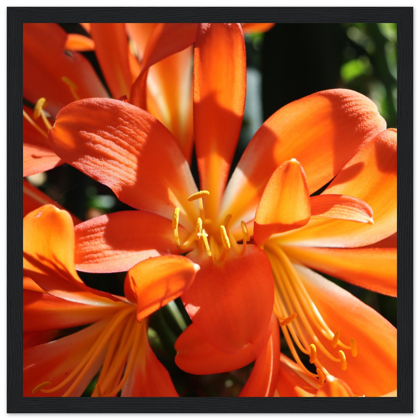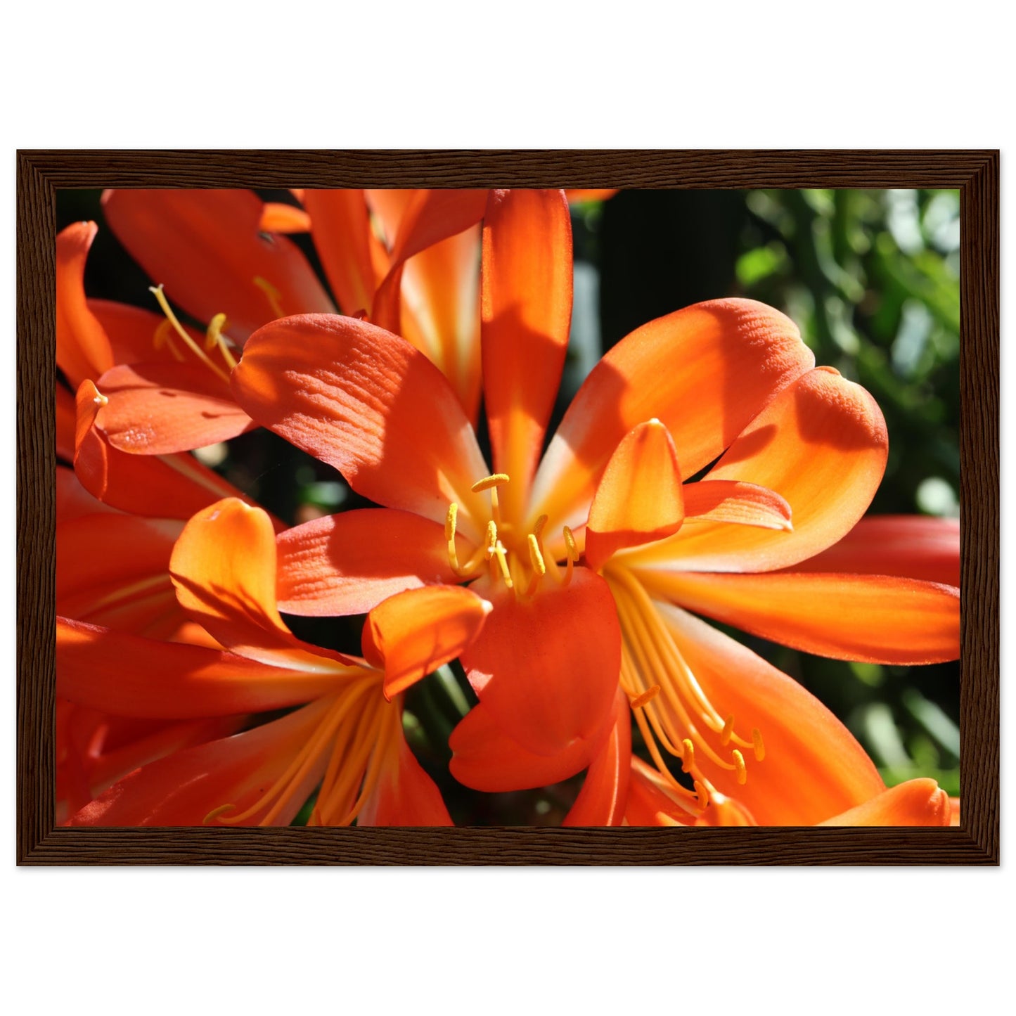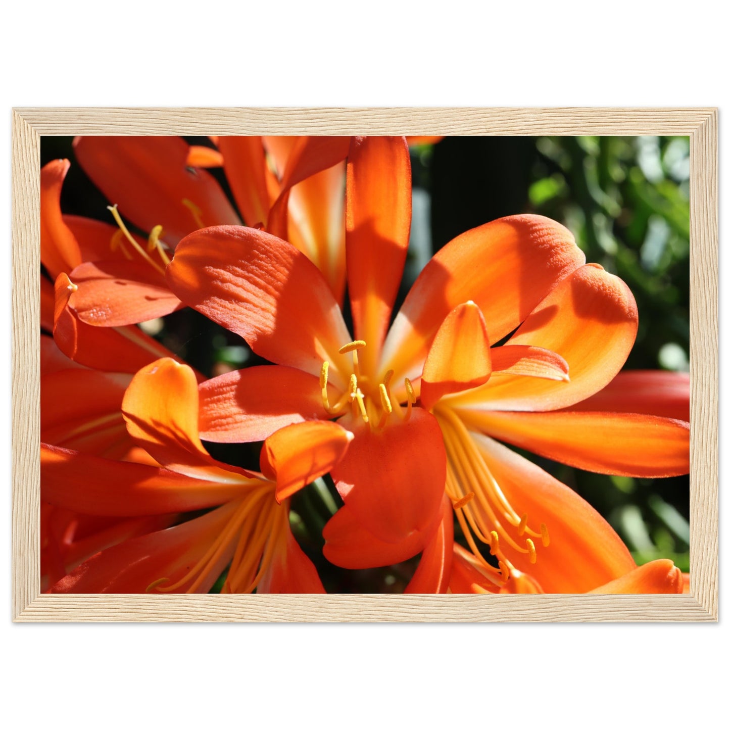 Clivias in the sun - Premium matte paper poster with wooden frame