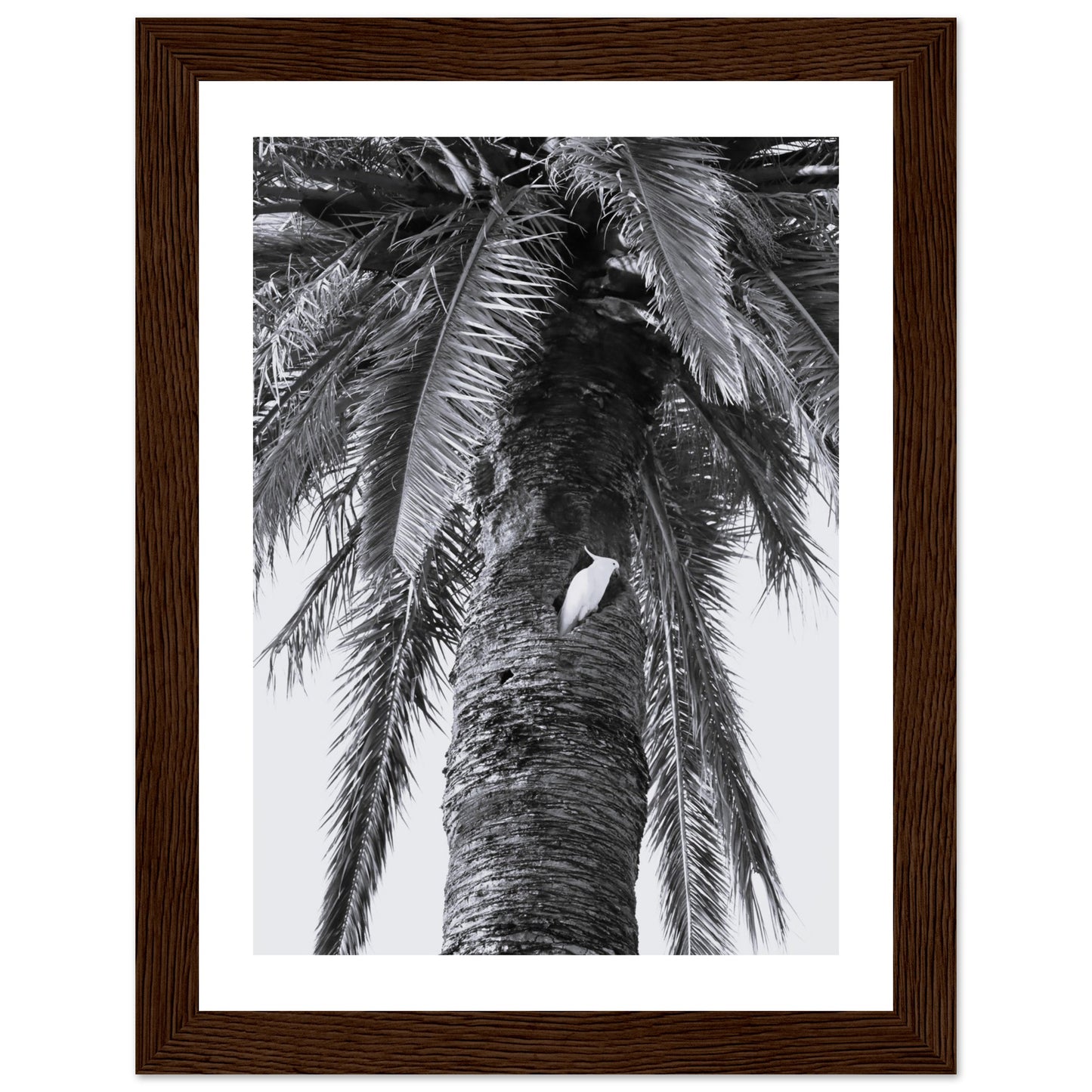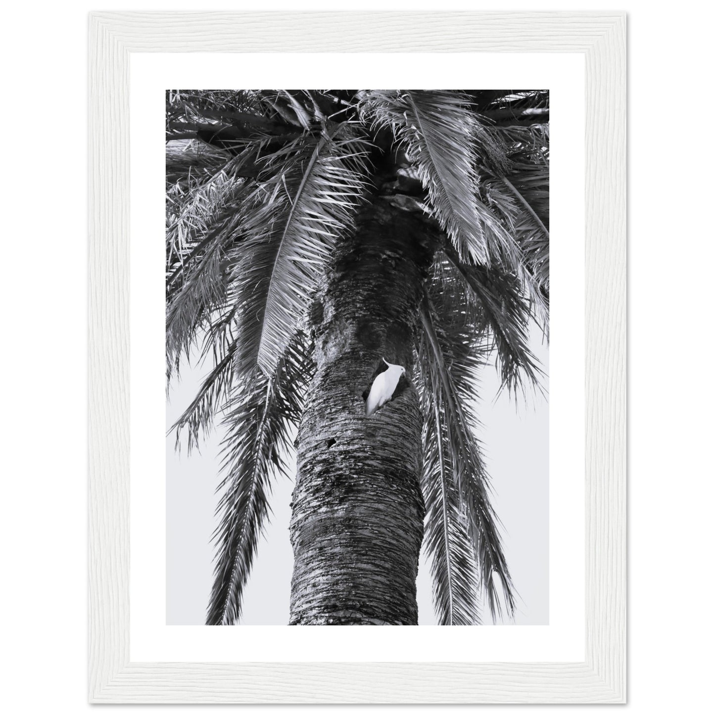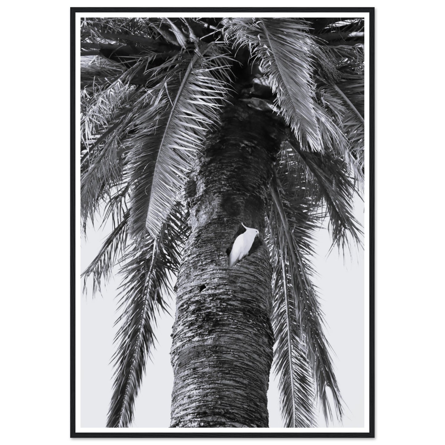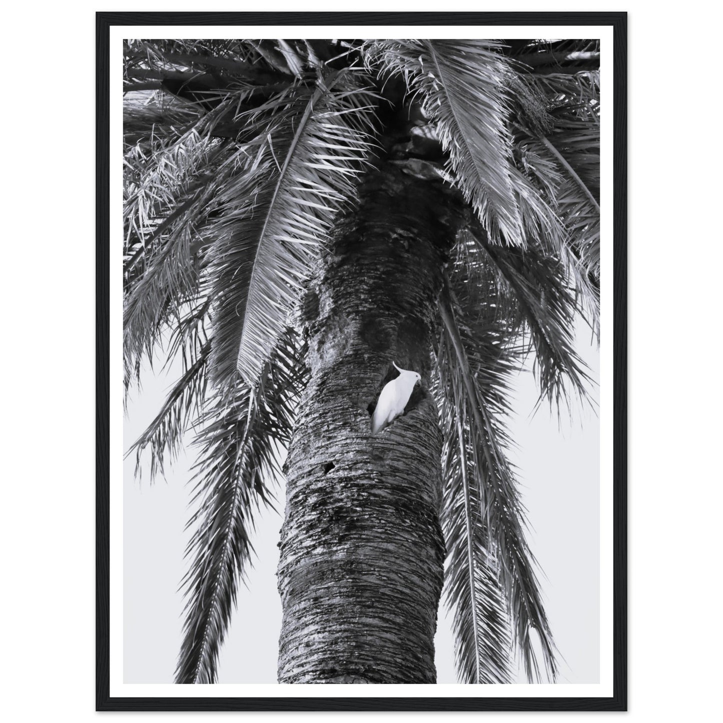 Cockatoo in palm tree - Black & White - Premium Matte Paper Wooden Framed Poster